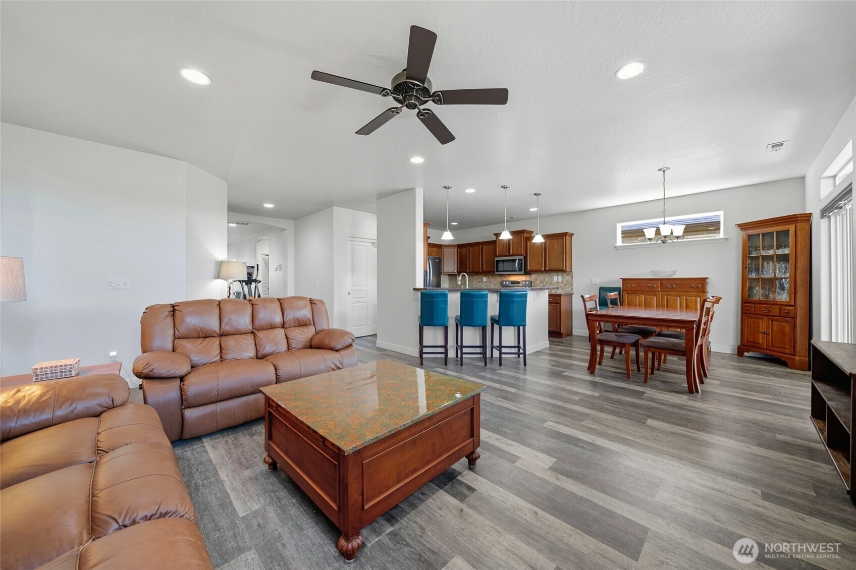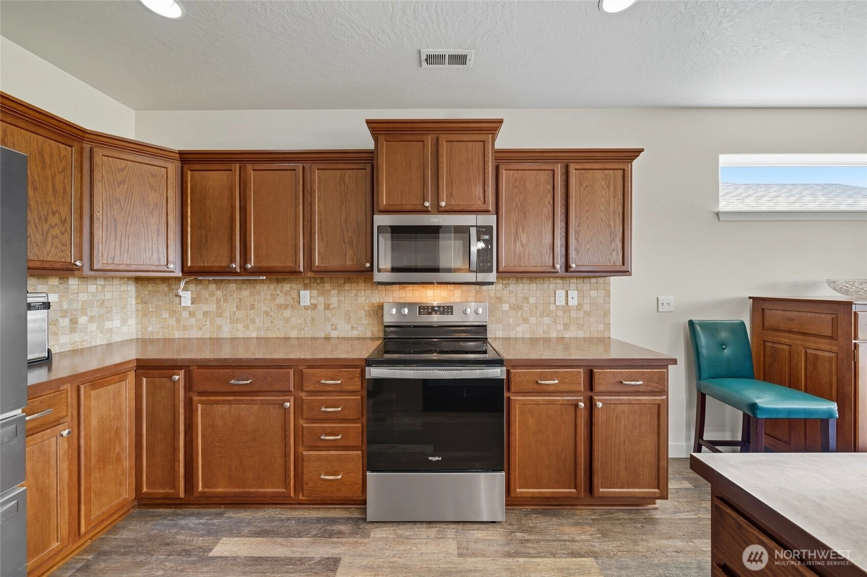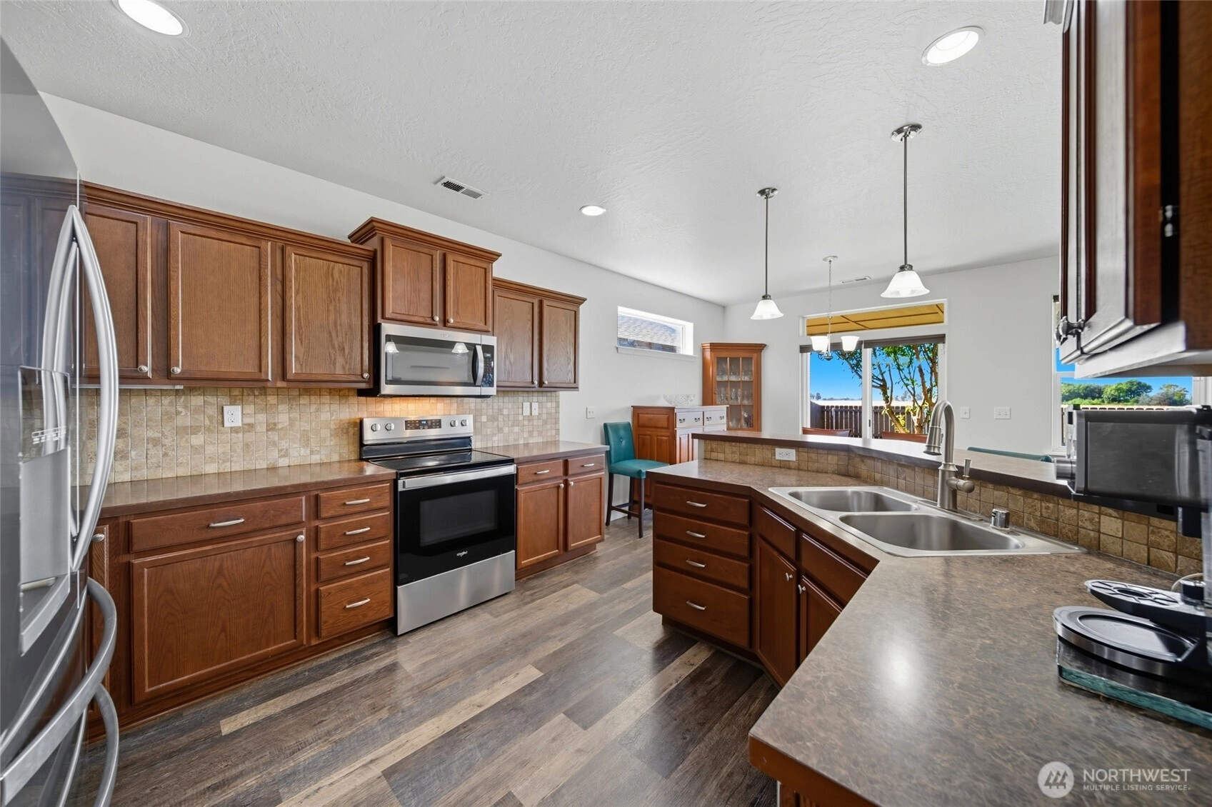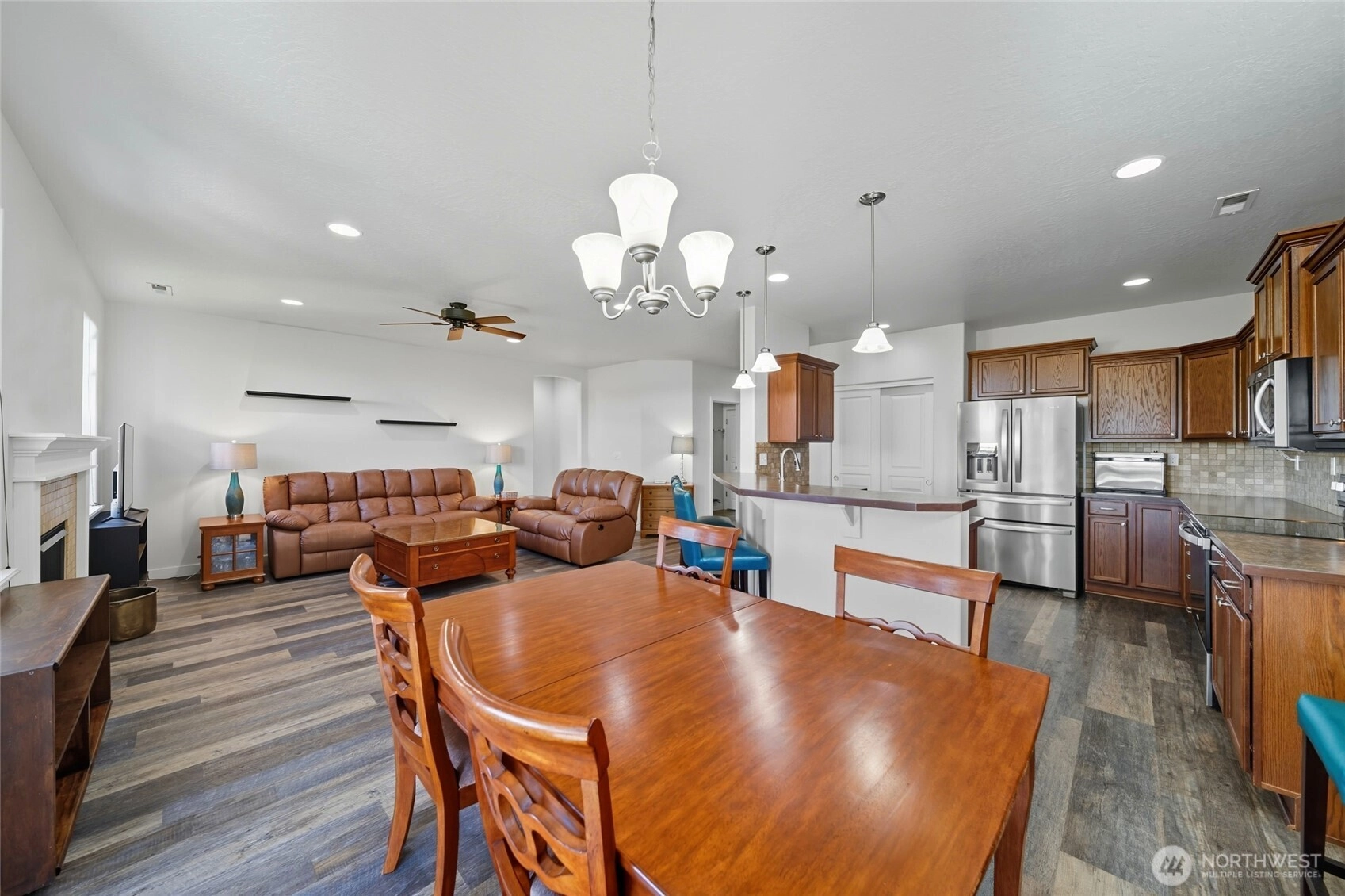A perfect place to call home! Well-maintained, charmer in popular Homestead community, this 3bed, 2bath one-level home is turn-key ready. Featuring open concept dining and living room with cozy fireplace. Kitchen has newer appliances, convenient breakfast bar, rich wood cabinets with spacious pantry. Primary bedroom ensuite boasts double sink, walk in closet. Retreat outside to a fully fenced backyard with covered patio to enjoy morning coffee or take in those breathtaking WW sunsets. Backing up onto Martin Field, the backyard includes a garden spot and storage shed. Community has walking trails plus park area for outdoor fun. Call today for your private showing.
