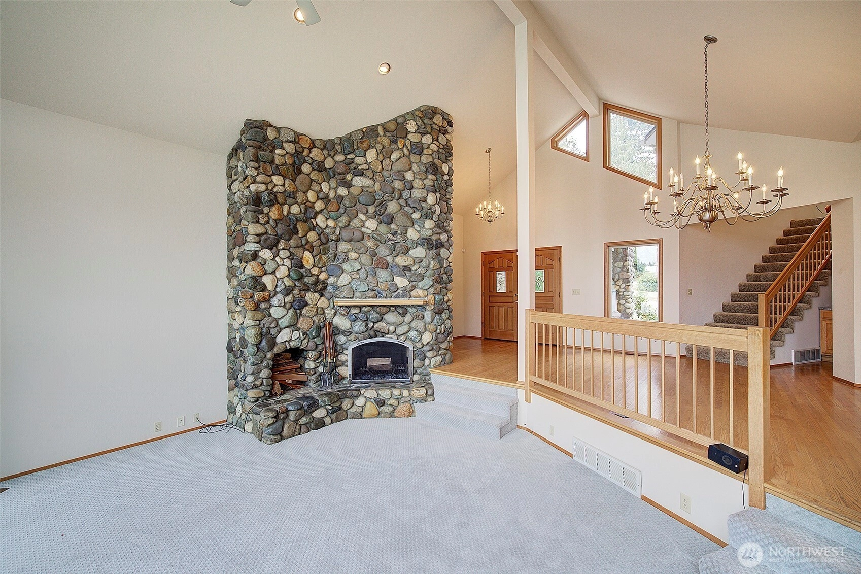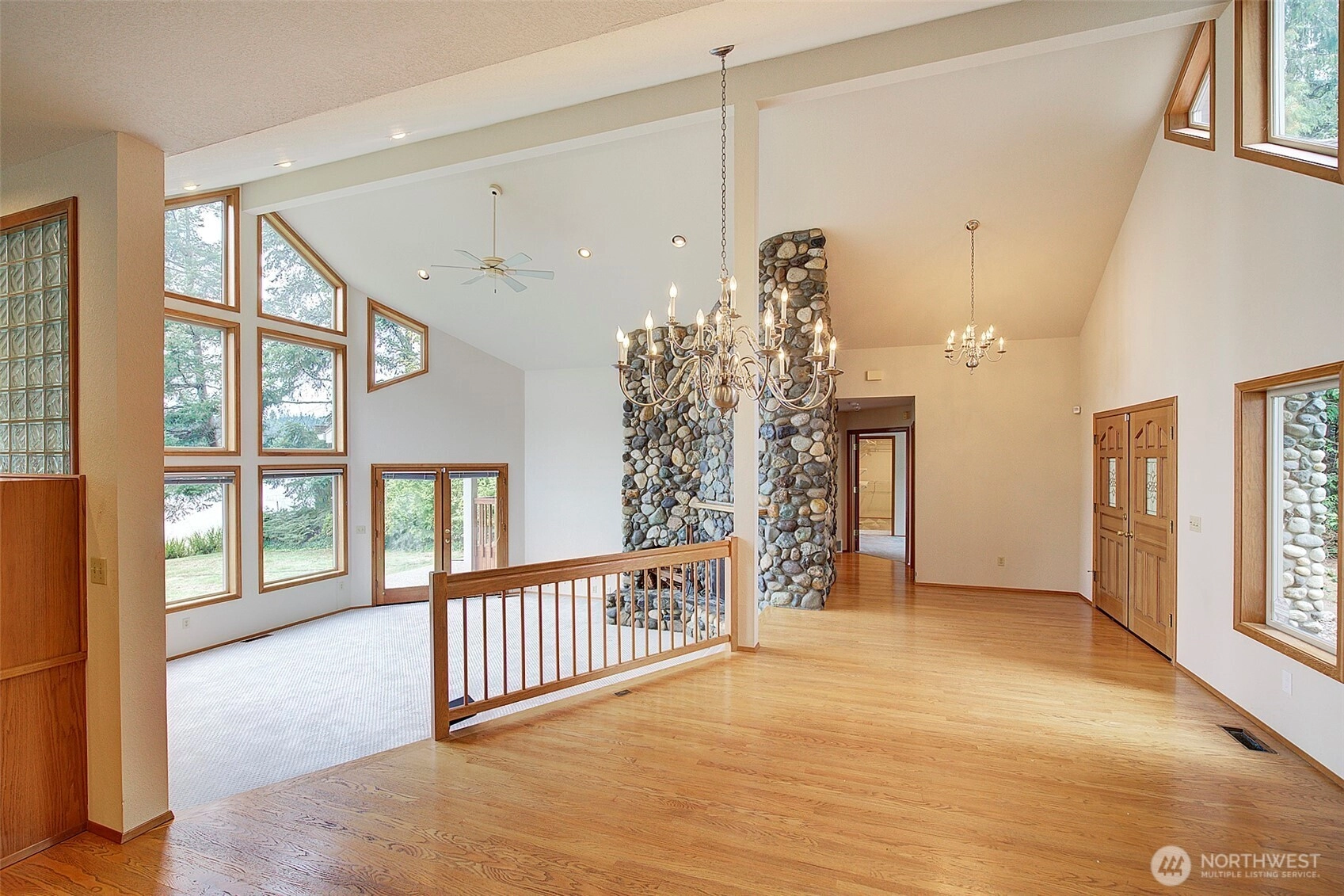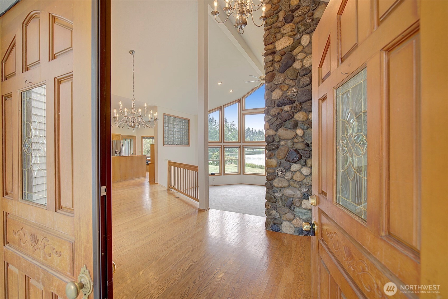Presenting a rare opportunity to own prime real estate on the private and highly desirable Lake Shoecraft. Enjoy a sprawling 1.2-acre retreat with ~126’ of low-bank waterfront, providing direct access to an array of fresh-water fun; boating, water skiing, tubing, kayaking, swimming, fishing, and jet skiing—all from your own dock. This thoughtfully designed home features an open-concept oriented southwest for breathtaking sunset views. The spacious main living area includes a vaulted ceiling and a river rock wood-burning fireplace for a warm, inviting atmosphere. The split floor plan provides a private primary suite, ensuring comfort and privacy. 2-car garage + a separate, custom RV garage deliver storage for recreational gear and vehicles.