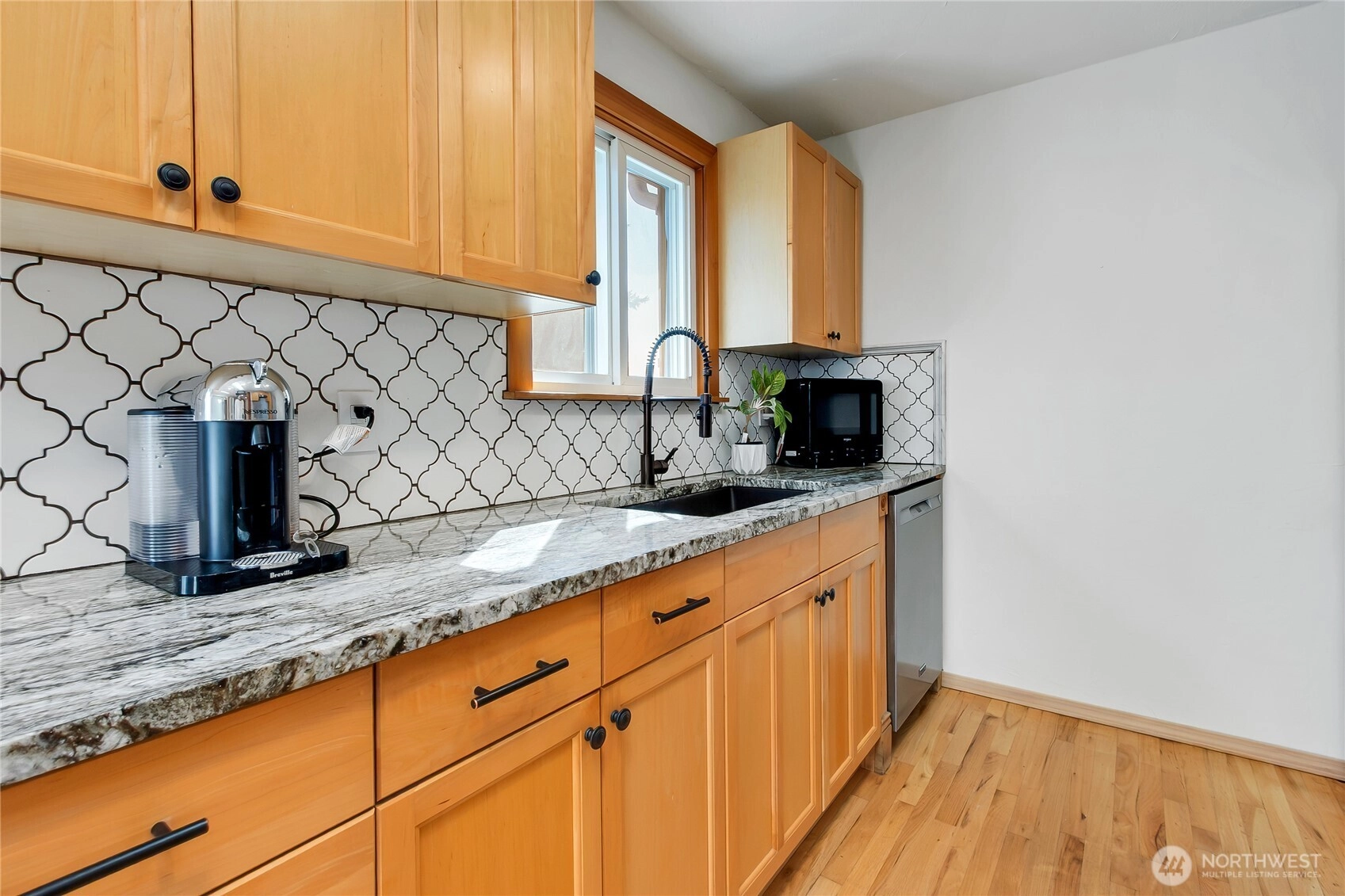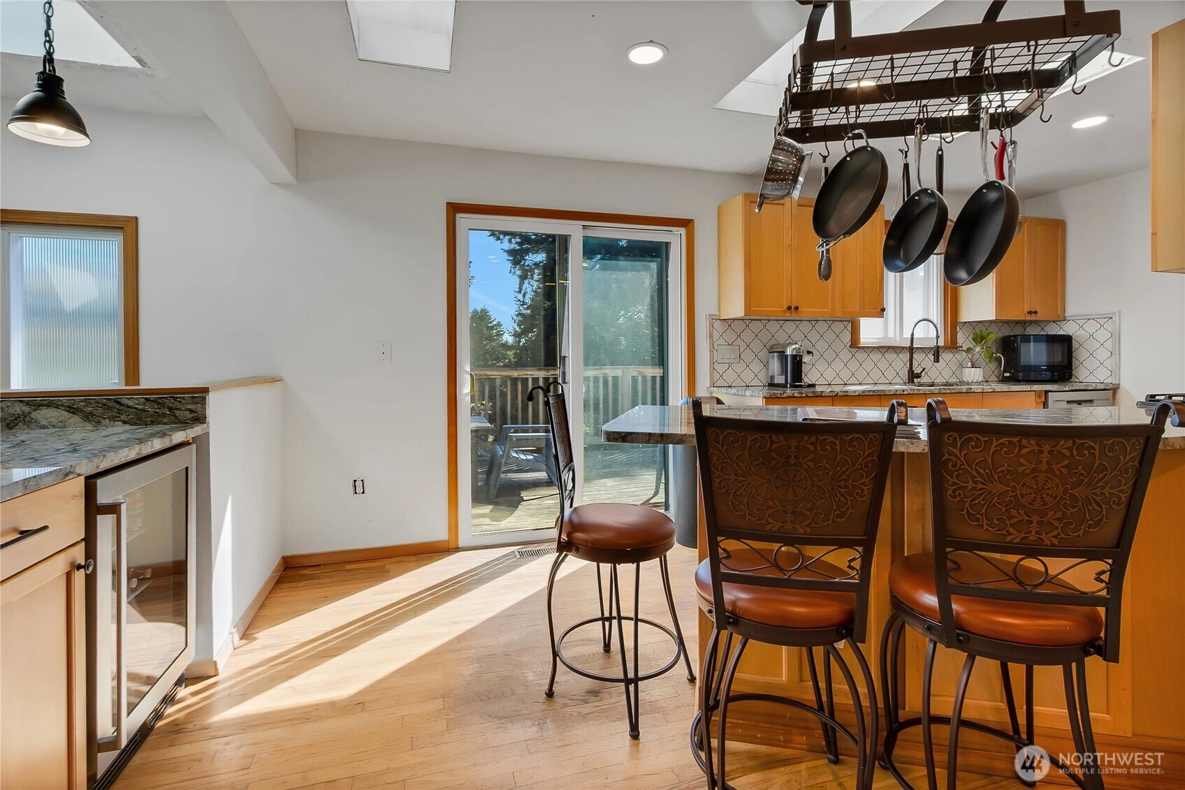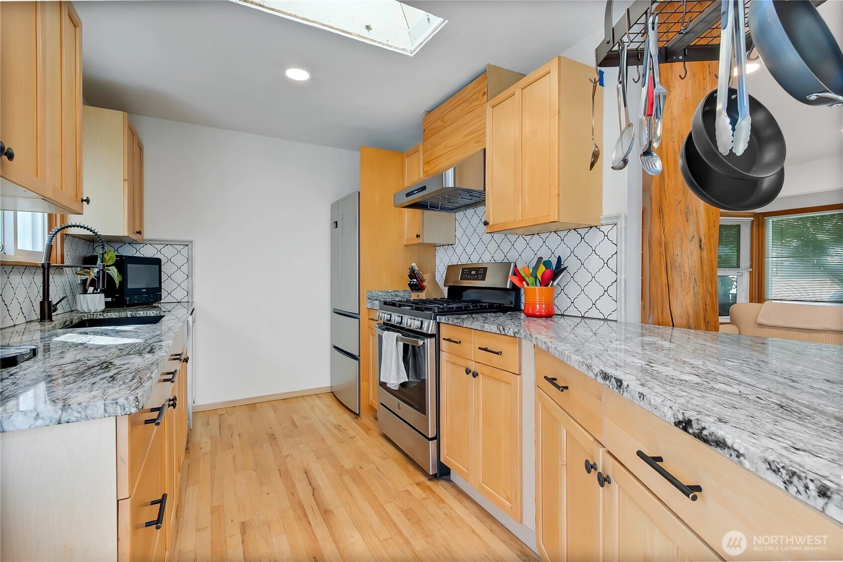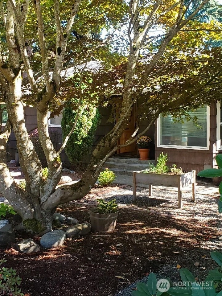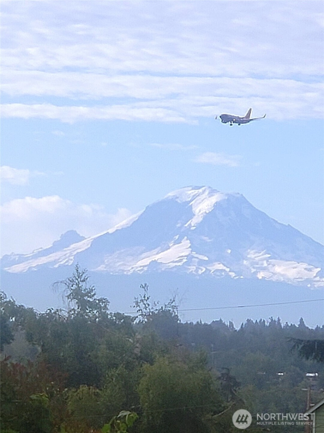 Live the good life in this North Hill gem with stunning Mt. Rainier views from your wrap-around deck! Perfect for entertaining with gazebo, firepit, and easy-care landscaping. Inside, charm meets comfort—hardwood floors, pine pillars, gas fireplace, and custom built-ins. Gourmet kitchen with granite counters, gas convection range, pot rack, and wine fridge. Two main-level bedrooms, a serene primary bath upgraded with granite. Downstairs offers space to grow: family room, guest bedroom, ¾ bath, and workshop. Ample parking for 6, front and alley access. Ideal blend of warmth, views, and lifestyle flexibility. Ready for value-adding improvements! $5,000 Seller credit for carpet downstairs.