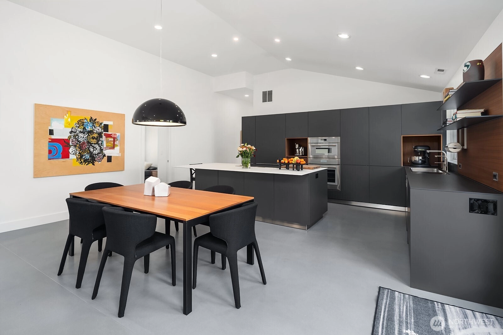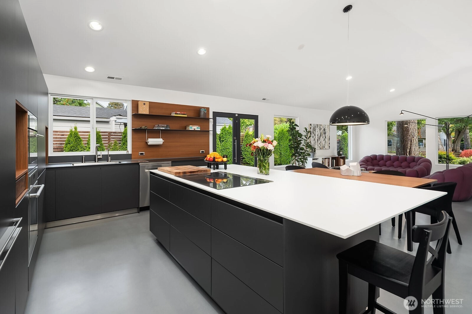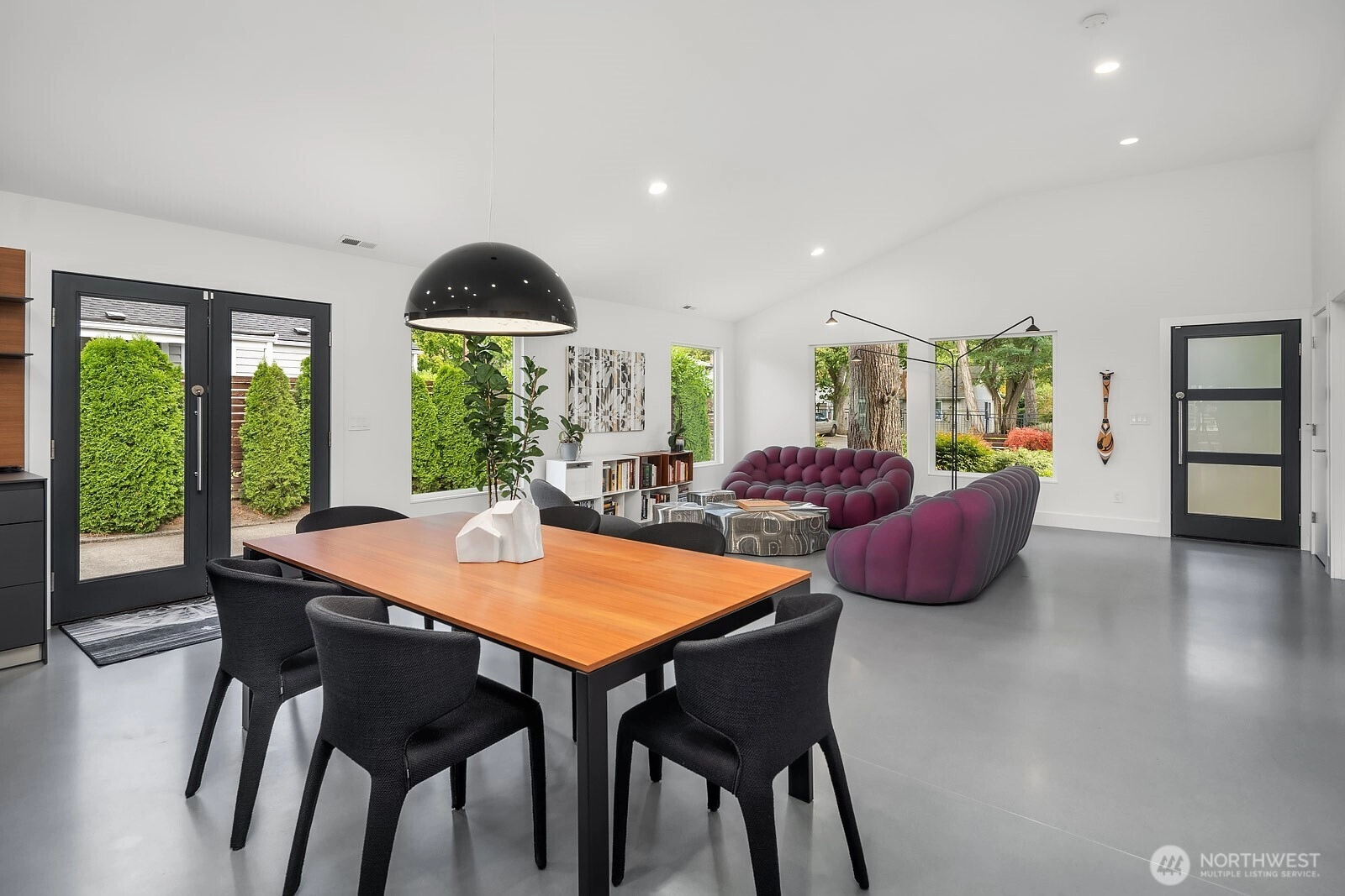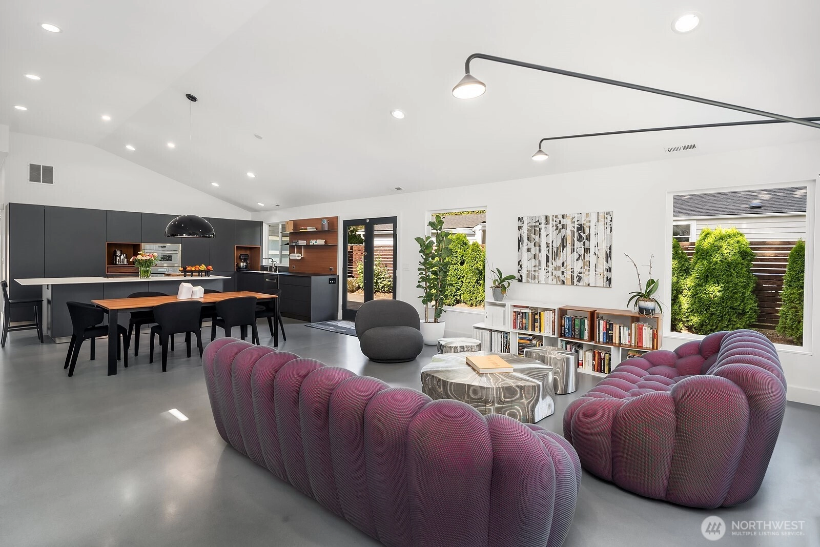Refined single-level living in Victory Heights, one of Seattle’s most peaceful and established neighborhoods. This thoughtfully designed home blends timeless style with high-end finishes, featuring a fully customized Bulthaup kitchen with porcelain slab countertops and premium appliances. Italian-inspired epoxy cement floors, vaulted ceilings, and abundant natural light create a striking open-concept interior. The luxurious primary suite offers dual walk-in closets, bespoke designer carpet, and a spa-style bath. Outside, enjoy a 3-car garage, infrared sauna, Shou Sugi Ban accent siding, custom landscaping, and a private terrace—perfect for elevated indoor-outdoor living. A rare opportunity for buyers seeking luxury, location, and lifestyle.