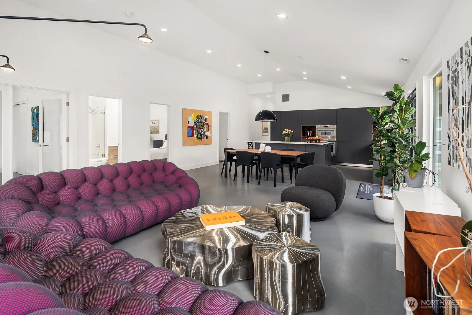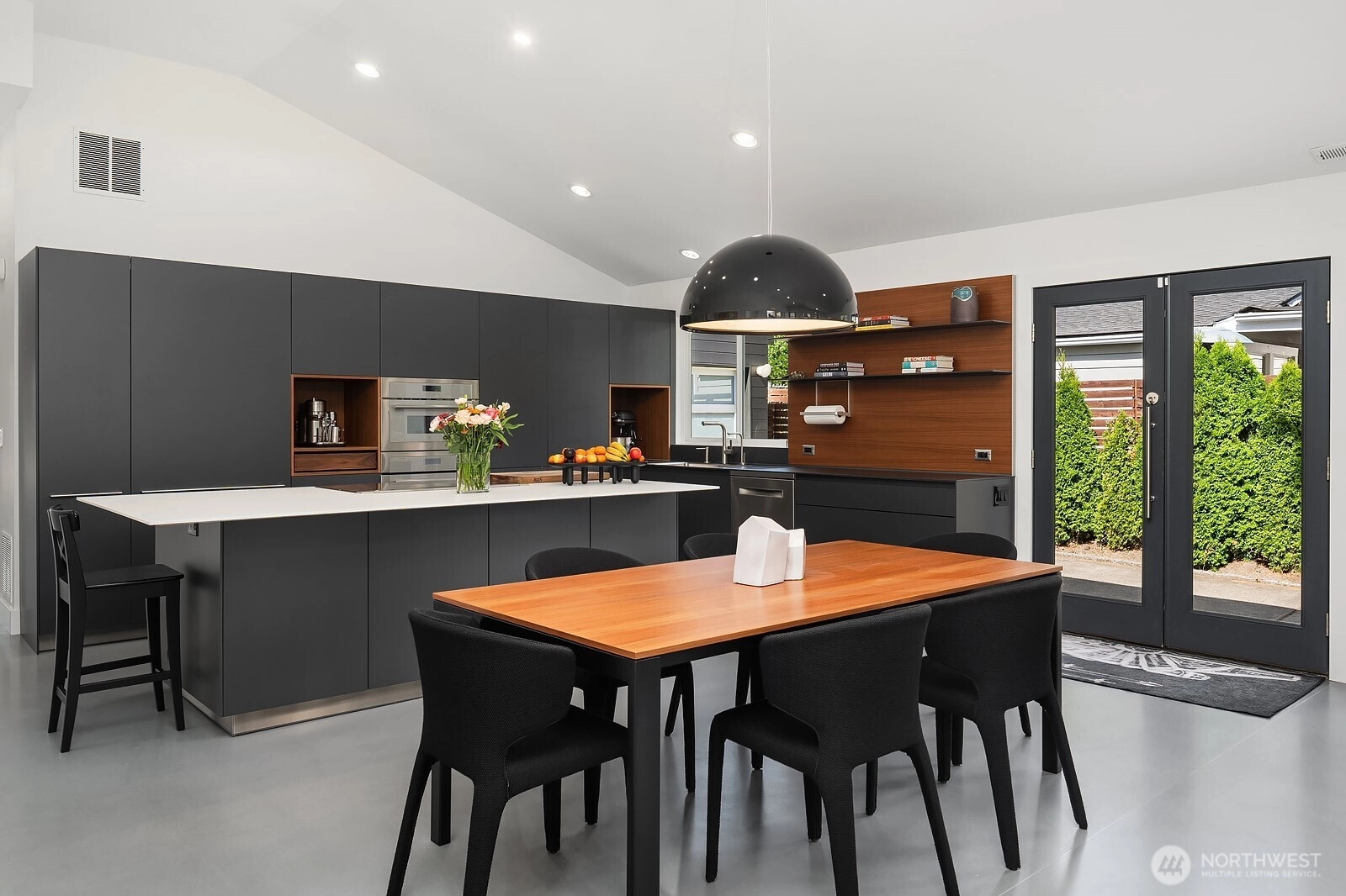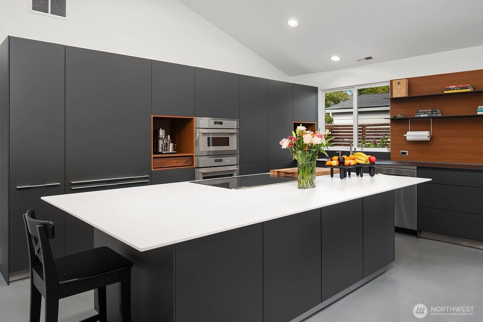 Refined single-level living in Victory Heights, one of Seattle’s most peaceful and established neighborhoods. This thoughtfully designed home blends timeless style with high-end finishes, featuring a fully customized Bulthaup kitchen with porcelain slab countertops and premium appliances. Italian-inspired epoxy cement floors, vaulted ceilings, and abundant natural light create a striking open-concept interior. The luxurious primary suite offers dual walk-in closets, bespoke designer carpet, and a spa-style bath. Outside, enjoy a 3-car garage, infrared sauna, Shou Sugi Ban accent siding, custom landscaping, and a private terrace—perfect for elevated indoor-outdoor living. A rare opportunity for buyers seeking luxury, location, and lifestyle.
