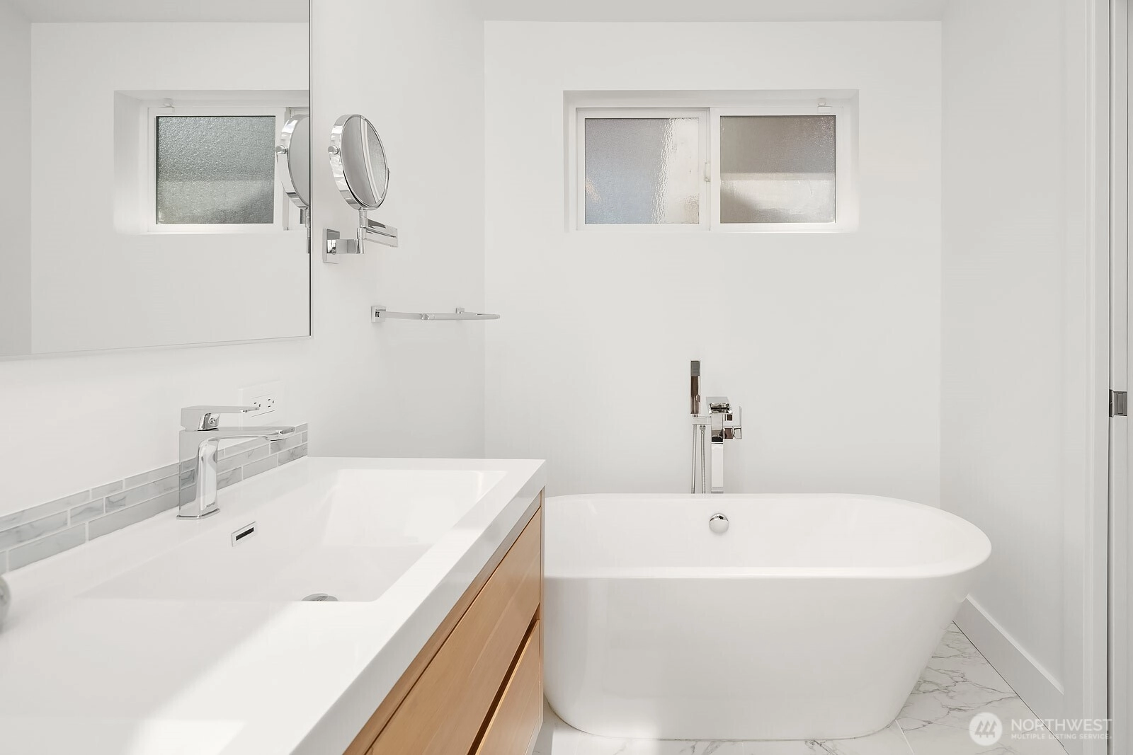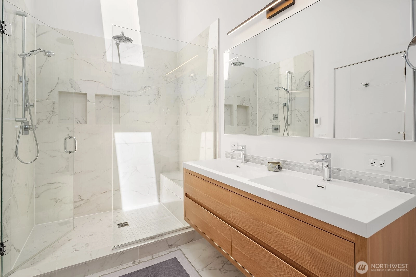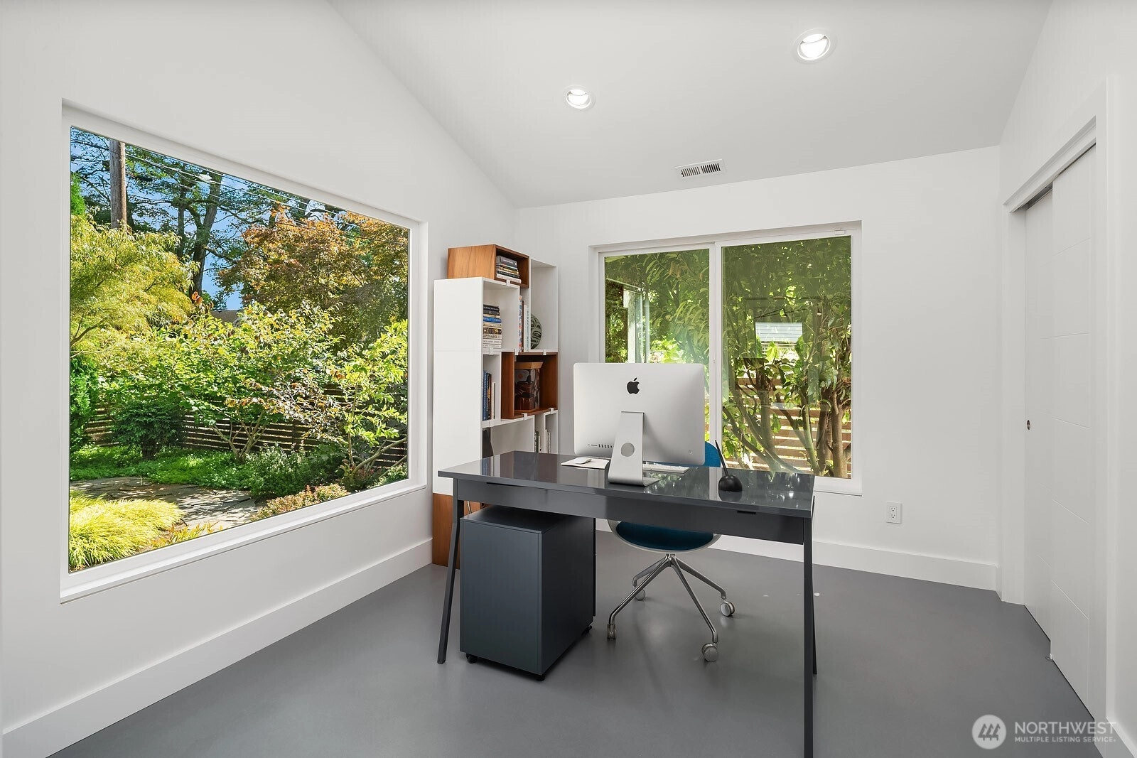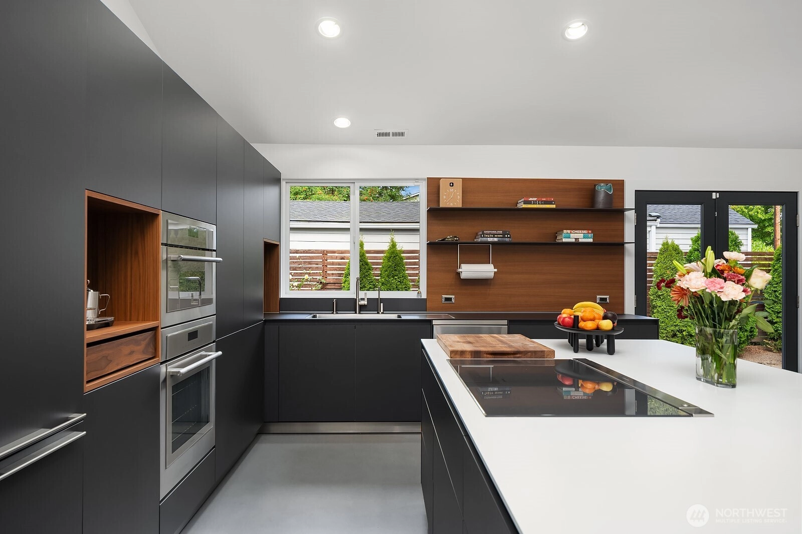 Refined single-level living in Victory Heights, one of Seattle’s most peaceful and established neighborhoods. This thoughtfully designed home blends timeless style with high-end finishes, featuring a fully customized Bulthaup kitchen with porcelain slab countertops and premium appliances. Italian-inspired epoxy cement floors, vaulted ceilings, and abundant natural light create a striking open-concept interior. The luxurious primary suite offers dual walk-in closets, bespoke designer carpet, and a spa-style bath. Outside, enjoy a 3-car garage, infrared sauna, Shou Sugi Ban accent siding, custom landscaping, and a private terrace—perfect for elevated indoor-outdoor living. A rare opportunity for buyers seeking luxury, location, and lifestyle.