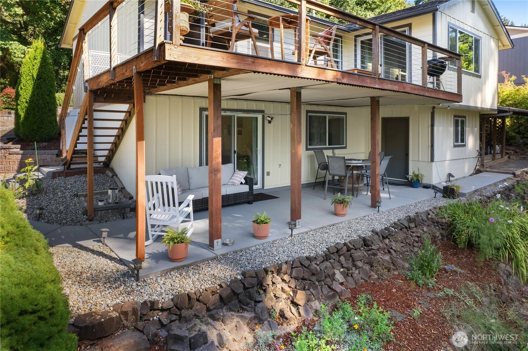 3 BEDROOMS! (2 bd septic) 2.5-bath. Nestled in a serene setting against a peaceful green belt, this home offers the perfect balance of privacy and convenience. Inside, nearly every surface feels refreshing with LVP flooring, plush carpet, and modern appliances that make this home feel brand new. The chef-inspired kitchen features soft-close cabinetry and plenty of counter space, all opening into a bright and airy dining and living area. The trex deck off of the dining area is the perfect spot to decompress or host parties! Downstairs also features a private patio and a Bar! Each bedroom comes equipped with their own bathrooms. Primary en-suite features a soaking tub and double vanity! Beautifully landscaped and wonderfully maintained home!