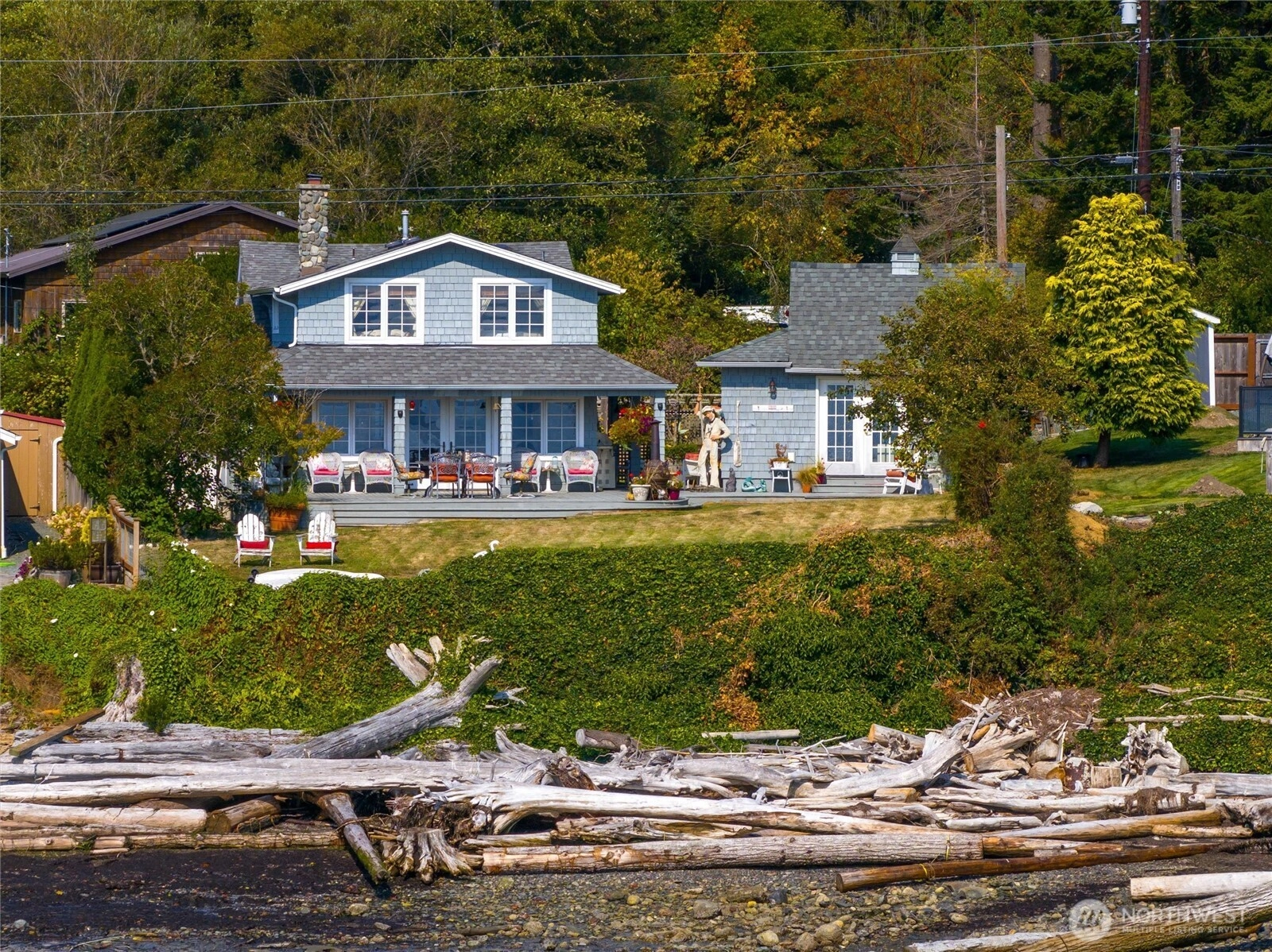 Timeless coastal charm on Similk Beach. This rare low-bank waterfront cottage captures the essence of a 1920 seaside bungalow, lovingly restored to honor its history while elevating it for modern living. Every detail reflects thoughtful craftsmanship—from custom-milled knotty pine walls to the Rumford fireplace, built of Frazier River Rock & adorned w/ shells & fossils gathered from the shore. Offered fully furnished, this home invites you to step into a relaxed coastal lifestyle from the moment you arrive. A separate studio cottage provides a serene retreat for guests or options for a vacation rental. RV/Boat parking + 2 sheds w/ power. Moor your boat on a nearby buoy & let your waterfront adventure begin right outside your doorstep!