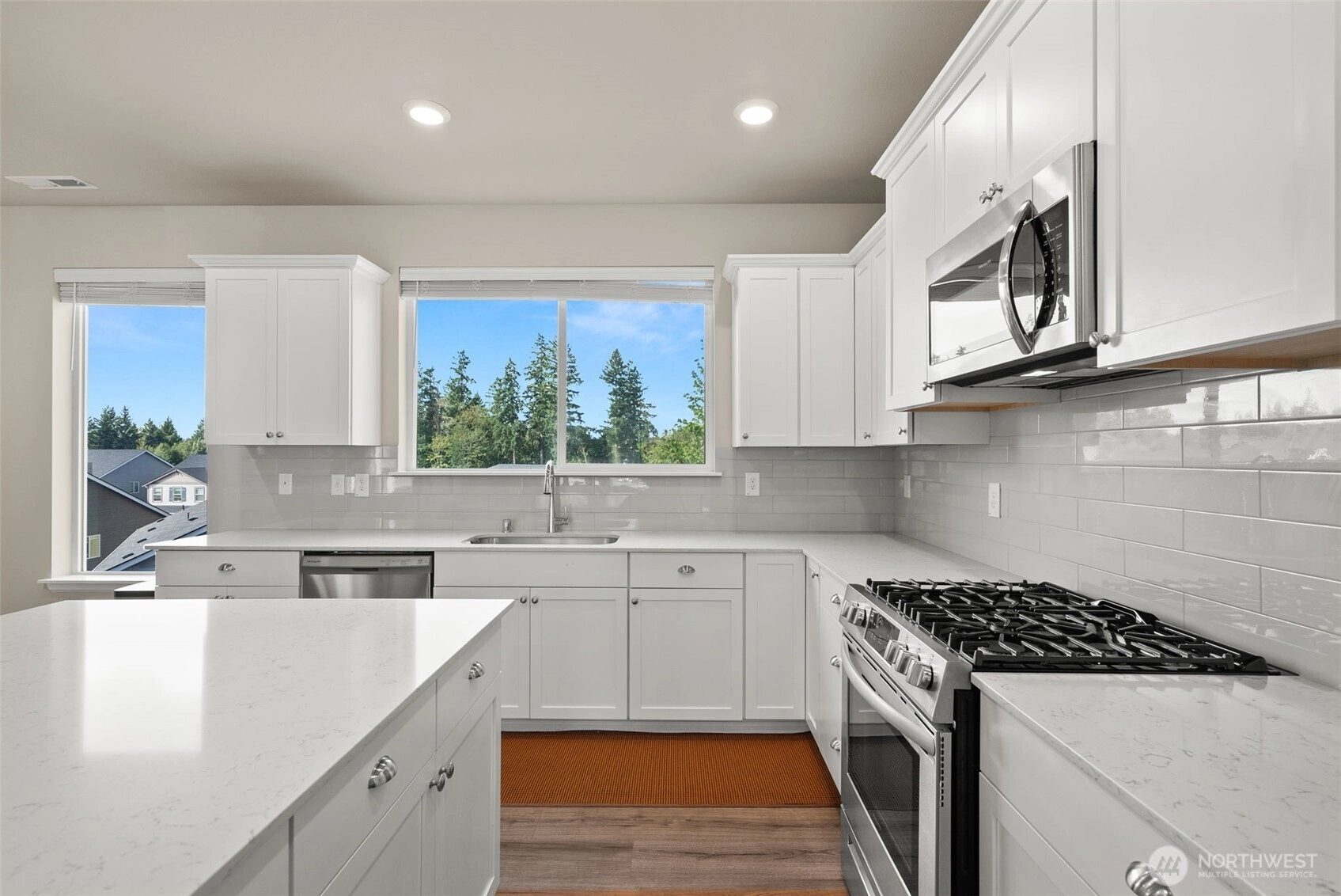 This Beautiful home is over 2200+ sq ft, located on a premium lot in a cul-de-sac, this multi-level home offers flexible living with a main floor-suite that can serve as a mother-in-law space, home office, gym, or extra living room, complete with a quarter bath, closet and patio access to the backyard. The second floor features an open-concept kitchen with large island, dining and living space plus half bathroom and deck. Upstairs on the third floor are three bedrooms including the primary suite with walk-in closet and private ensuite + an additional full bath. Conveniently located near many amenities with an easy commute to Bangor Naval Station and the Bremerton Ferry to Seattle.