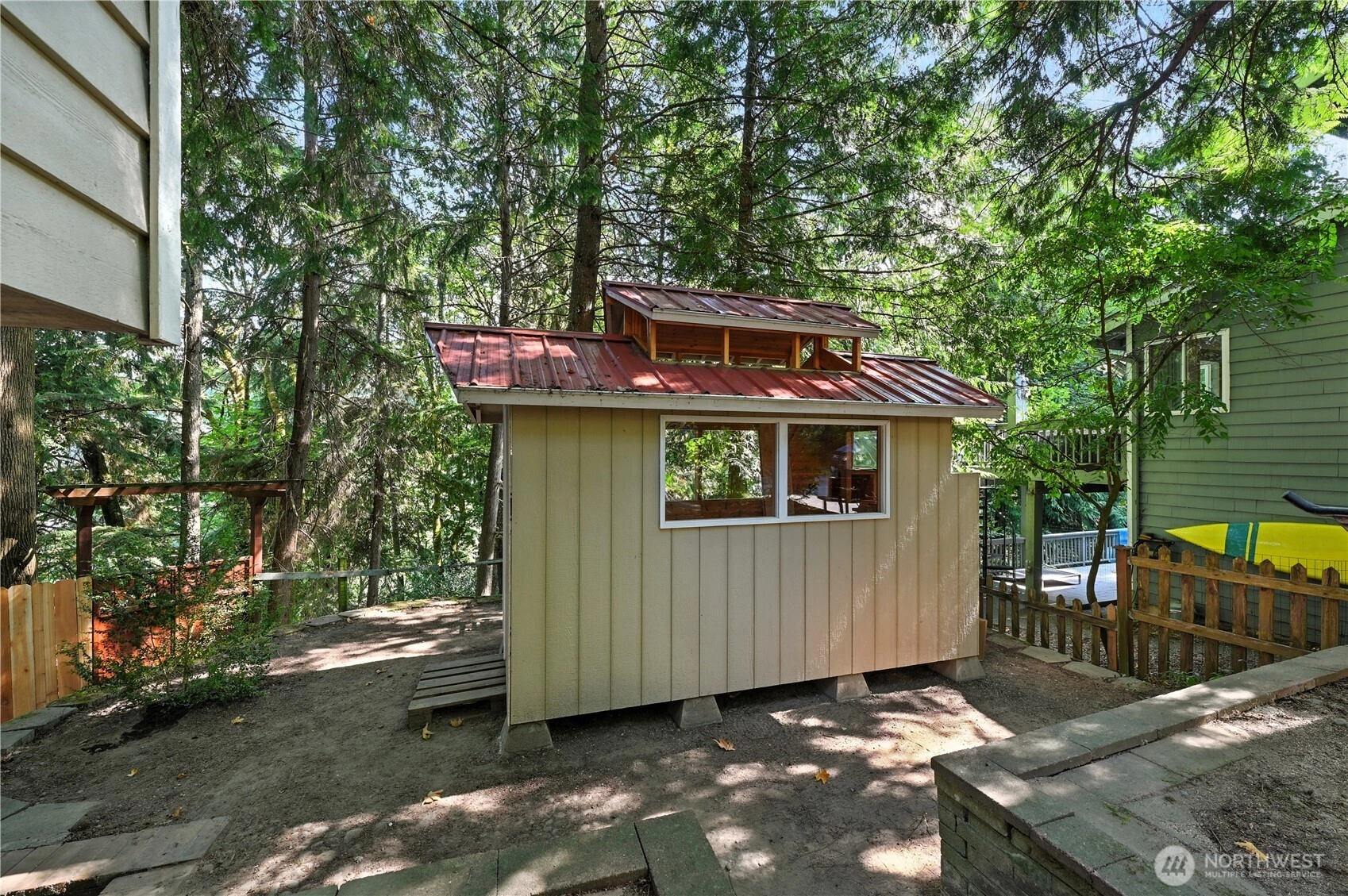 Perched above a wooded expanse, this Lake Forest Park sanctuary feels like a modern treehouse—where forest views, birdsong, and soothing sounds from McAleer Creek invite daily connection with nature. Vaulted ceilings and light-filled spaces offer peace and perspective. Chef’s kitchen w/granite counters NEW stainless appliances. Primary suite w/walk-in closet. Two more bedrooms & full bath on main. Finished daylight basement w/family/4th bedroom, wood stove, ¾ bath, new LG washer/dryer. New gas furnace, New tankless water heater, ERV ventilators, R-30 insulation. Garden space modernized shed & attached 2-car garage, near the LFP Town Center, Metro-Access. Lake WA beach rights via LFP Civic Club. Highly regarded Shoreline SD. Pre-Inspected!