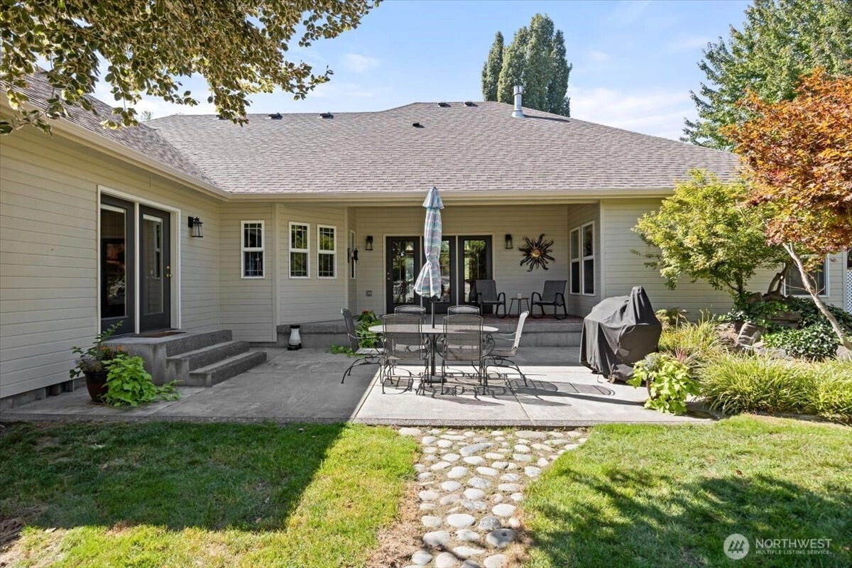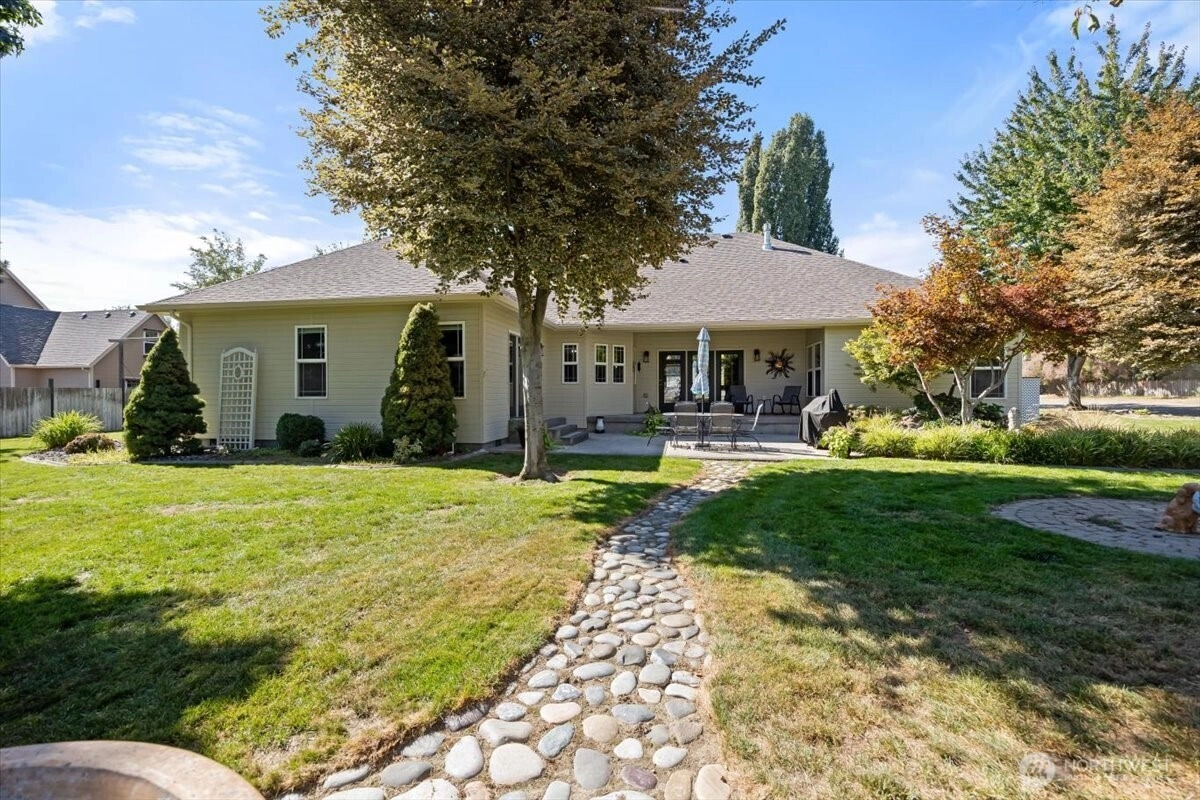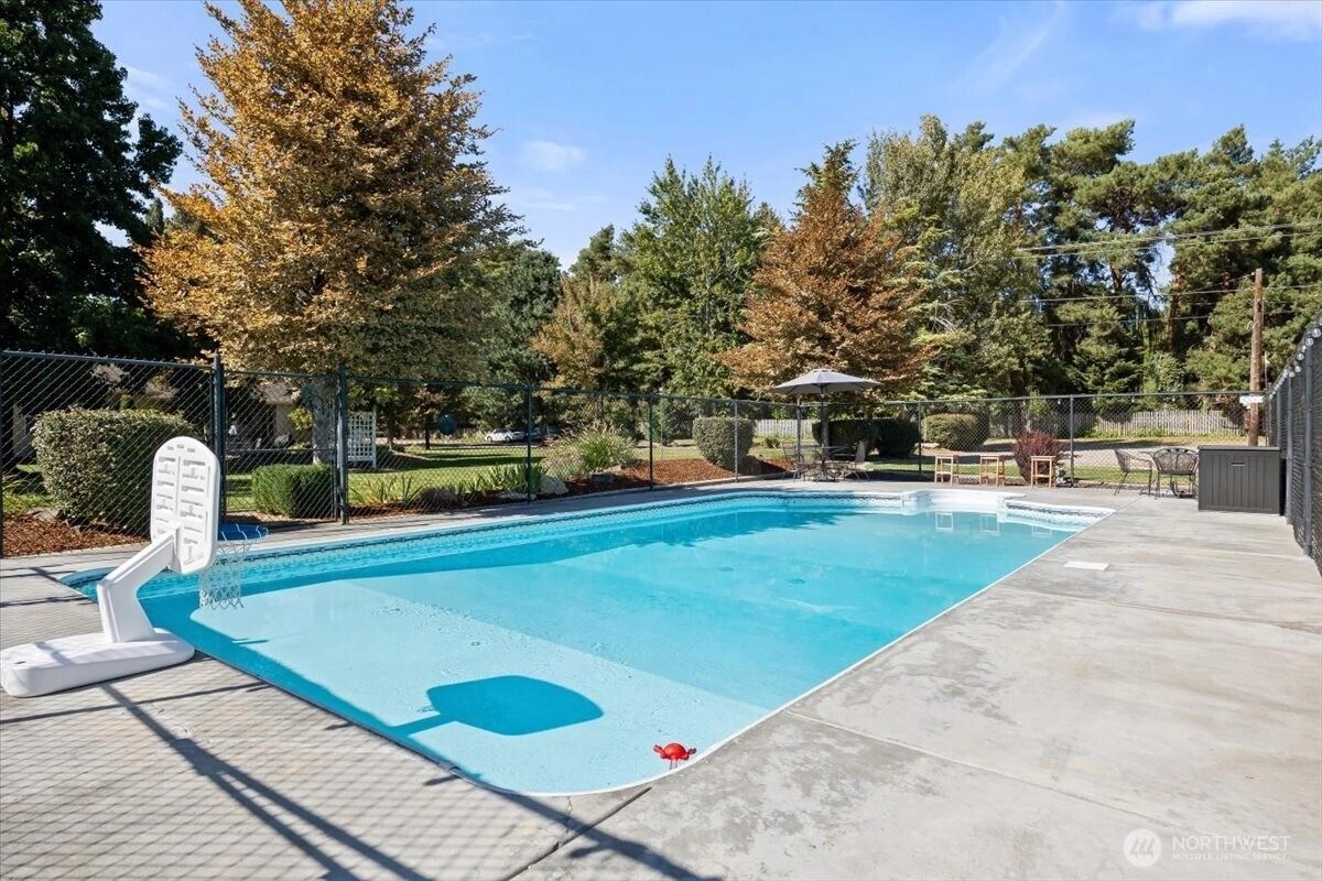 trees and lush landscaping, yet close to schools, shopping, and Columbia River walking trails. The interior boasts an oversized dining room, a bright kitchen with ample storage, a casual dining nook, and a versatile office/fourth bedroom. Outdoor living features a covered patio, a spacious yard with a fenced pool, a conditioned 110 sq. ft. bonus room in the garage, and a 12 ft x 40 ft Tuff Shed. Don't miss this unique property showcasing quality craftsmanship and a beautiful setting. Schedule your showing today!