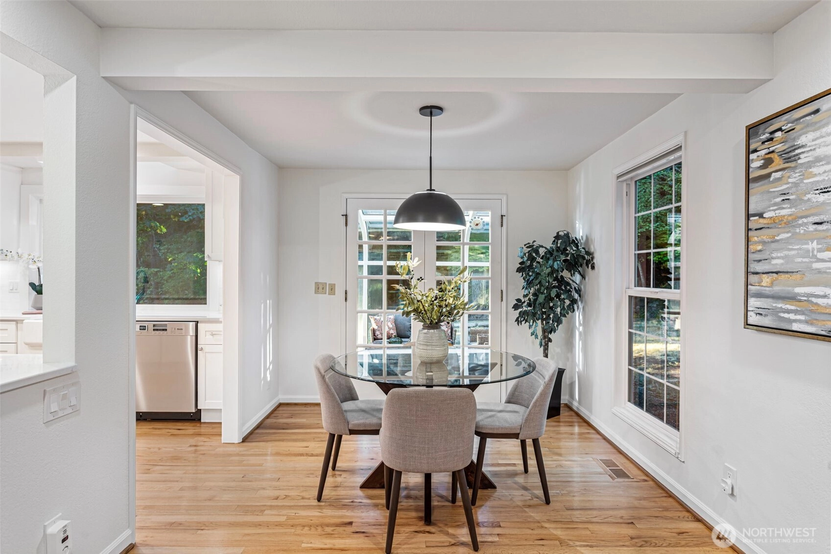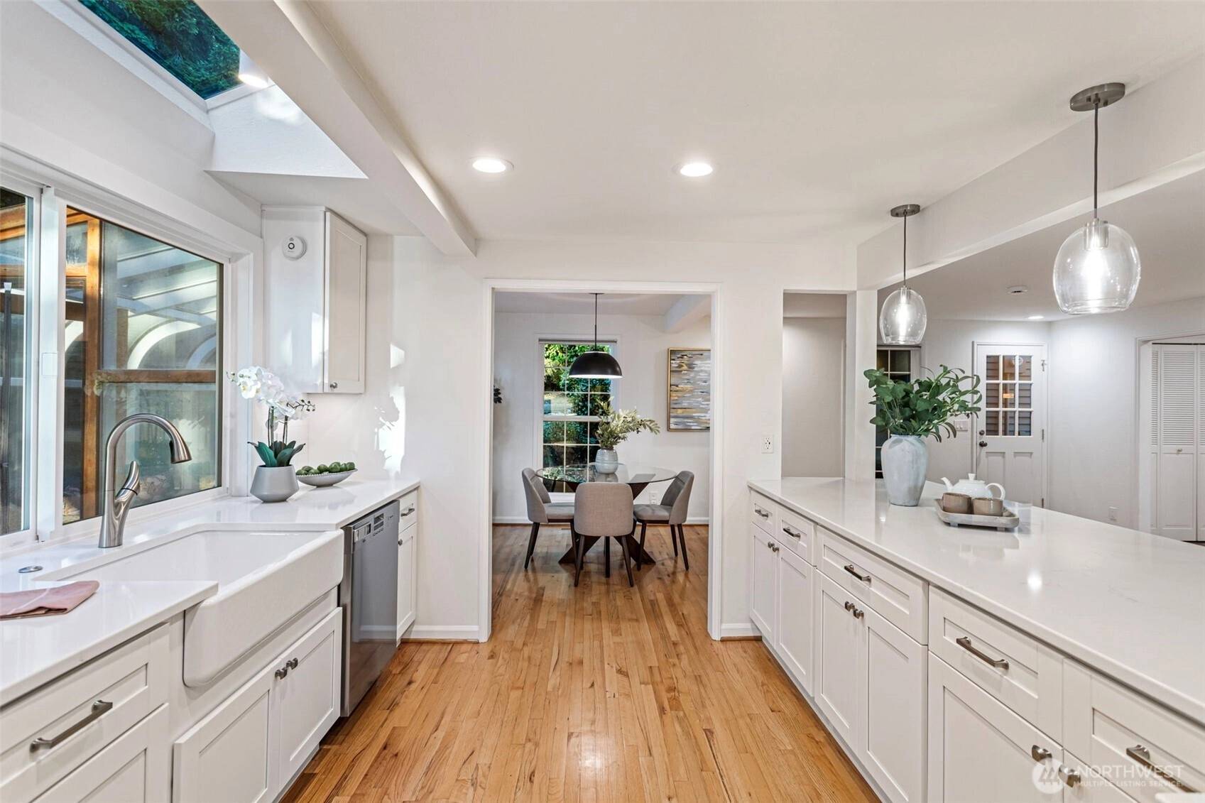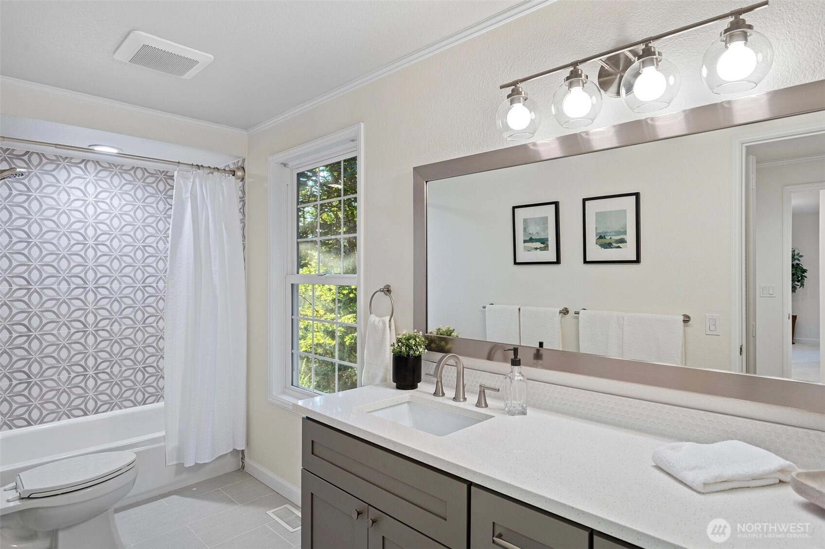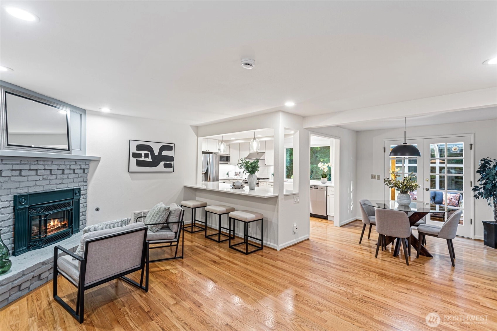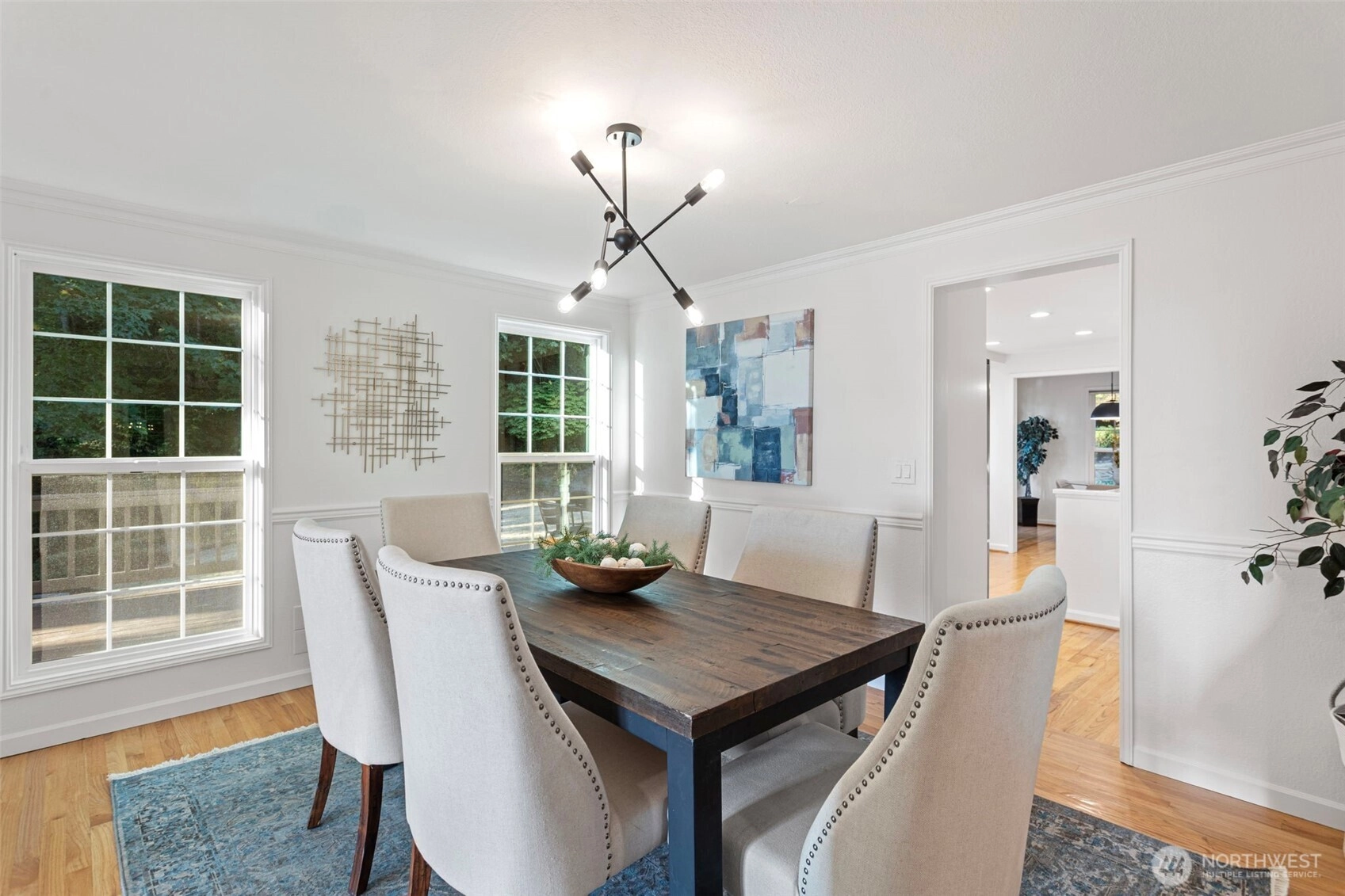 Welcome to this stunning Somerset hm w/4 bedrms+spacious bonus room, perfectly situated on a private .43-acre lot backing to greenbelt w/Olympic Mtn views. Upstairs patio, light-filled sunroom, & expansive wrap-around deck flow seamlessly into a lush, private yard. Inside, elegance meets comfort w/ a fully updated kitchen featuring high-end finishes, a gorgeous new 5-pc primary suite, fresh paint & carpet upstairs. Other updates include kids bath/gutter/furnace/insulation/most windows. Open-concept kitchen, dining/family areas create an effortless space for both entertaining & daily living. Additional highlights include Skylights, Presidential roof, wet bar, EV charging, mature landscaping w/smart sprinkler system. Top-rated Bellevue School