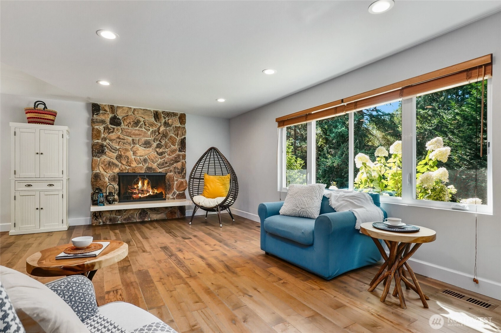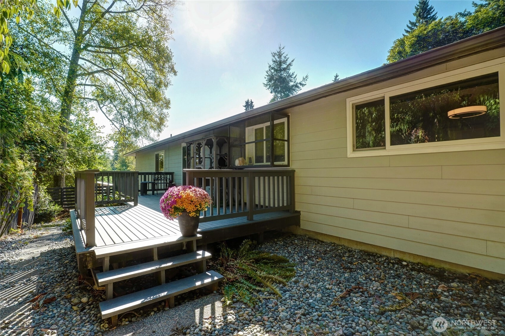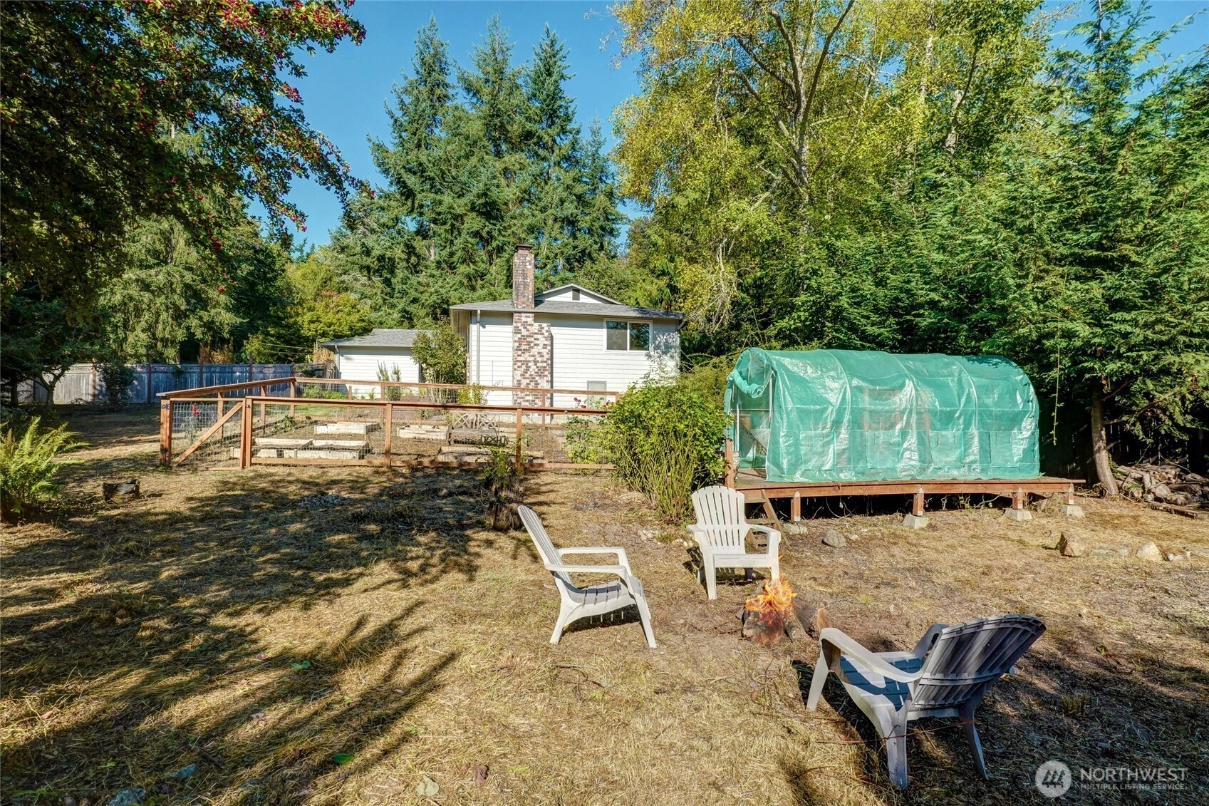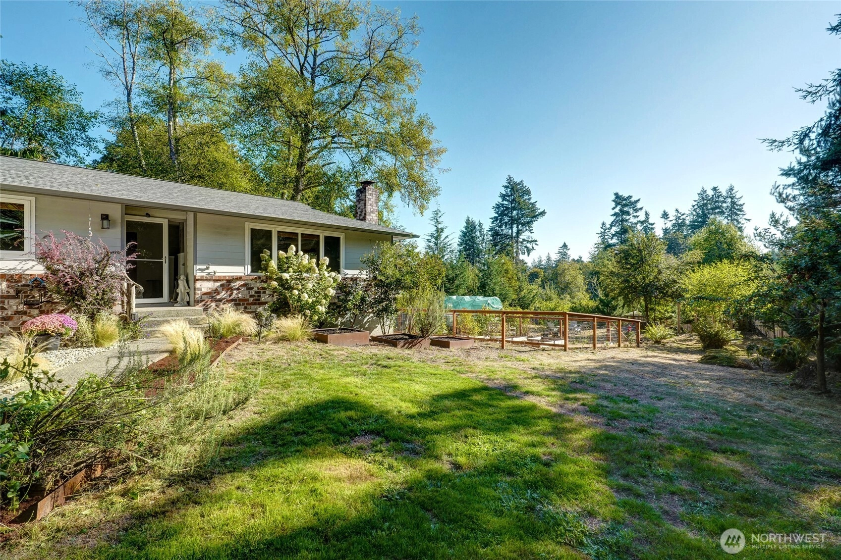 Updated one-level North End home, minutes to Seattle & passenger ferries and upcoming Heights Grocery. Spanning a large corner lot in a quiet neighborhood, this sunny, fenced backyard is perfect for gardeners & farmers with a greenhouse, apple tree with three varieties and chicken coop - plus chickens! You'll enjoy the private back deck with easy access for dining alfresco. Updates include wood doors & trim, 3/4" hand scraped maple floors & south facing windows that look out to the fenced garden.Primary features a stunning ensuite bath w/ roll-in shower & soaking tub. Attached 2-car garage w/shop, portable generator hook-up, and thoughtful updates throughout make this home move-in ready. A perfect blend of location, style and function!