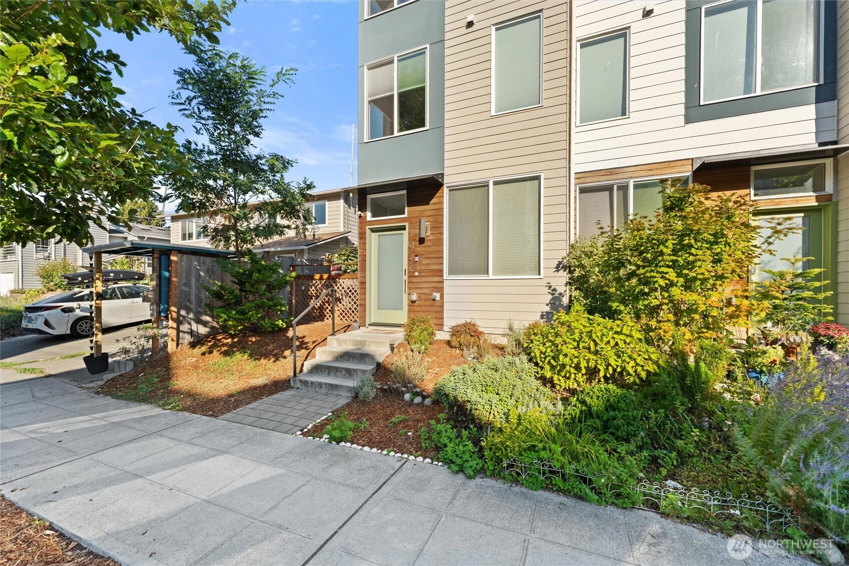 $20k PRICE DROP! Four-year-old townhome w/ no HOA dues! This modern corner unit offers clean lines, abundant natural light. Recently repainted throughout, it feels crisp, fresh, and move-in ready. Enjoy generous spaces for entertaining, two large bedrooms plus a full bath upstairs, and a dramatic third-floor primary retreat with a spa-worthy bath and HUGE walk-in closet. The adjacent community green space brings in great natural light and is ideal for dog walks or play time. Parking w/EV charger sits right behind the home. Just steps to the light rail for an effortless commute+walk score of 83, it is surrounded by fantastic local restaurants, coffee shops, and neighborhood conveniences in the Brighton neighborhood—urban living at its best!