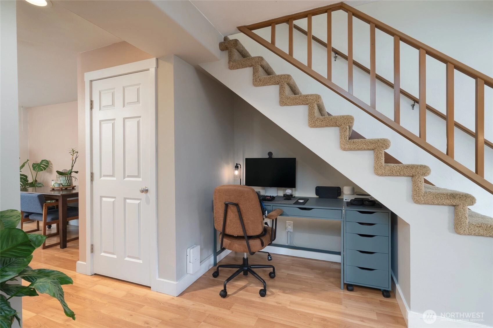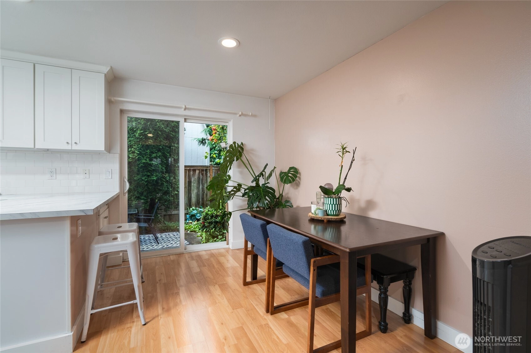 Charming townhome just minutes from enchanting downtown Edmonds or 10 minutes to the Lynnwood Light Rail for commuting. Complete w/ a 1 car garage/workshop plus uncovered parking spot this home shines! Enjoy inviting living room w/wood-burning fireplace, laminate floors on the main & cute under stairs office nook. Light & bright updated kitchen w/Stainless appliances, tile floors, makes cooking/entertaining a breeze. Step out the slider to your back patio oasis! Updated half bath completes the main floor. Upstairs you will find a large primary bedroom w/dual closets, refreshed full bath, second bedroom for versatility & Laundry closet. W & D to remain. Nicely landscaped & maintained this home truly shines! Welcome home! Edmonds School Dist.