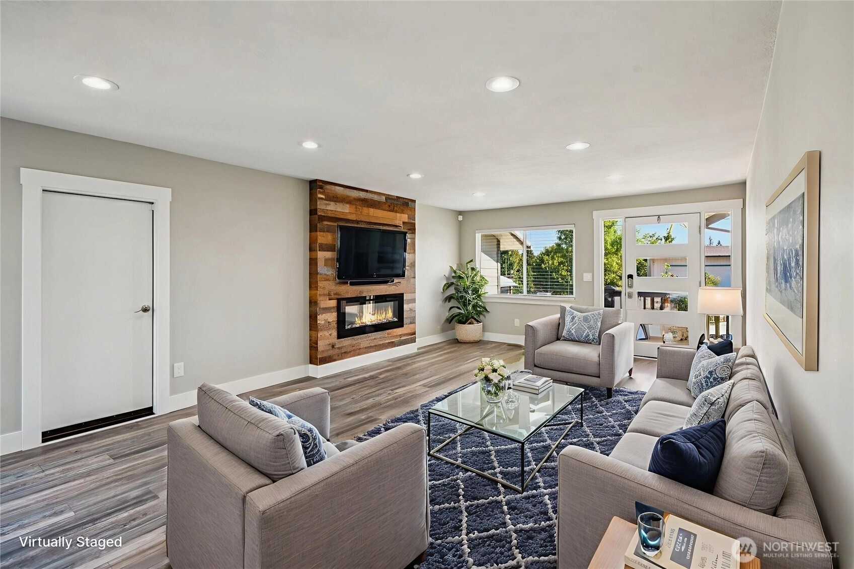 Fully remodeled Mid-Century home in Felida, with floor-to-ceiling windows & abundant natural light. The open living & dining areas showcase an electric fireplace framed by a wood accent wall. The kitchen features built-in ovens, a gas cooktop/custom hood, large quartz island, & an adjoining flex space. Decorative door off kitchen to the larger of two decks. Primary suite with walk-in closet & luxurious ensuite bath. Two additional bedrooms, one oversized with two closets, a full bath, & laundry room offer exceptional storage. Unique touches include a root cellar & exposed beams. Two-car garage, parking pad, carport, & X-Large RV parking— up to six vehicles. Shed out back, space for a dog run & garden! Close to amenities & great schools!