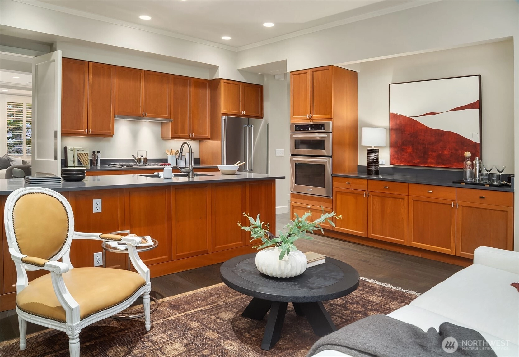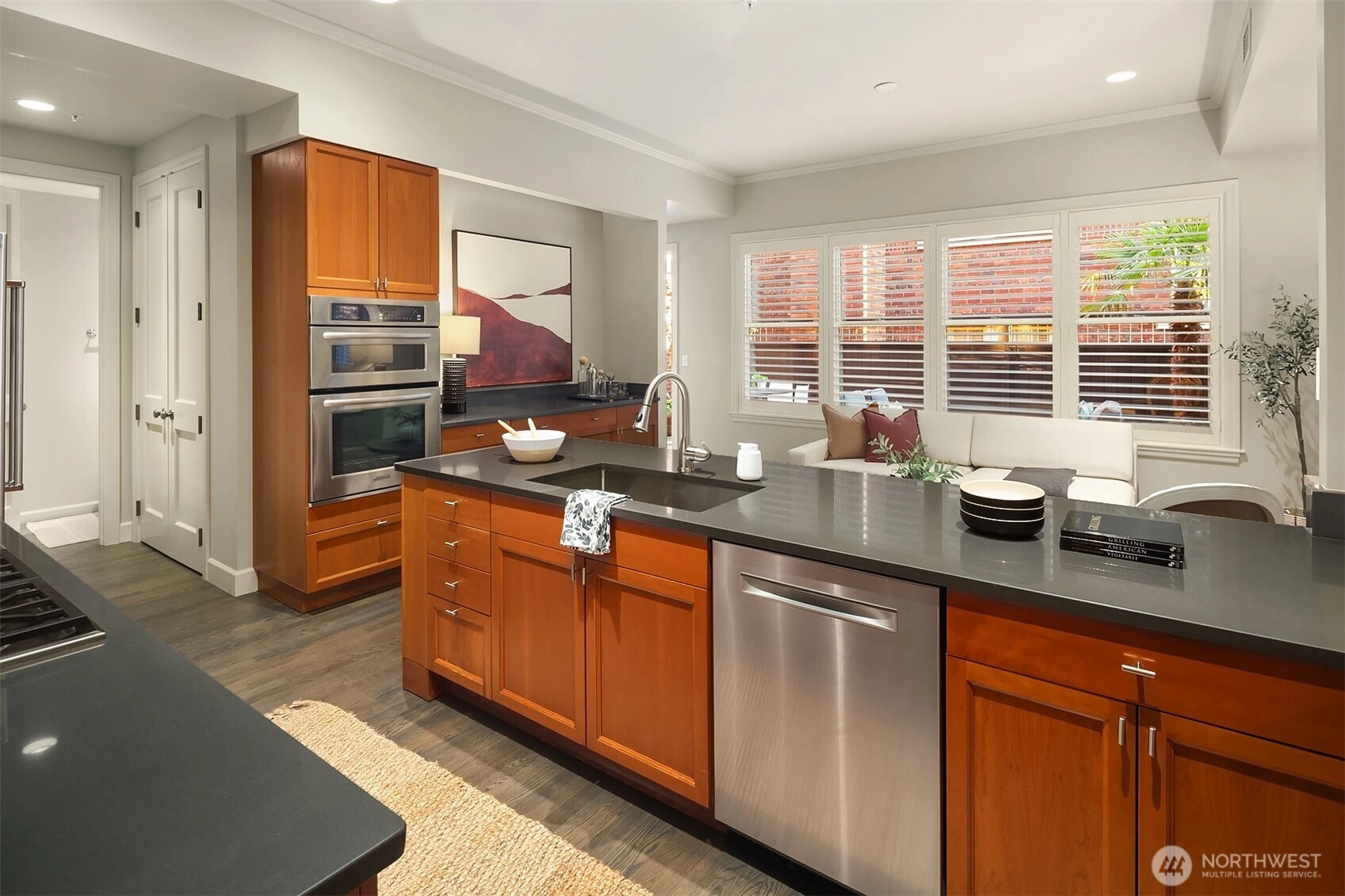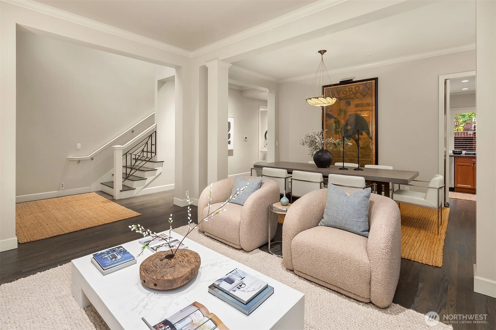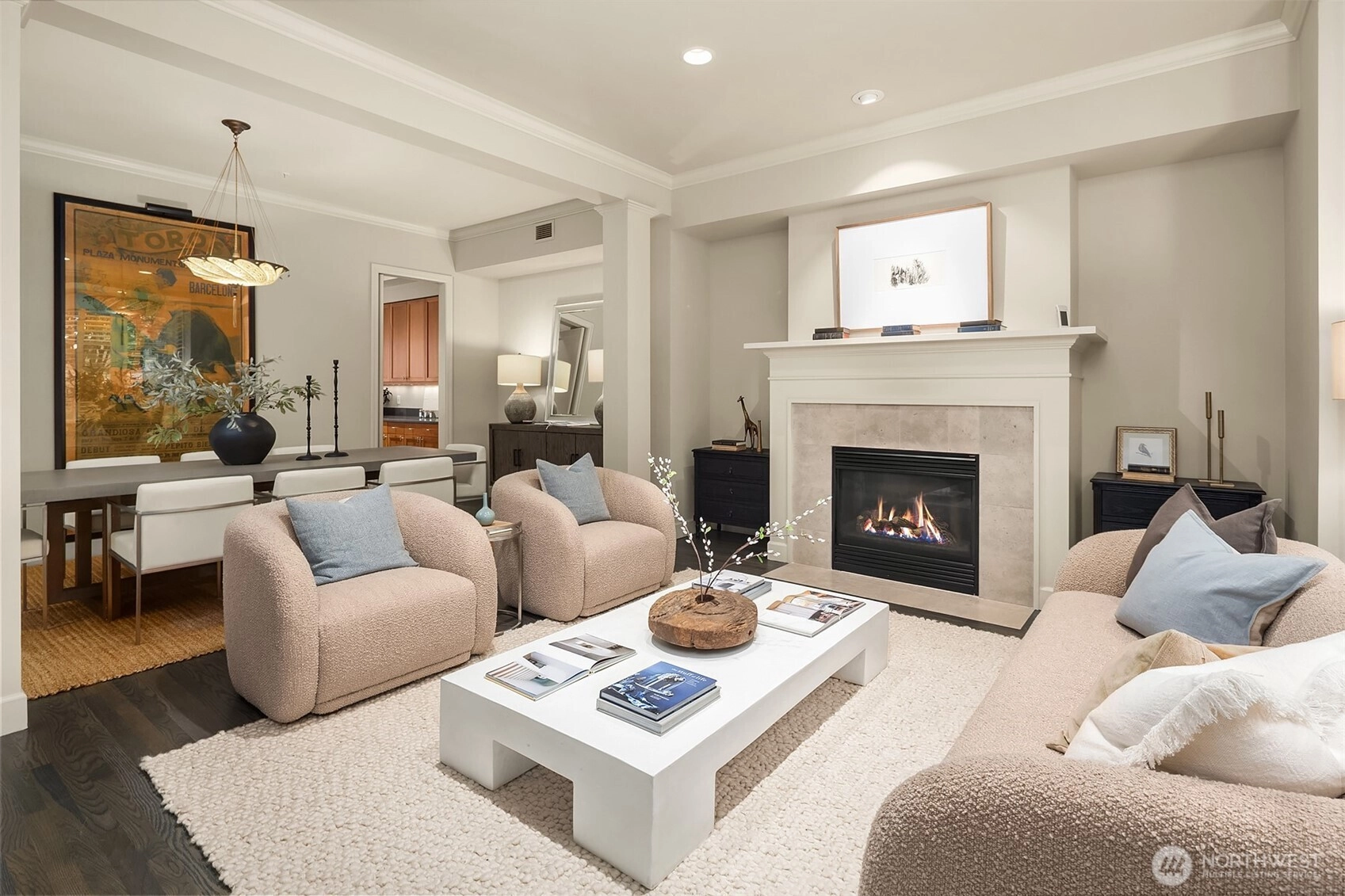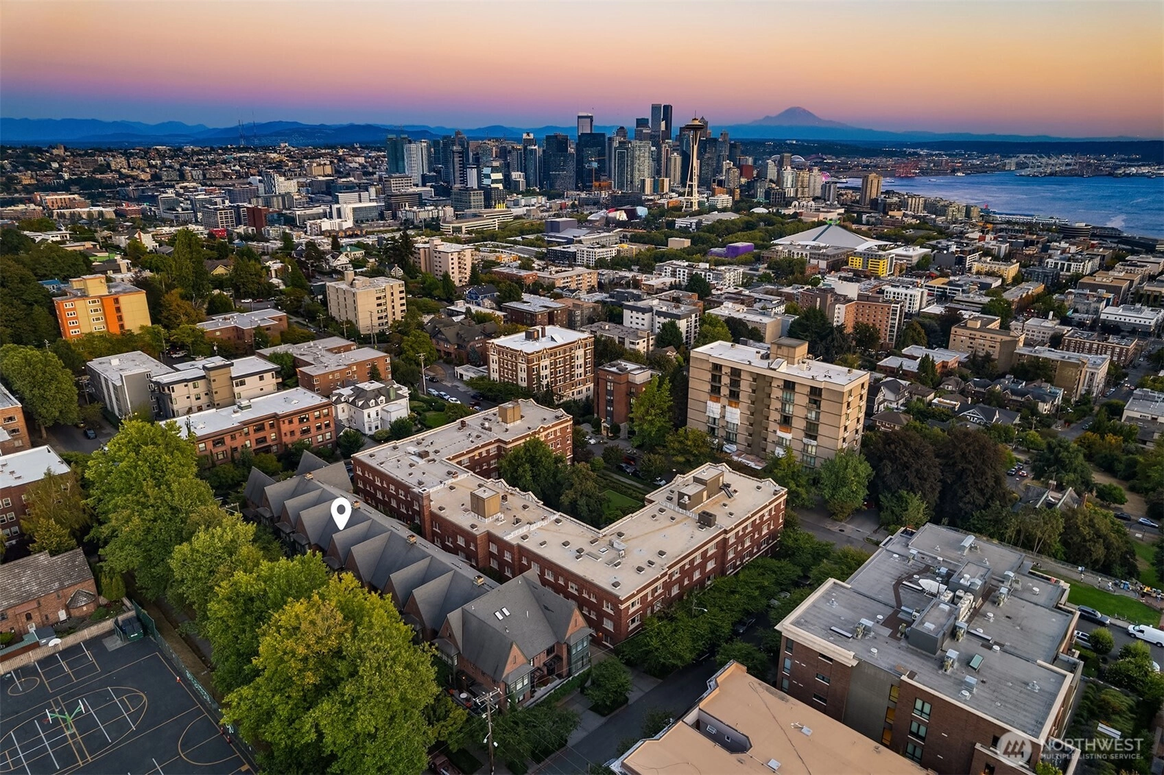 One block from Kerry Park, this rare South Slope QA townhome blends timeless design with modern amenities. It features 10 ft ceilings, hardwood floors, and a grand dining area. The main level includes a formal living room with gas fireplace, a well-equipped kitchen with stainless appliances and gas cooktop, and a family room opening to a large south-facing patio. The spacious primary suite offers a second fireplace, large walk-in closet, and 5-piece bath with limestone finishes. Enjoy central A/C, secure gated entry, garage with two deeded parking spaces, and storage. With a 92 Walk Score, this home provides unmatched access to downtown, Climate Pledge Arena, and Queen Anne’s vibrant shops and restaurants.