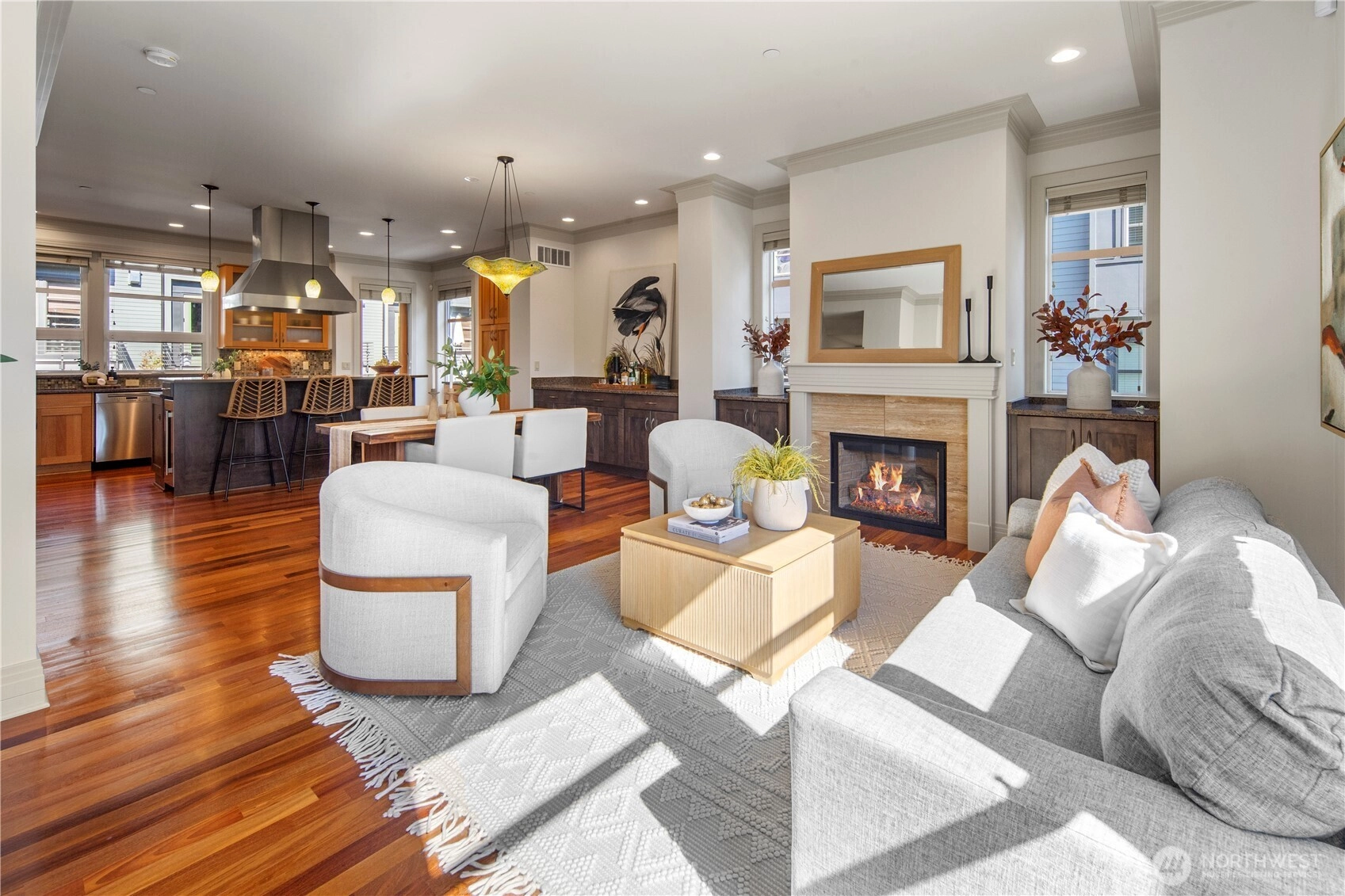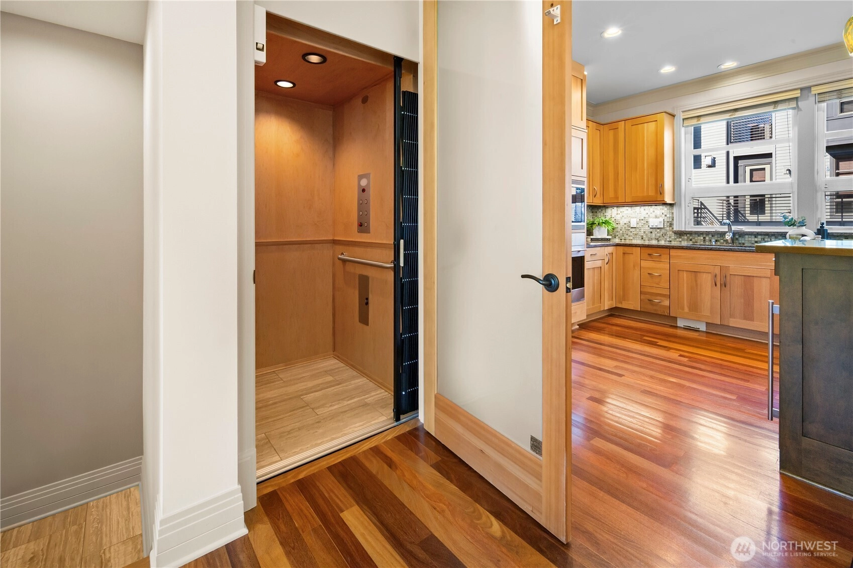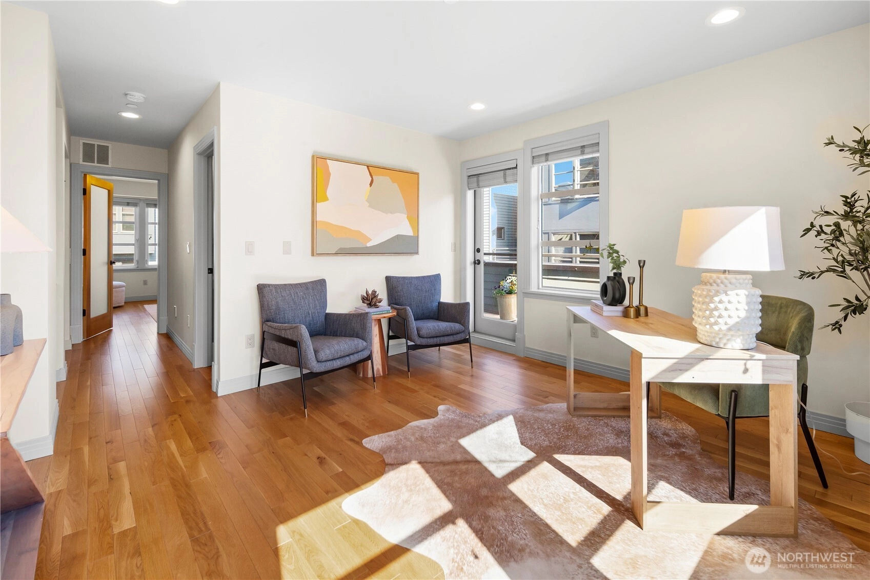 Perfectly placed in the heart of the Magnolia Village this immaculate 3BR/2.75BA townhome blends elegance w/ flexibility & convenience. Soaring ceilings, walls of light, & luxury finishes set the stage. Your in-home elevator delivers convenience & the rare ability to age in place gracefully. Extensive updates throughout (see list on-site). Entertain in your Chef’s kitchen boasting Sub-Zero, Wolf & Miele appliances + custom lighting & elegant stone & wood accents. Street-level suite w/ separate entry is zoned commercial - ideal for income potential, or flex space. Add’l. en-suite BR on 3rd floor, plus expansive top-floor primary retreat w/ walk-in spa like bath, & With 3 patios, 2-car garage & easy access to DT & SLU, this must be the place.