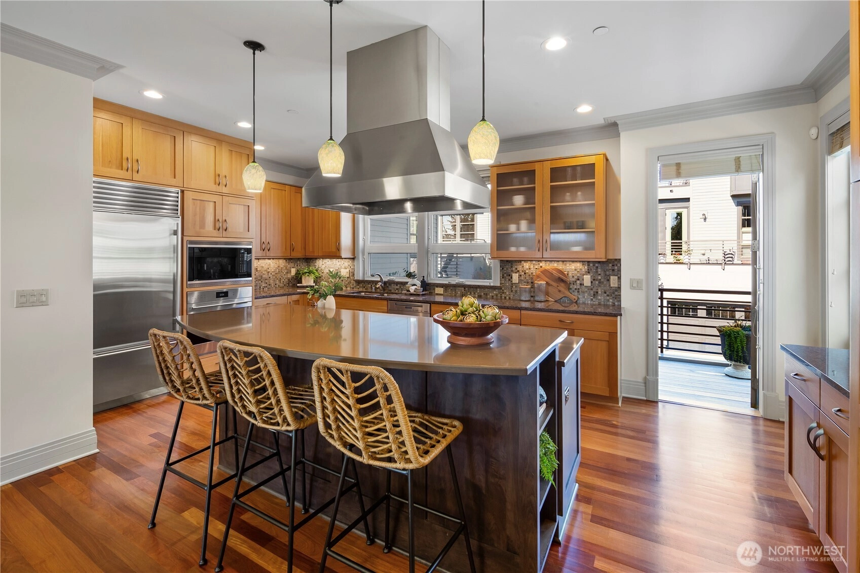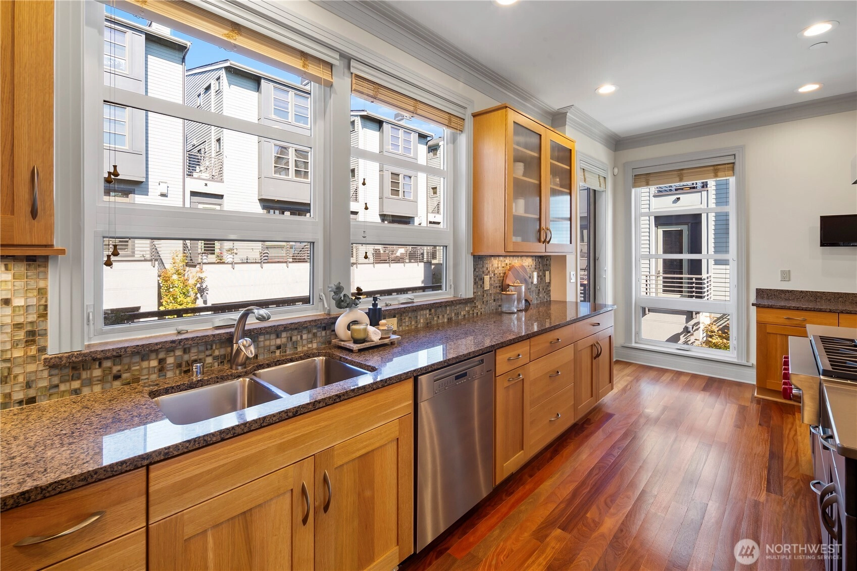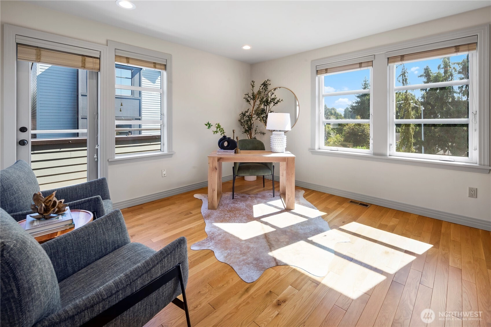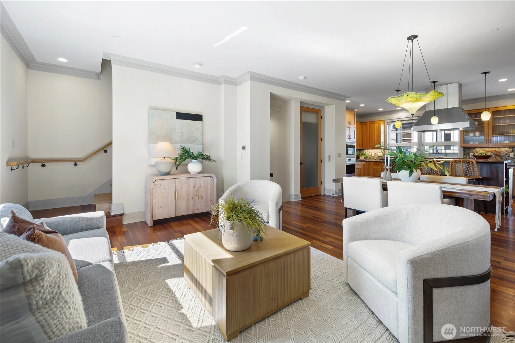 Perfectly placed in the heart of the Magnolia Village this immaculate 3BR/2.75BA townhome blends elegance w/ flexibility & convenience. Soaring ceilings, walls of light, & luxury finishes set the stage. Your in-home elevator delivers convenience & the rare ability to age in place gracefully. Extensive updates throughout (see list on-site). Entertain in your Chef’s kitchen boasting Sub-Zero, Wolf & Miele appliances + custom lighting & elegant stone & wood accents. Street-level suite w/ separate entry is zoned commercial - ideal for income potential, or flex space. Add’l. en-suite BR on 3rd floor, plus expansive top-floor primary retreat w/ walk-in spa like bath, & With 3 patios, 2-car garage & easy access to DT & SLU, this must be the place.