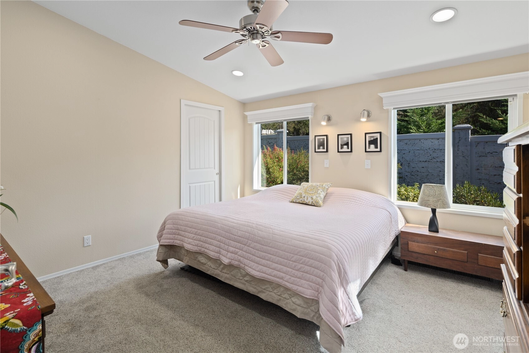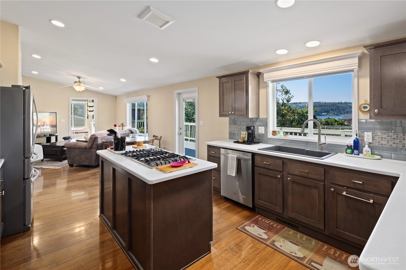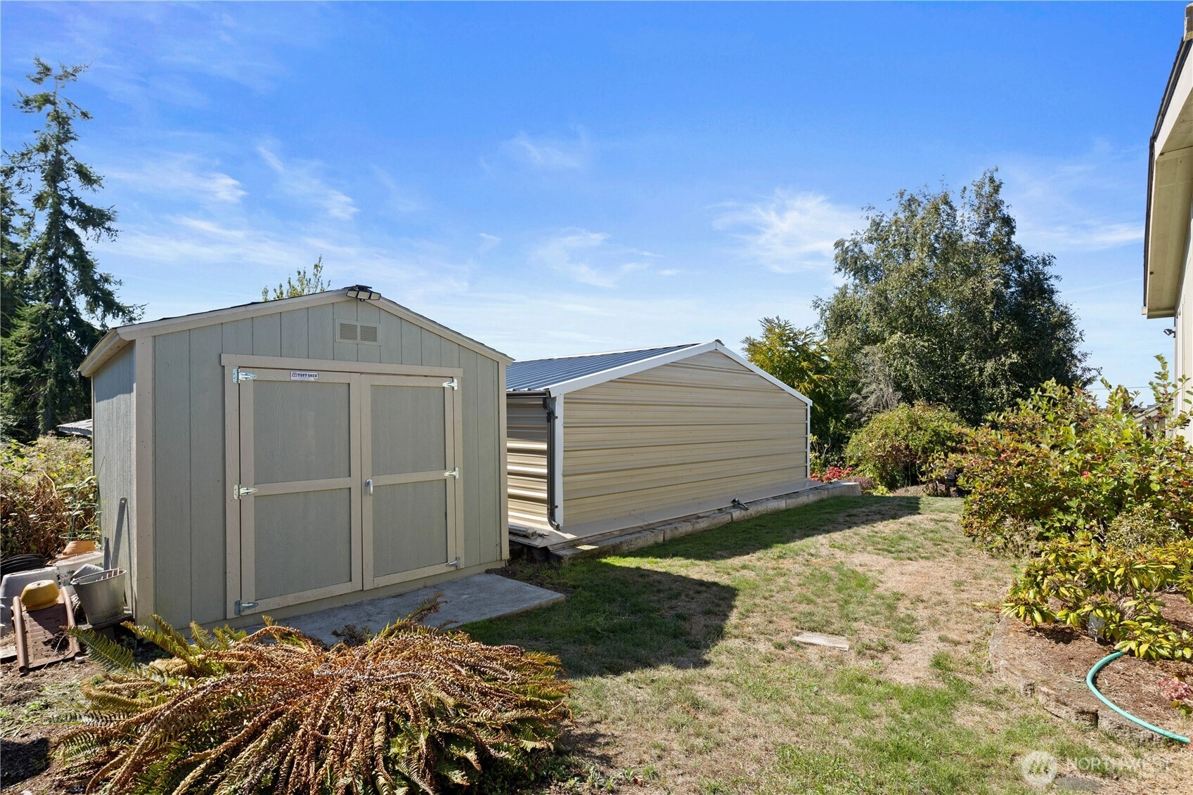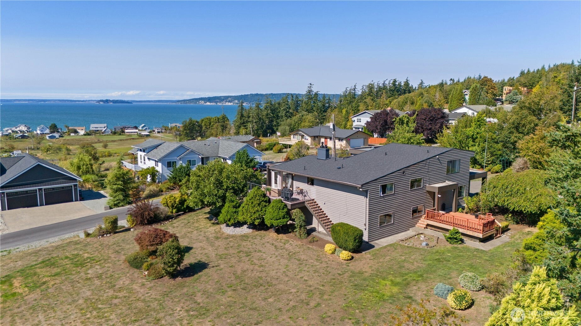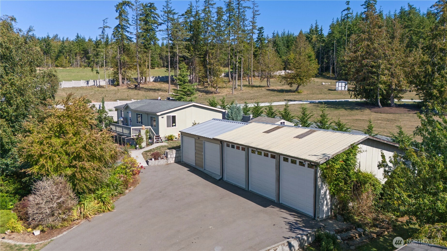 Rare find—2 homes on 1 lot with western water views on North Camano Island! The NW Contemporary main house offers multi-level living, perfect for entertaining, with updated kitchen featuring granite, cork floors, stainless appliances and multiple decks to enjoy views. Primary suite has private deck plus 3 more bedrooms. Nice manufactured home (2018) adds excellent rental income or guest space. Detached 5-bay garage/shop, private-entry office, greenhouse & additional outbuildings provide extra flexibility. Roof replaced in 2024/2025. Endless options for living, investment, or both!