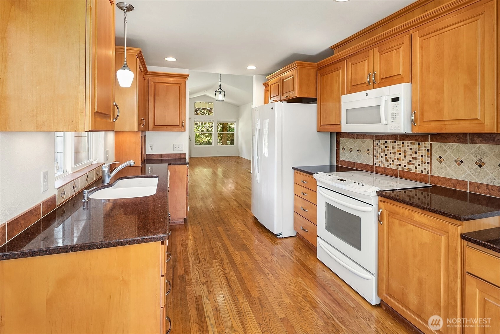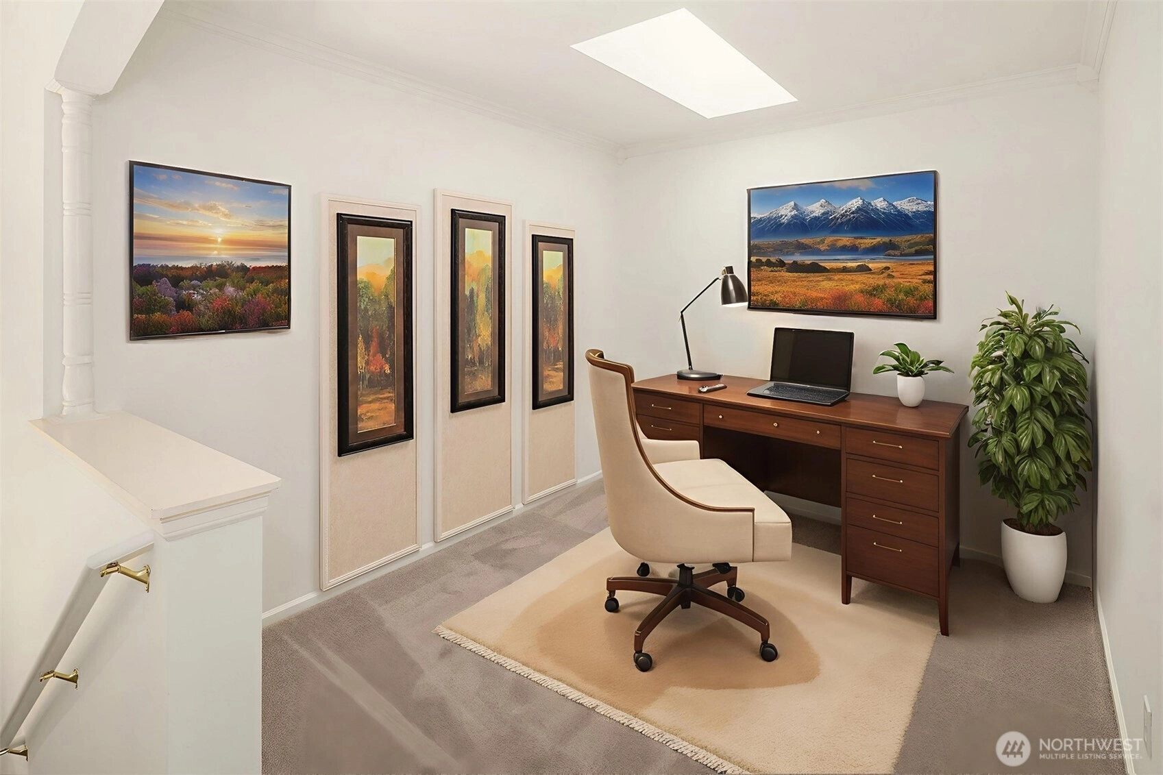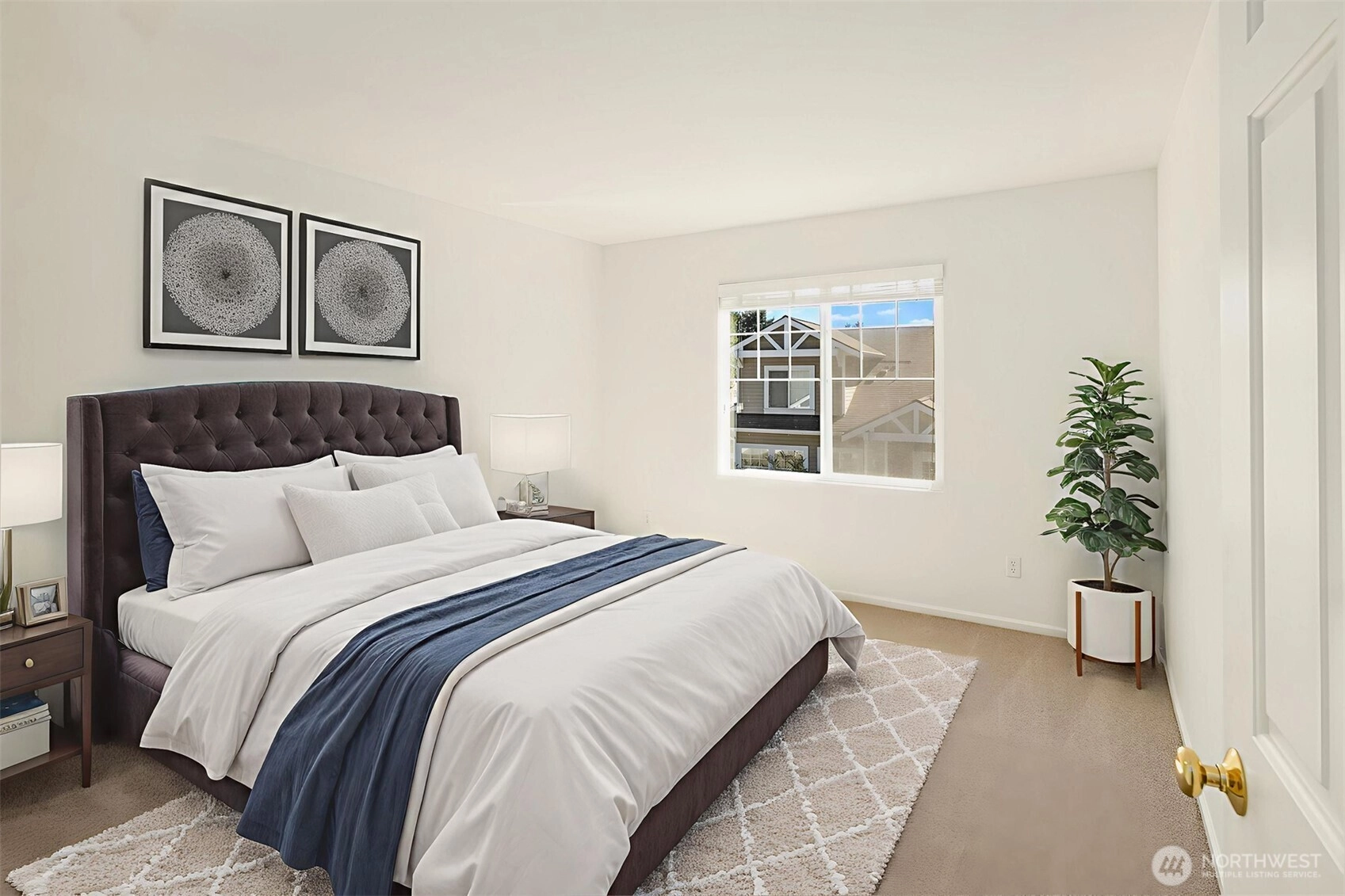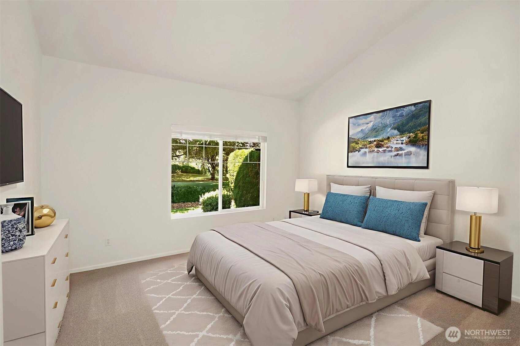 This beautifully cared for corner townhome lives like a single-family home offering privacy & comfort in the coveted Marina Pointe community. Step inside to soaring vaulted ceilings in the living & dining rooms, where abundant natural light & tiled gas FP creates a warm & inviting atmosphere. The well-designed eat-in kitchen features granite counters, generous cabinetry & a cheery breakfast nook. Desirable main-floor primary suite w/walk-in closet & large bath w/soaking tub & separate shower. Upstairs, a versatile loft w/skylight offers options for a media room or den complete w/hidden storage. Two more spacious bedrooms & 3/4 bath complete the upper level. Fresh new paint, new carpet & 2-car garage w/abundant storage. Move-in ready home!
