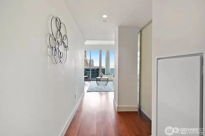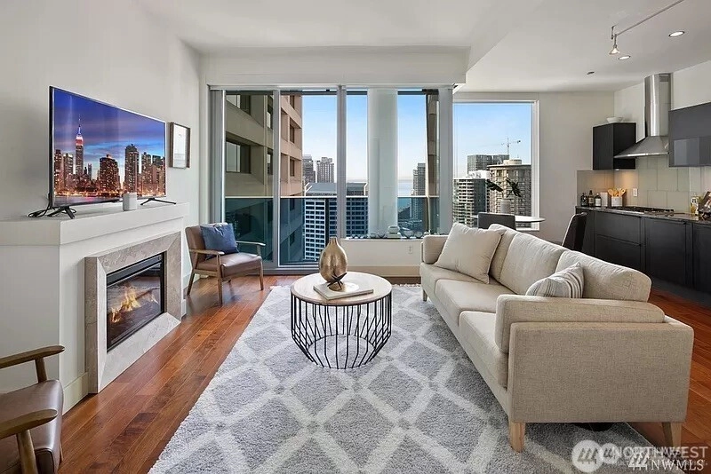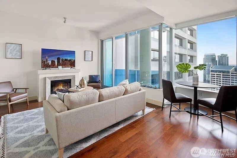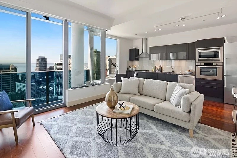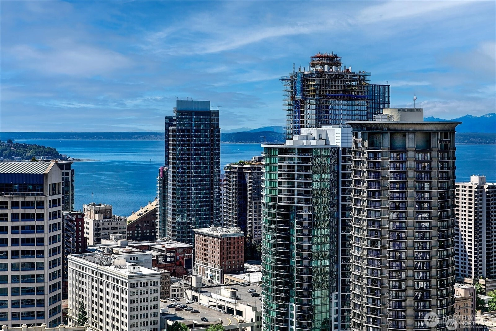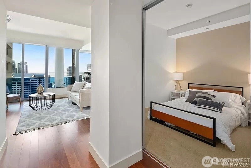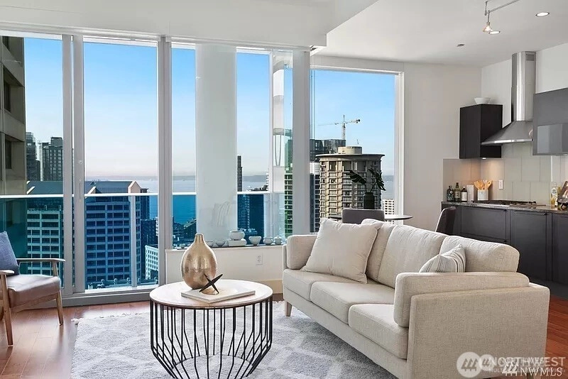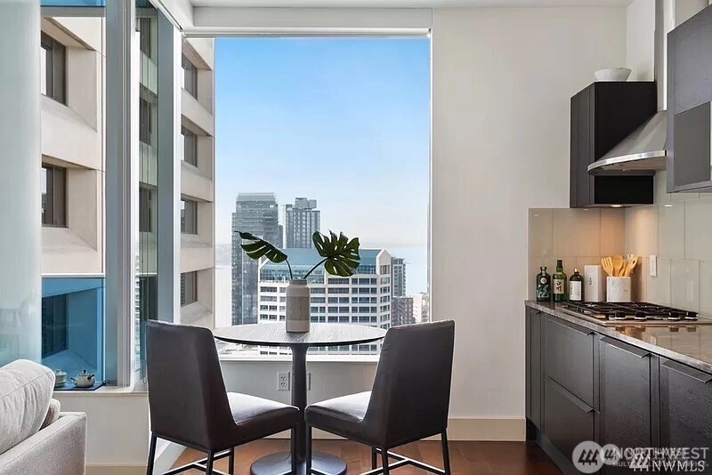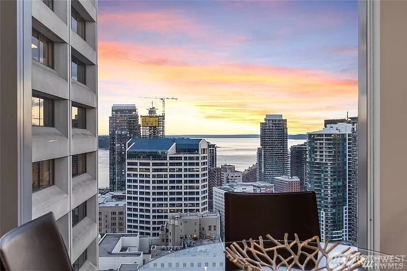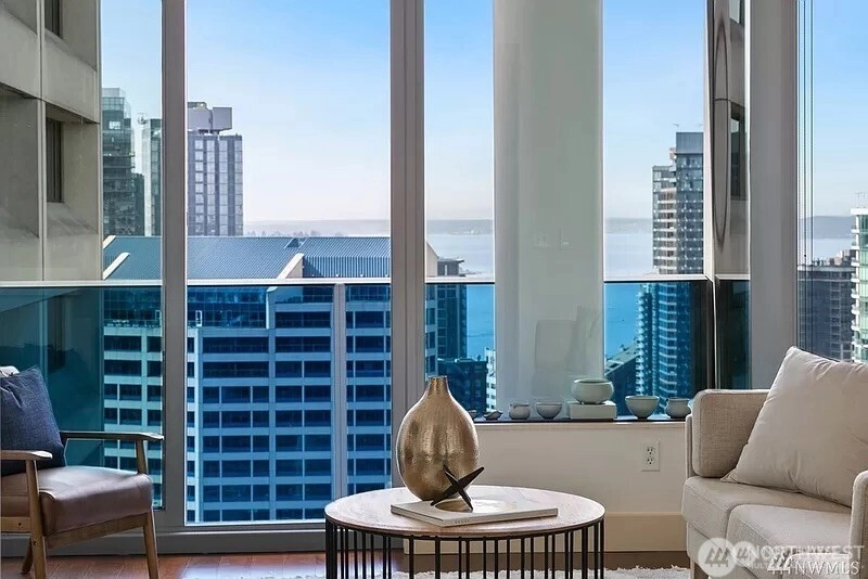 Luxury 31st-floor residence above Hyatt hotel Olive 8 -a premier downtown high-rise. This bright, open-concept floor plan features floor-to-ceiling windows, showcasing panoramic vistas and soaking the space in natural light. Spacious living/dining area, ideal for entertaining or relaxing with the jaw-dropping backdrop. Step into a resort-like lifestyle- imagine all that comes with living above the HYATT HOTEL! Access hotel from your residence elevator floor 2, arrive in style at Valet park and dine with discount at hotel restaurant. Spa/pool membership $85 per month. 5 star amenities with a 24-hour concierge- Located in the vibrant center of the city—just a short stroll to Light rail, Pike Place,Cap Hill dining scene.1parking 1storage.A/C