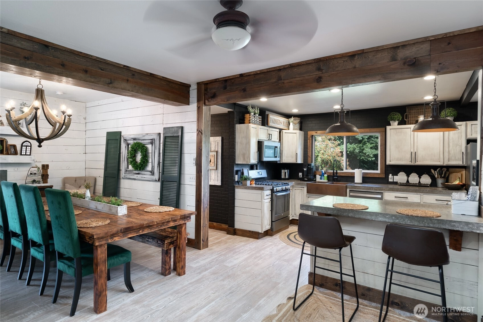 Experience the charm of this beautifully refreshed 1910 farmhouse filled with character & paired with modern comforts. Original shiplap & wide staircase pair perfectly with new finishes throughout. Inside you’ll find 3bd/2bth, an upstairs bonus room (great for another bedroom/den), small office & large unfinished basement that offers plenty of room for storage. The kitchen boasts concrete counters, copper farmhouse sink, pantry & stainless appliances that all stay. Recent updates include the roof, windows, flooring, paint & more. Enjoy a fenced backyard with a patio; ideal for relaxing or hosting under the glow of string lights and a mounted TV. Located on 1.31 acres this home is a wonderful blend of timeless features and updated touches!