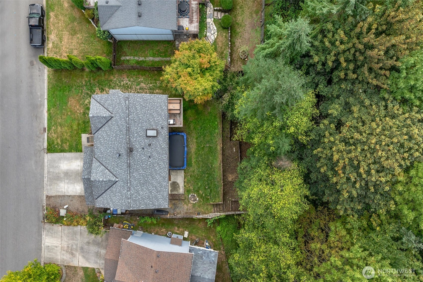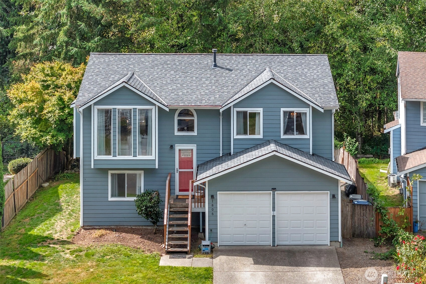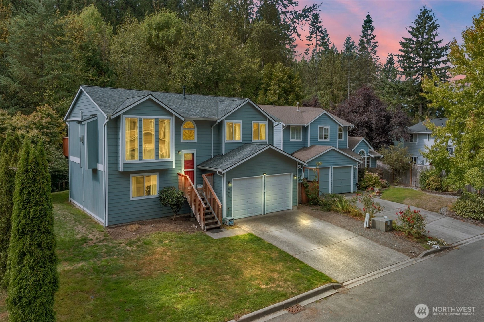 Just steps from the Centennial Trail, Frisbee Park, Boat launch, The Mill Town Center & the Lake! This private creekside setting has trees as your backdrop. Upper level features an updated kitchen with skylights, newer marble countertops, cabinets & newer appliances. The great room has vaulted ceilings with floor-to-ceiling windows & a gas fireplace. Large primary suite, 2 full baths & 2 additional bedrooms up stairs. Lower level lives large! 2nd primary/bedroom with sitting area has ADU potential. A nice size bonus room leading out back & 3/4 bath. 3 living areas! Newer roof, carpet & fixtures—move-in ready! Located in a cul de sac. Large terraced yard backing to NGPA & the creek. You can't beat the location! New mini splits for AC & heat!