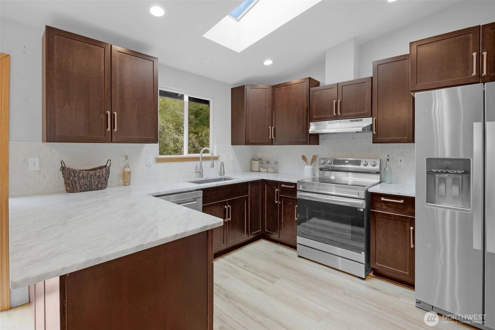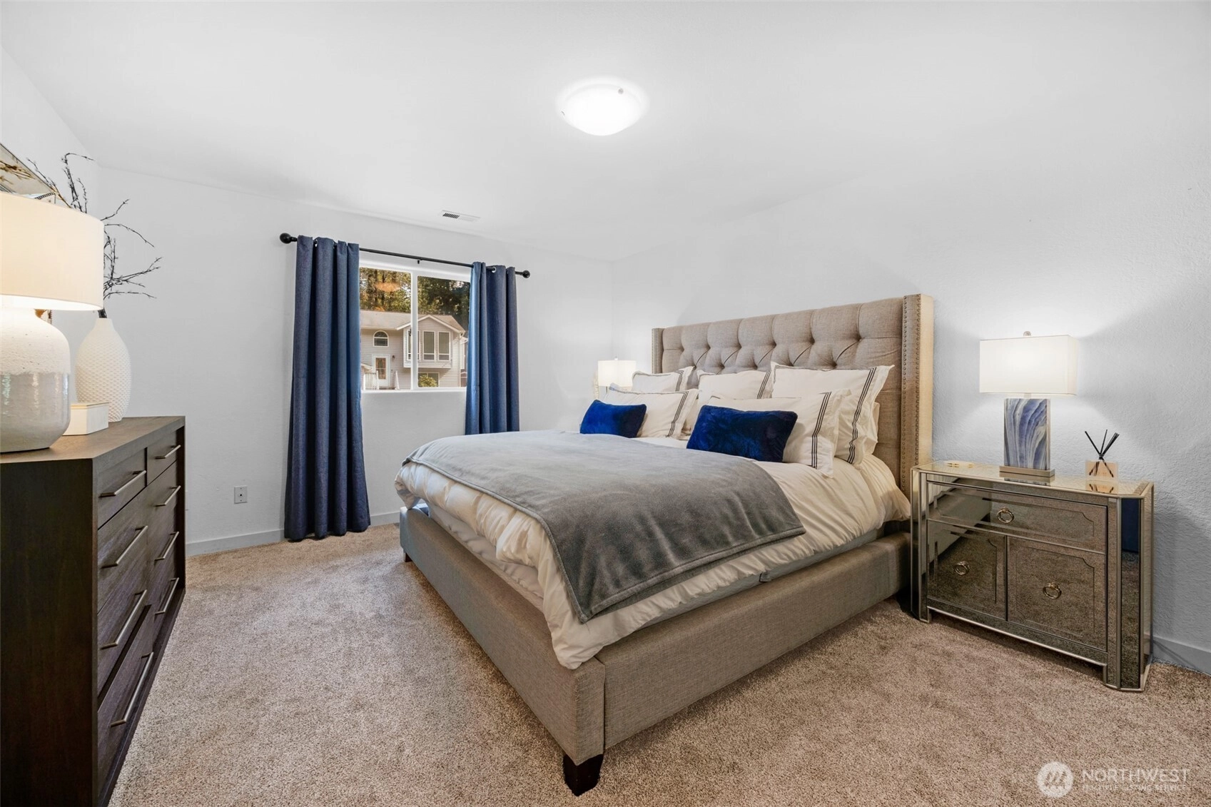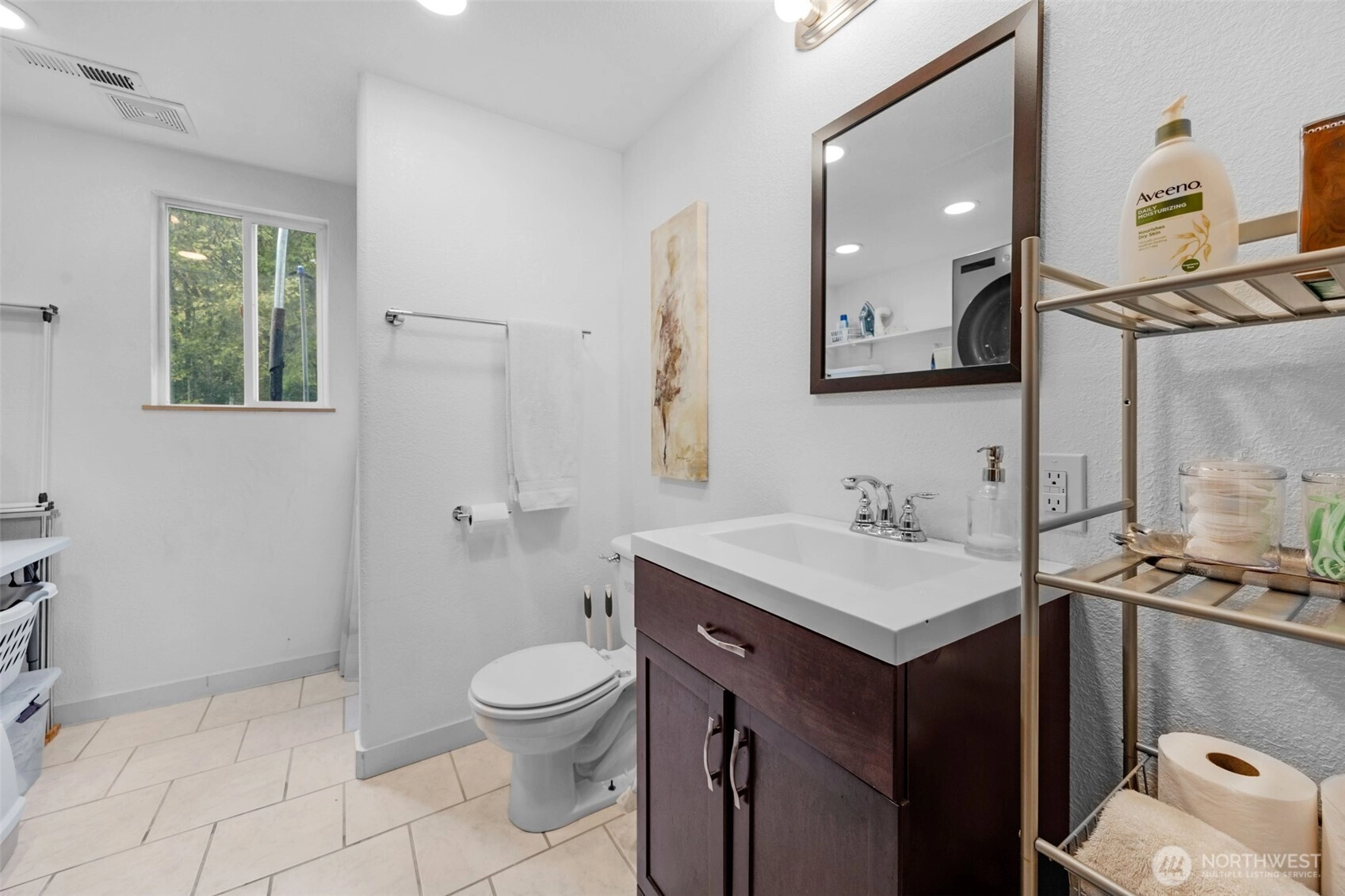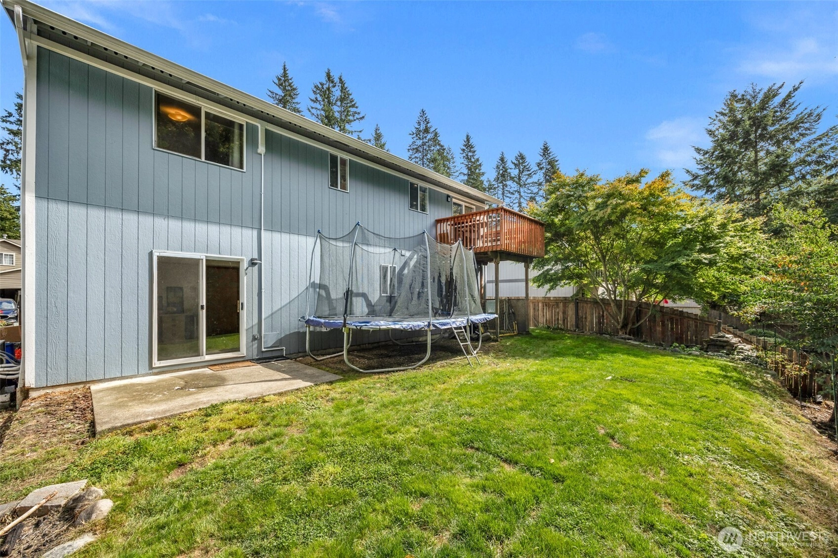Just steps from the Centennial Trail, Frisbee Park, Boat launch, The Mill Town Center & the Lake! This private creekside setting has trees as your backdrop. Upper level features an updated kitchen with skylights, newer marble countertops, cabinets & newer appliances. The great room has vaulted ceilings with floor-to-ceiling windows & a gas fireplace. Large primary suite, 2 full baths & 2 additional bedrooms up stairs. Lower level lives large! 2nd primary/bedroom with sitting area has ADU potential. A nice size bonus room leading out back & 3/4 bath. 3 living areas! Newer roof, carpet & fixtures—move-in ready! Located in a cul de sac. Large terraced yard backing to NGPA & the creek. You can't beat the location! New mini splits for AC & heat!