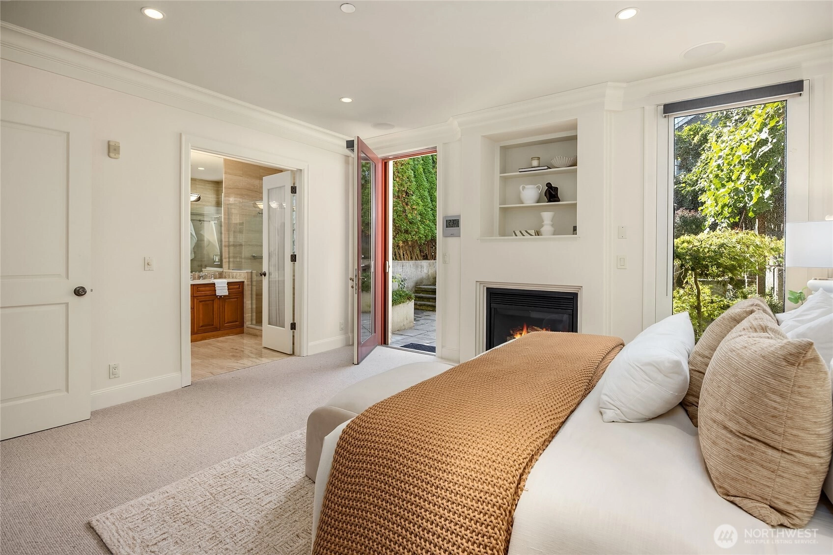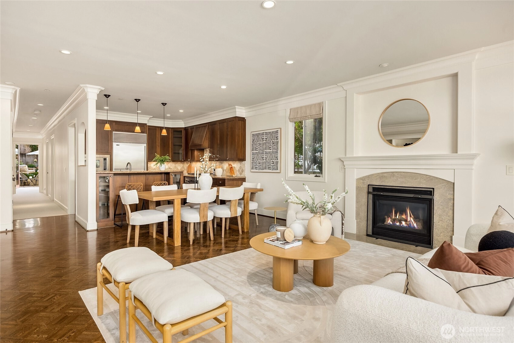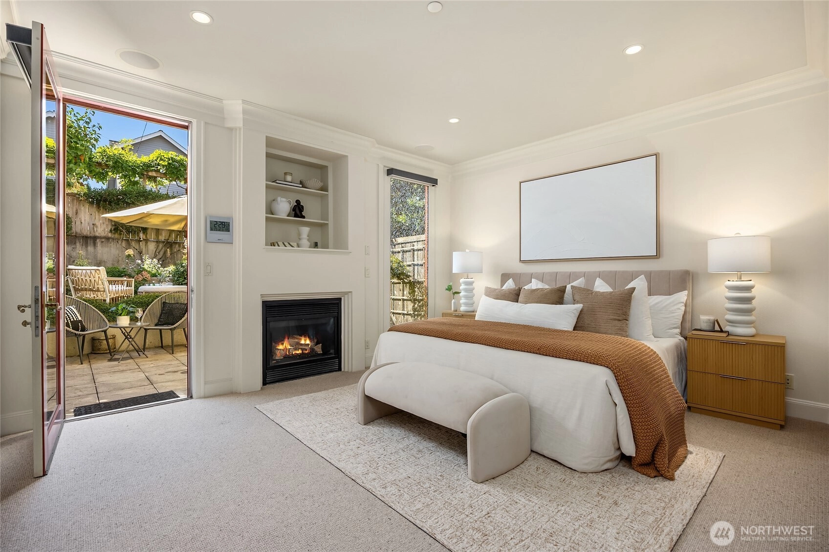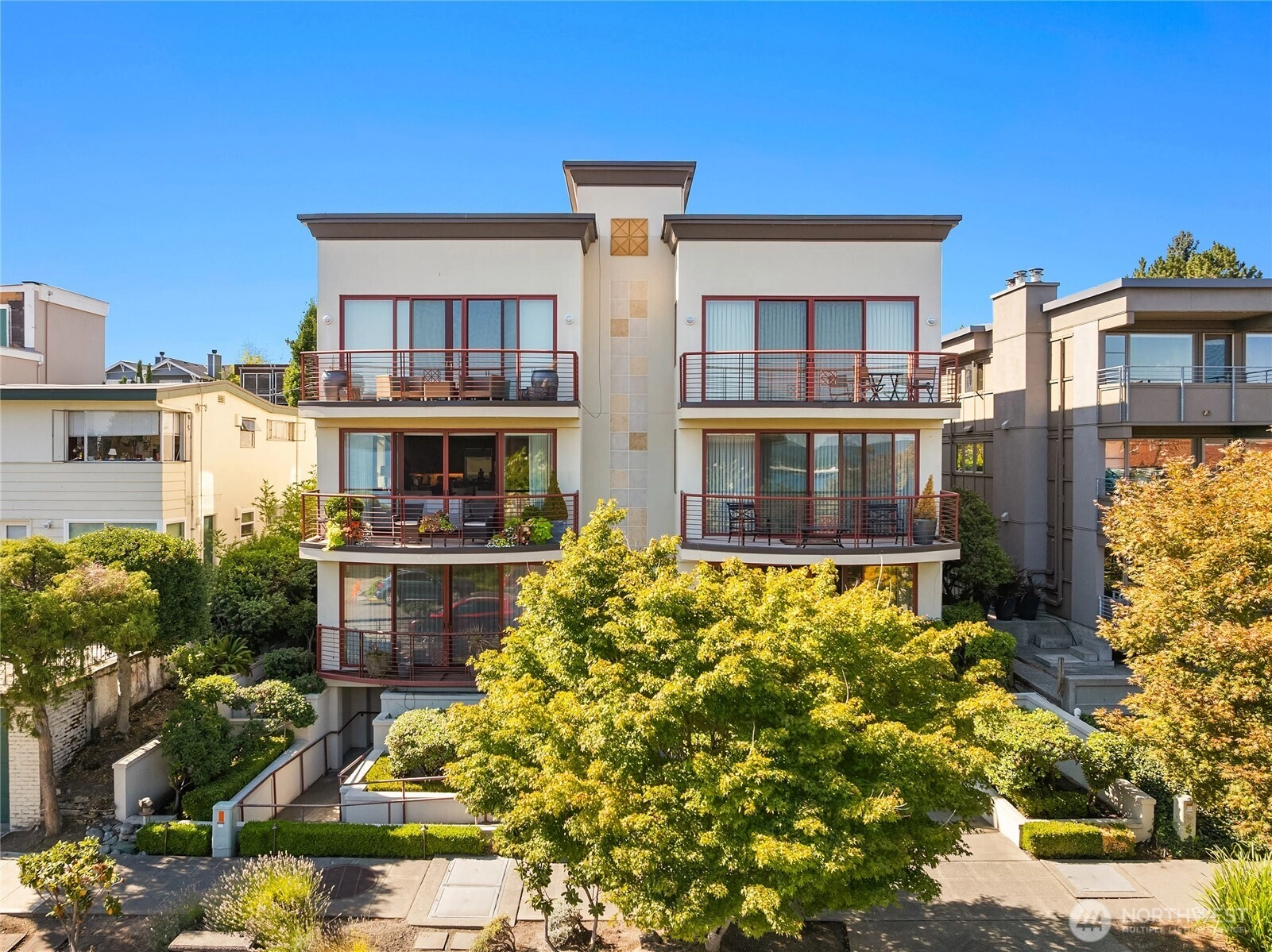 A Madison Park pedigree in a boutique 6-unit building. Custom built-ins, granite, Viking appliances, 2 gas fireplaces, lush primary suite with adjoining den, second bedroom, bathroom & laundry. Choosing this smartly dressed residence is a natural step for those looking for an easy-living lock & leave lifestyle. One elegant level of 1400sf, high ceilings deep mouldings, secure parking (2), pet friendly & the piece de resistance: a very private walk-out courtyard in the back for your outdoor entertaining & peony cultivating! Just steps to the park, the lake, all the tantilizing boutiques, coffee shops, salons & watering holes in the village. Freshly painted/new wool carpet! In a nutshell? A turn-key pied~a~terre for discriminating buyers.