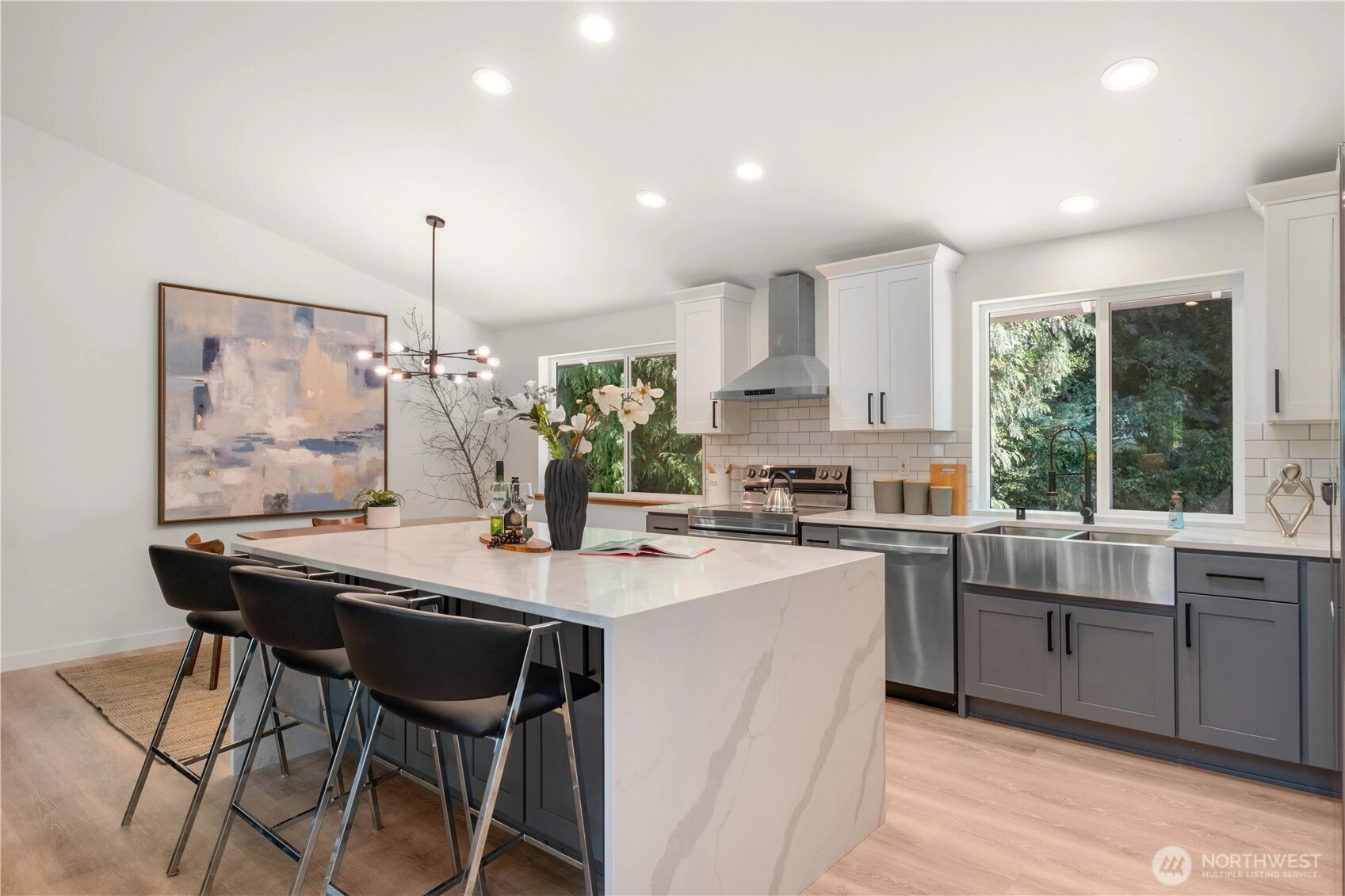 Stunning fully updated tri-level in Martha Lake! Your 3BR home features a showpiece kitchen with an oversized quartz waterfall island and premium stainless steel appliances—perfect for your gatherings and every day comfort. Stylish baths with matching quartz finishes add a touch of luxury throughout. Enjoy bright, open living spaces, new windows, flooring, paint, and garage doors. The lower level includes a spacious rec room, bath, and flexible bonus room. Conveniently located near Mill Creek Town Center, top schools, and commuter routes. A modern home designed for today’s lifestyle.