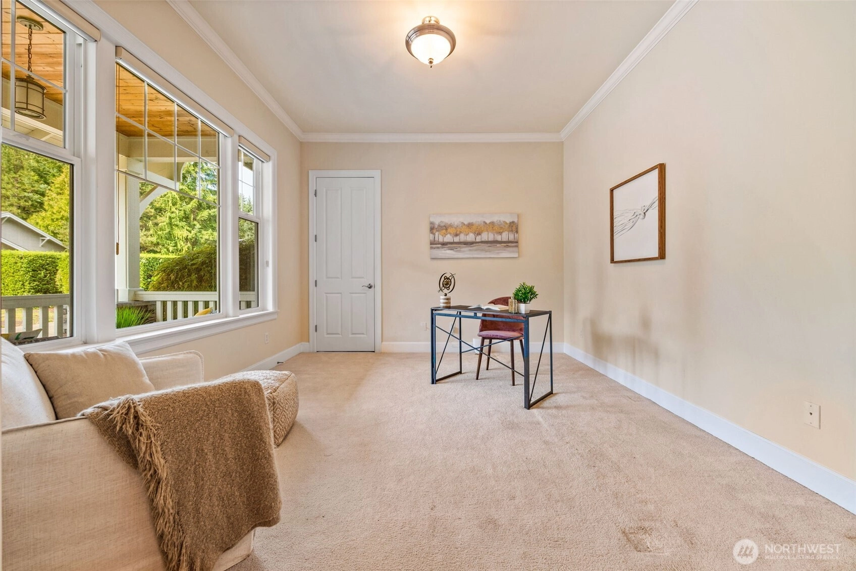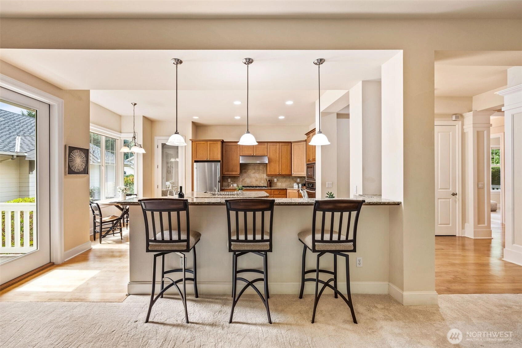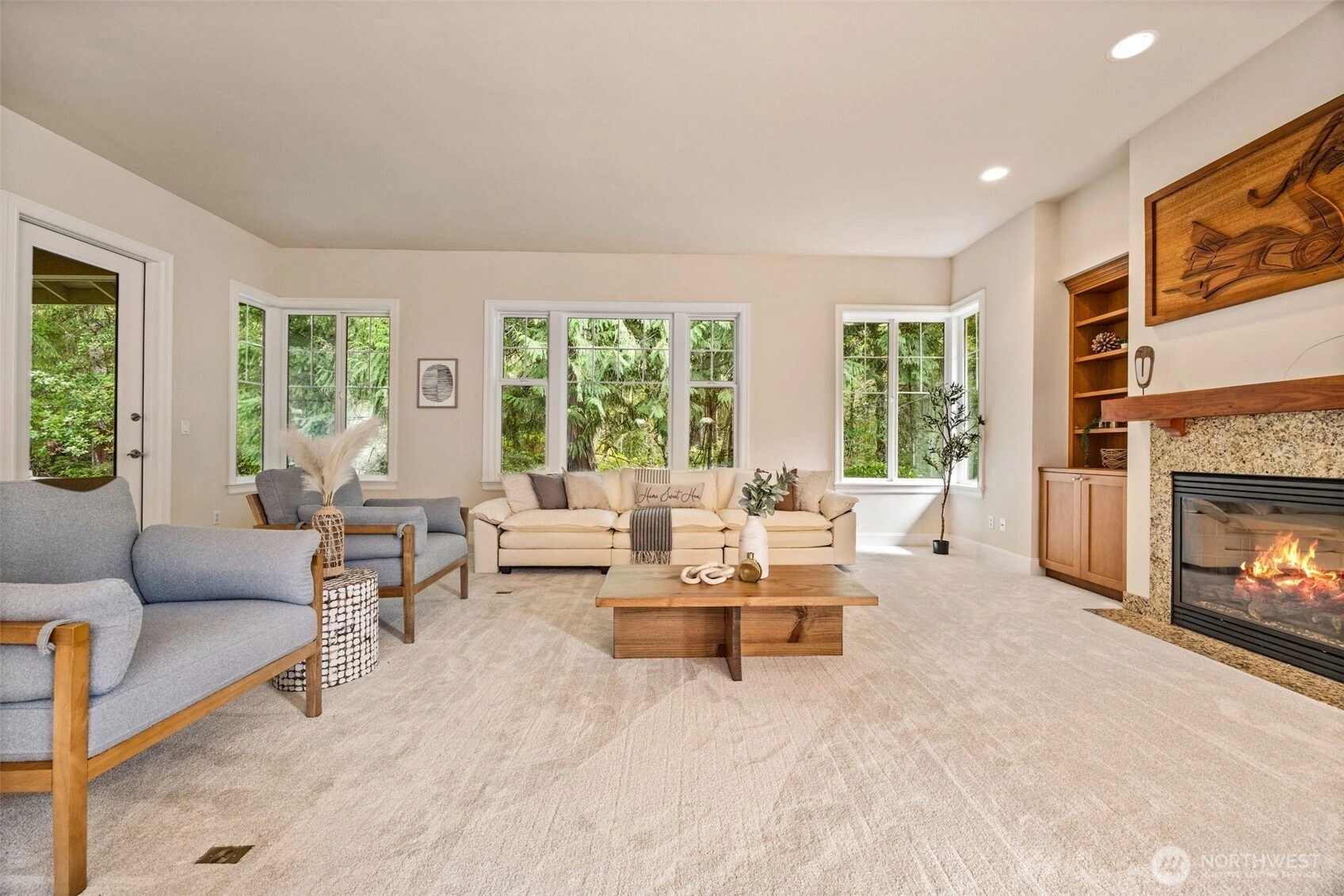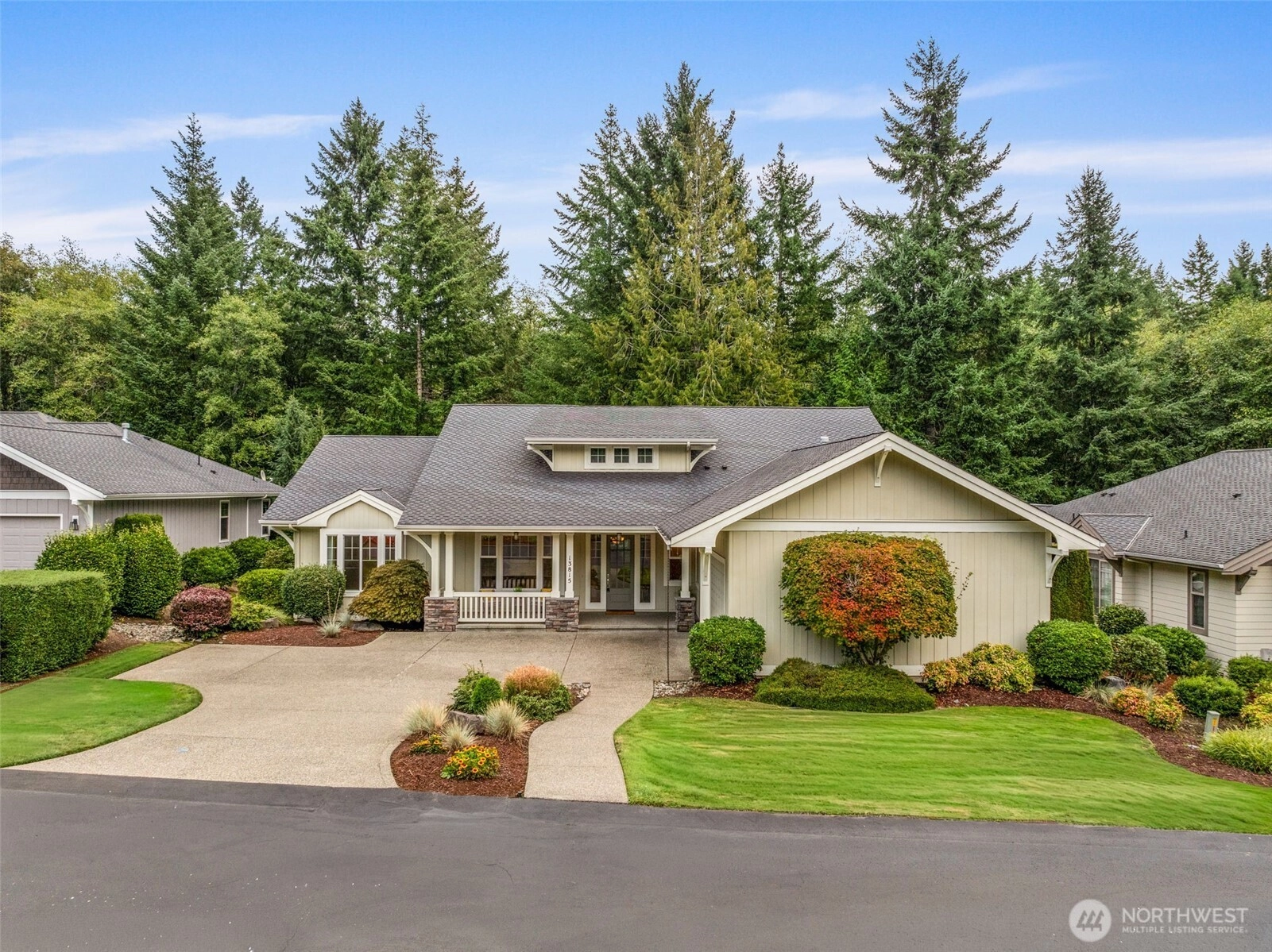 Your rare opportunity to own a home in desirable Forest Village Canterwood! "The Belfair" features flowing single level open floor plan living. Exquisite craftsman style home features 10' vaulted ceilings, gourmet kitchen, large laundry room, spacious living and dining rooms, custom flooring, cabinets and new carpeting! Located on a quiet, private street with park like landscaping and a picturesque green belt in back. Enjoy our friendly community with walkable, bikeable streets, community events, just minutes from the hospital, freeway, major shopping, and downtown Gig Harbor! Canterwood Country Club membership includes pool, pickleball, tennis, golf, restaurant. This is a separate membership which is not required to live in Canterwood.