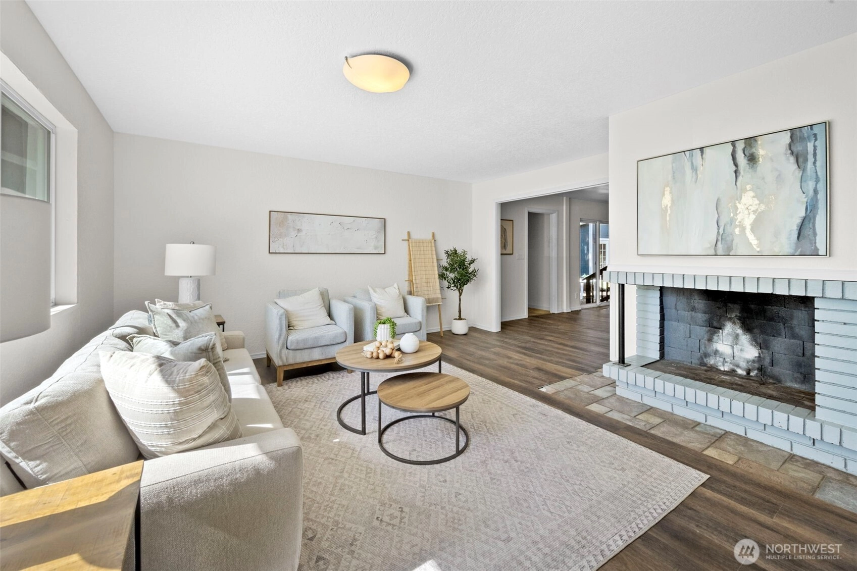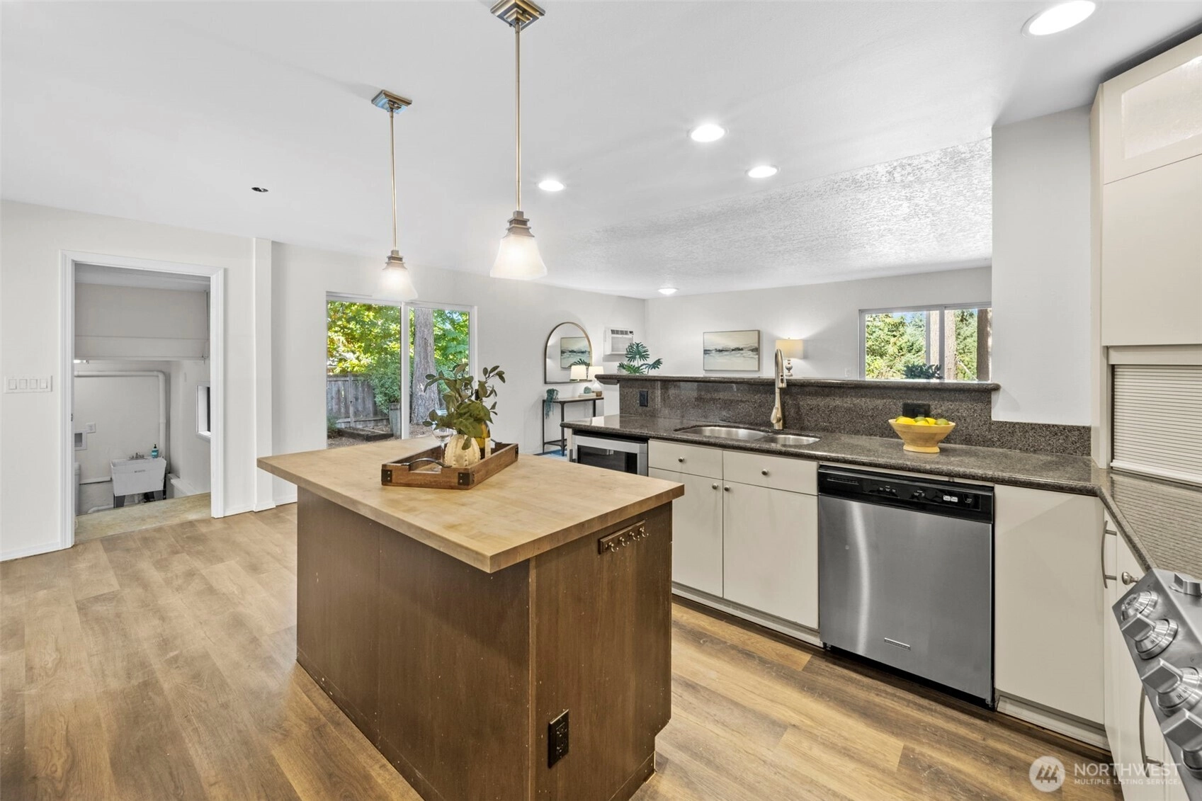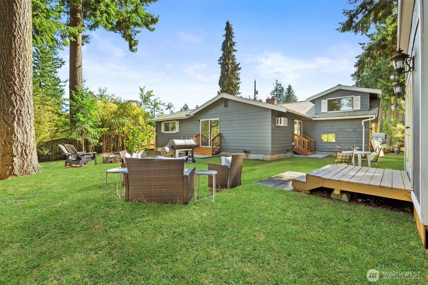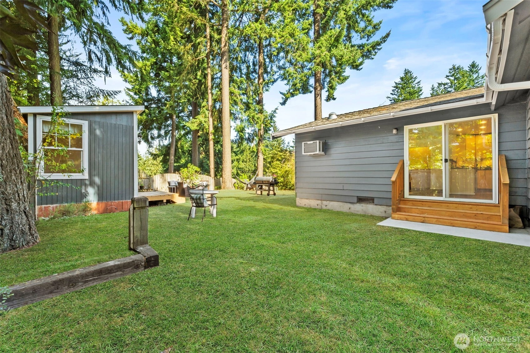 Picture yourself relaxing by the fireplace or near the air conditioner, savoring an open space concept. Nestled in pine trees that let the sun shine through, creating serene, comfortable living. Step outside to an appealing, spacious back yard for entertaining, lounging and hobbies. This 5 bedroom home includes a family room, an upstairs bedroom and a shed for not just tools but a nurturing space for your favorite whims. The kitchen has lots of cupboard and drawer space plus under cabinet lighting. With a one car garage plus extra room for off road parking. Close to Richmond Beach, shopping and light rail transit. Updates include new flooring, paint, and bath remodels. Embrace Shoreline living at its best!