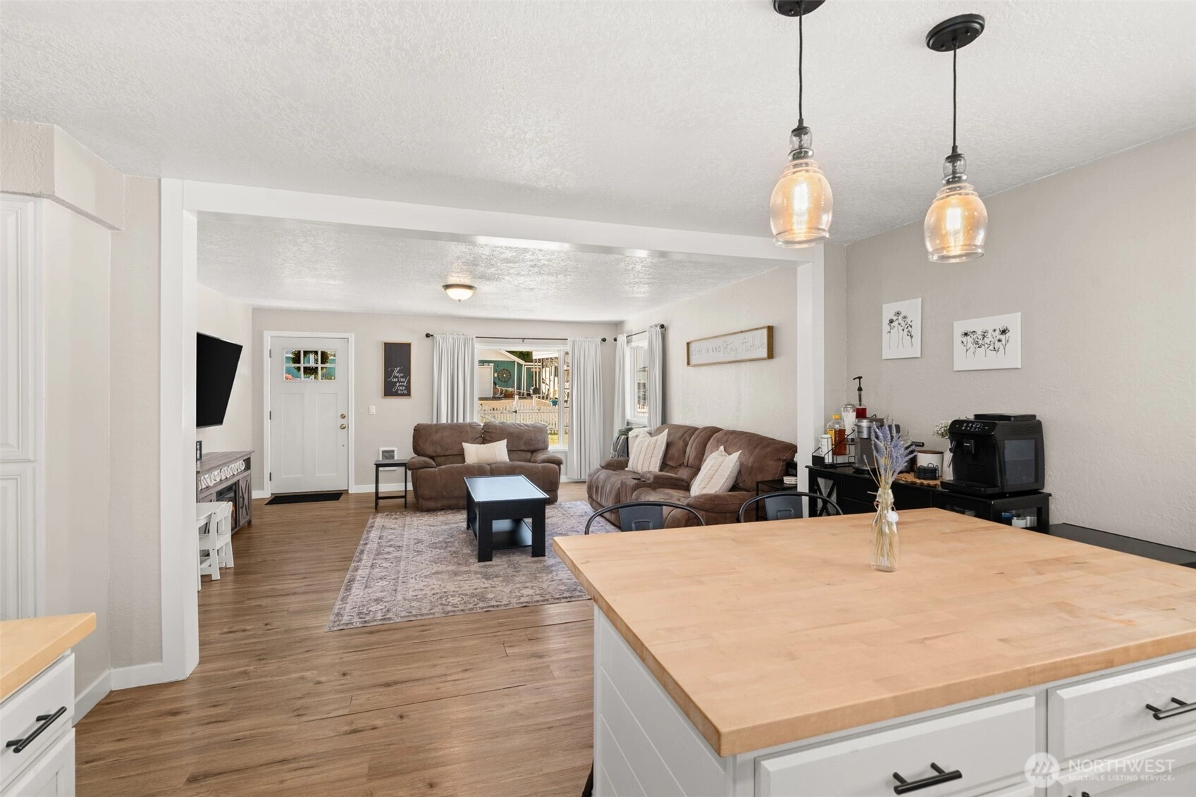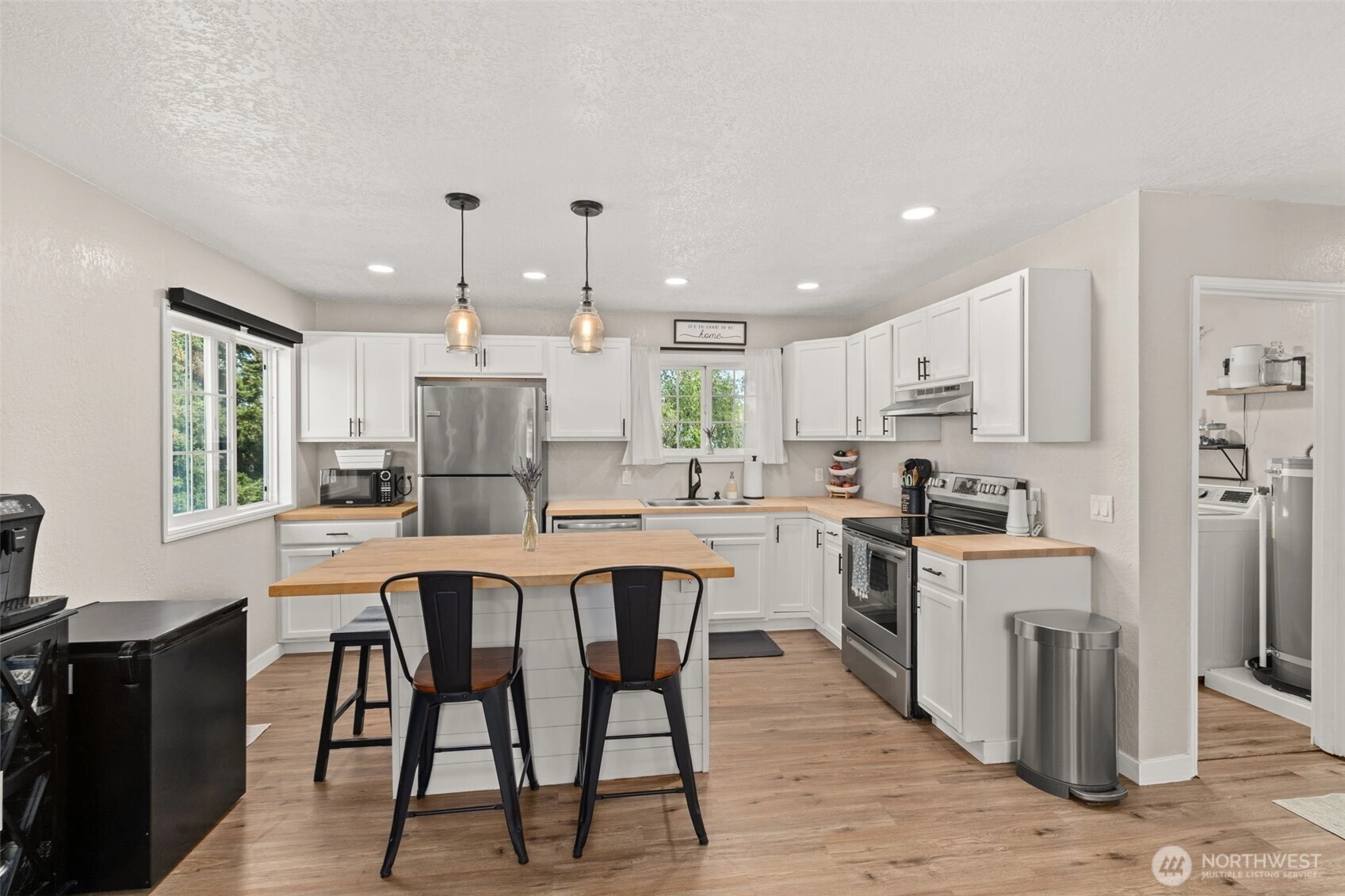 Charming one-story home on a spacious .32-acre lot outside city limits! This property welcomes you with a fenced front yard and flows into an open-concept living space filled with natural light. The kitchen is a true highlight with a center island and butcher block countertops, perfect for cooking and gathering. Enjoy the convenience of single-level living, a detached garage for parking or storage, and a large backyard offering endless opportunities for entertaining, gardening, or play. With its thoughtful layout and inviting spaces inside and out, this home blends comfort and functionality in a peaceful neighborhood setting—ready to be your next chapter!