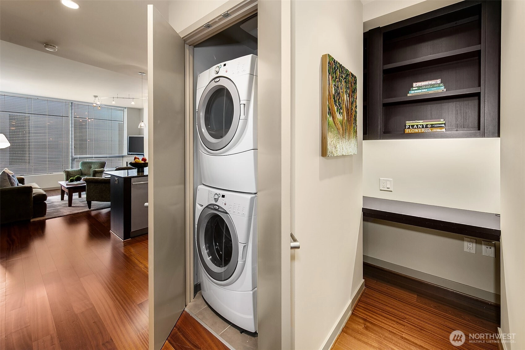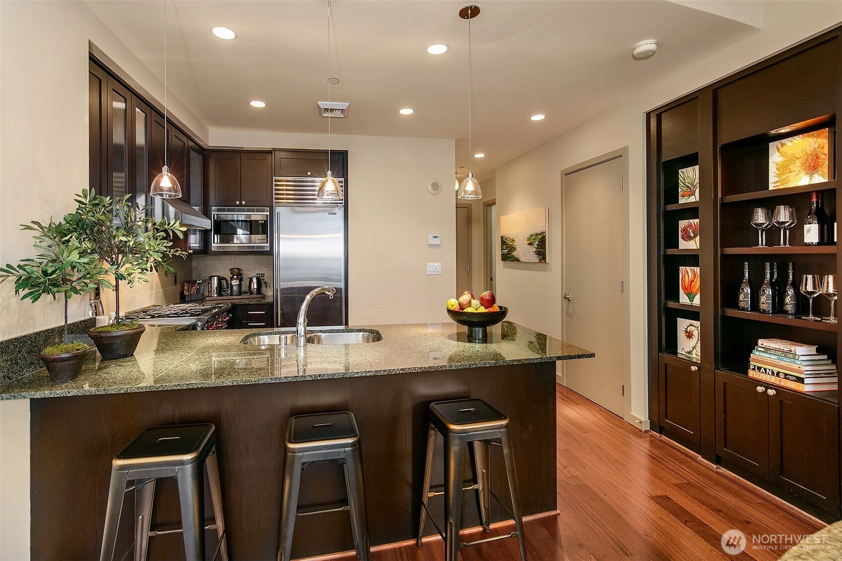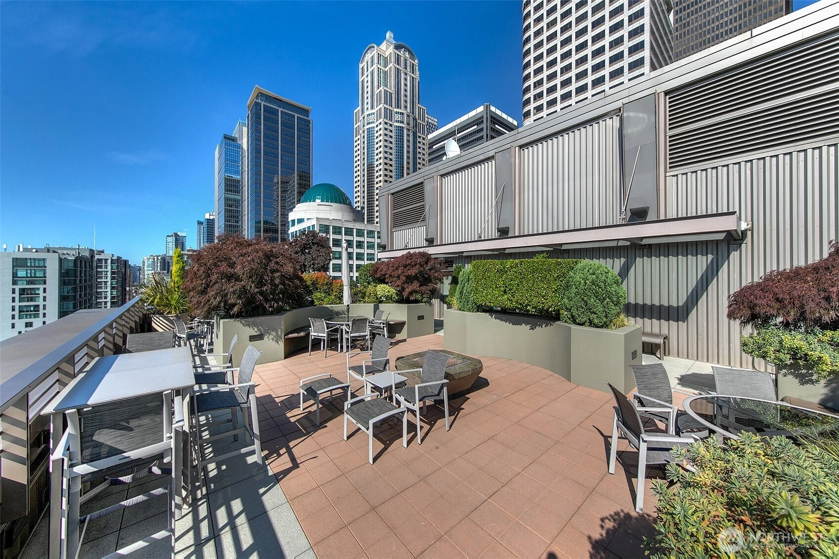 Madison Tower; Live the downtown hotel lifestyle from this perfect location on 1st and Madison. With the city alive and the new Waterfront District nearby, the time is now to choose a home -or 2nd home- in Seattle. Walking distance to the stadiums, Pike Place Market, and all of the arts and culture in the city core, plus easy access in and out to I-5, I-90, and the ferries. A condominium above a hotel, Madison Tower enjoys an intimate community of owners plus 5-star Hotel 1000 amenities. Great privacy, high quality finishes with a lux cabinet/kitchen package, large living and bedroom spaces, a primary suite and walk-in closet, plus a 1/2 bath for guests and a den with lots of storage to maximize usability.