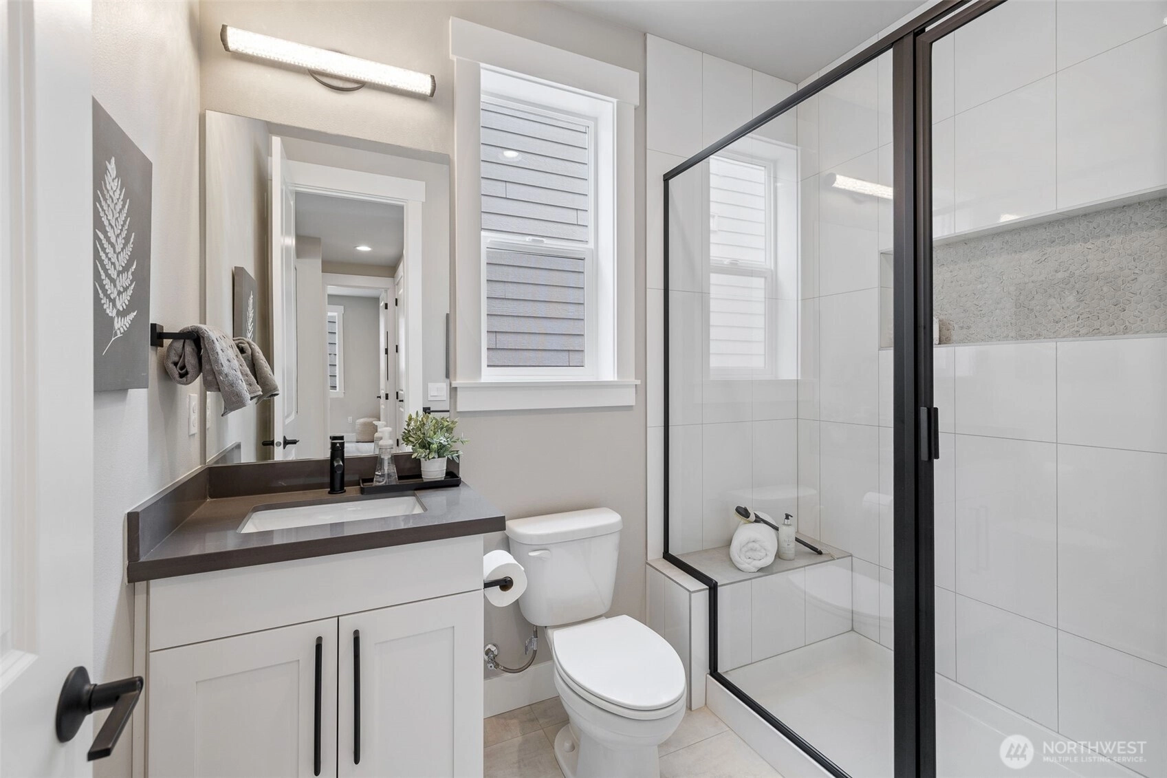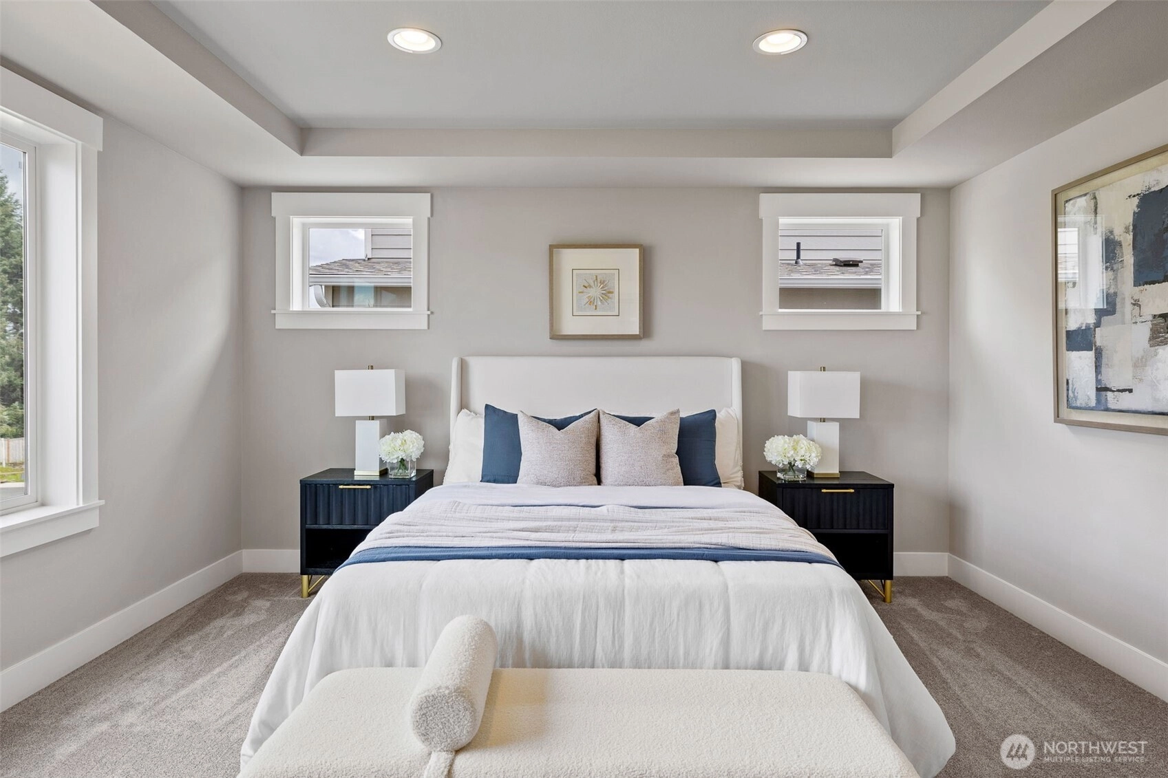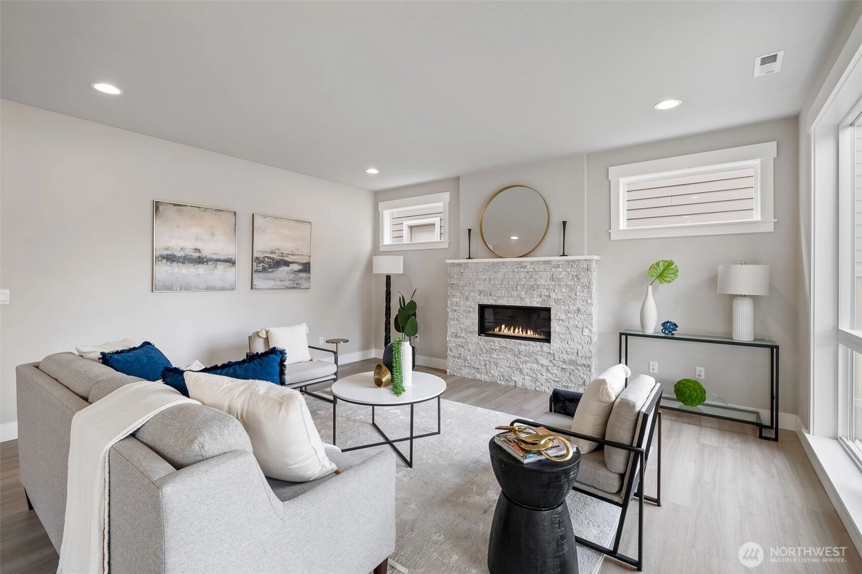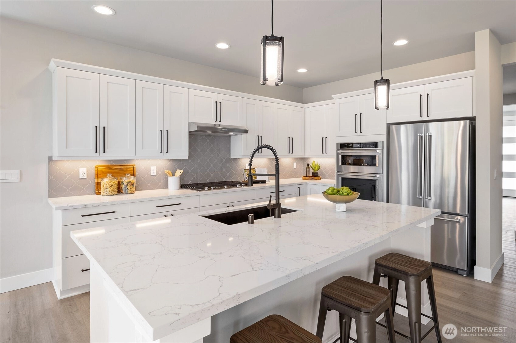 Welcome to Harvest Trails! The Claremont, lot 5, offers a spacious 2,501 sq ft floorplan w/4 beds & 2.75 baths. Main floor features a bedroom, 3/4 bathroom, open kitchen, dining room & great room w/gas fireplace. Enjoy a covered patio w/outdoor fireplace, full landscaping & fully fenced backyard. The second floor features a bonus room, bedrooms, laundry and spacious primary bedroom with en suite bathroom and walk-in closet. Quality finishes include white cabinetry, stainless steel appliances, quartz counters, heat pump (providing A/C), Deako smart switches, garage door opener with remote & more! Site Registration policy: Buyers must register Broker on 1st visit & bring agent on 2nd visit. Pictures are of same floorplan in another community.