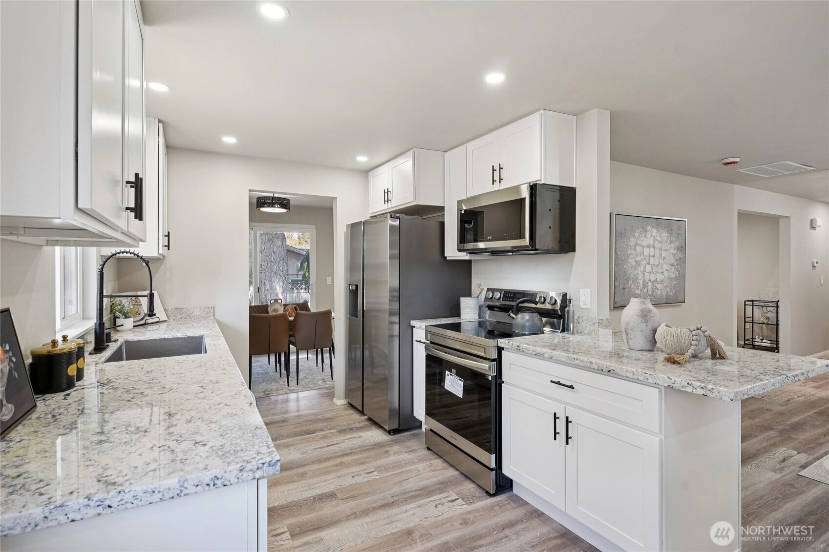 Back on MKT-Buyer financing failed. Beautifully remodeled 4 bedroom Twin Lakes rambler on expansive corner lot w/lush mature landscaping. All new flooring & lighting, kitchen & bathrooms with new cabinetry & granite counters and of course, new SS appliances. Open & inviting layout blends modern finishes w/timeless comfort, offering plenty of space for living & entertaining. Oversize living room w/gorgeous wall fireplace & direct access to fully fenced back yard & patio. Primary br w/ensuite & bathtub, main bath w/walk-in shower. Enjoy the peace of a well-established neighborhood with the benefits of a fully updated home—Move in ready. Every detail evokes the feel of a brand-new luxury home, blending sophistication & comfort throughout.