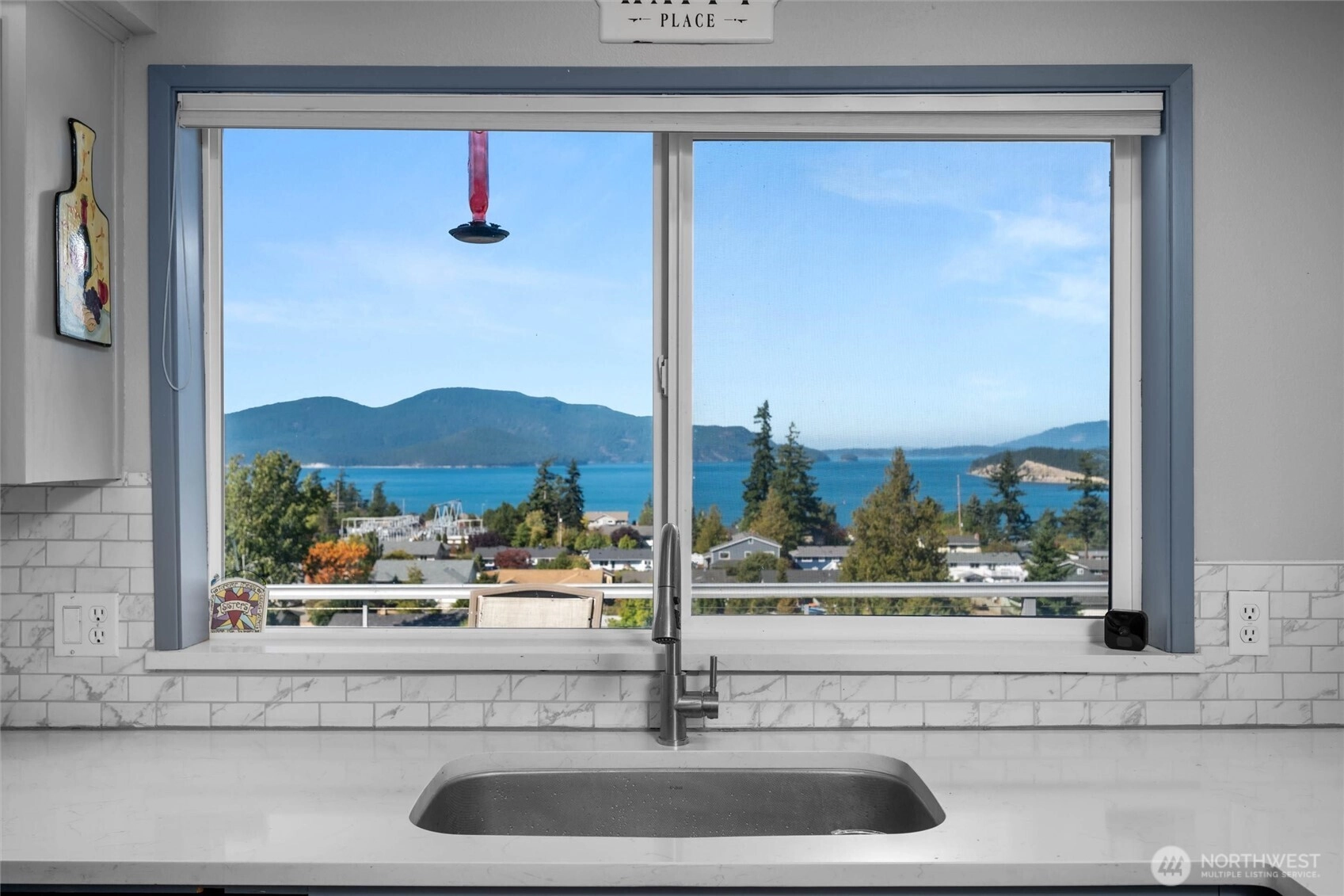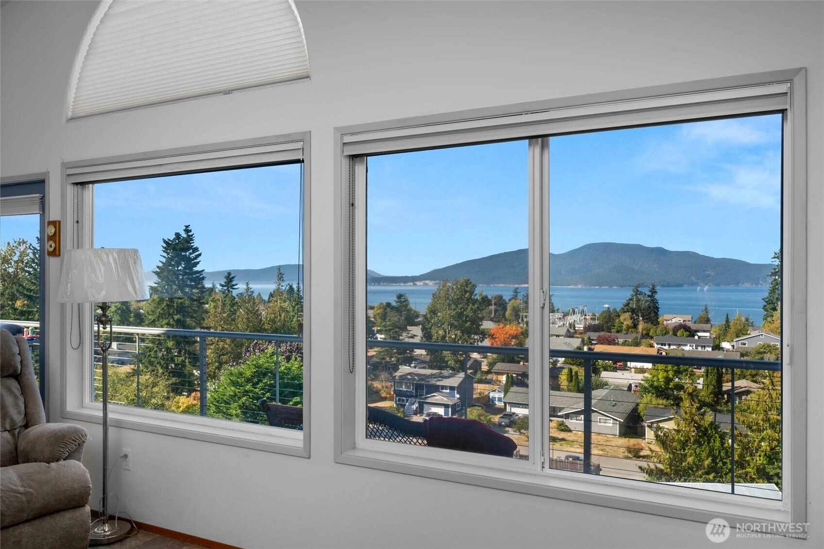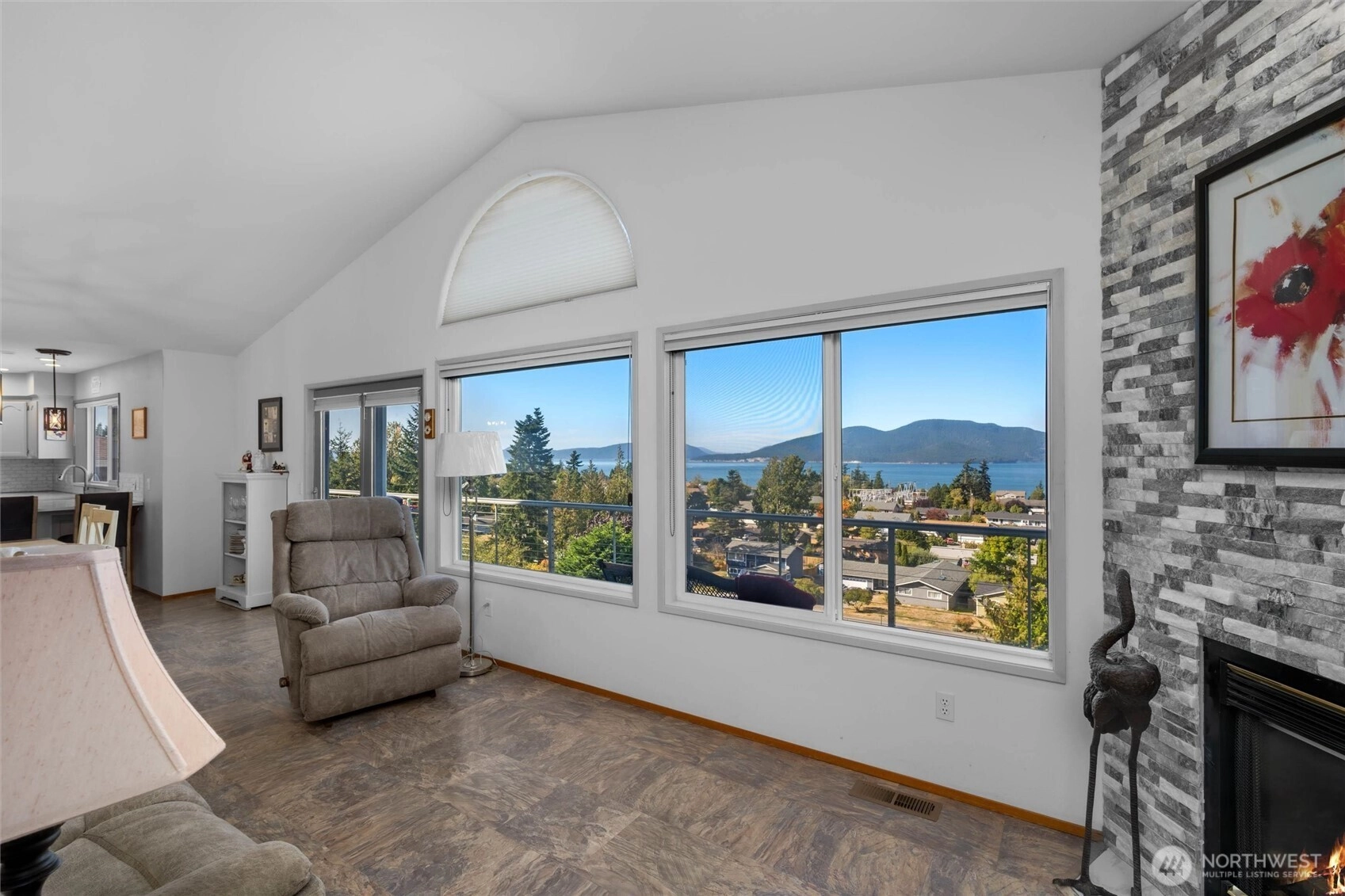 Enjoy stunning, unobstructed water and island views from both levels of this incredible 4 BR home in the lower Rockridge area. The expansive decks on both levels offer the opportunity to take in morning light and spectacular sunsets. Main level living with fully refreshed kitchen, quartz counters, dining & living room w/stacked stone fireplace surround. Primary suite w/jetted tub embraces all the views! Lower level 2 BR apartment w/kitchenette & separate entry allow for multigenerational options. Metal roof with energy efficient solar panels, leaf guard gutters, new heat pump, and AC. Newer cement planked siding & fresh paint plus RV parking, all on large lot. Easy access to ACFL trails and Little Cranberry Lake!