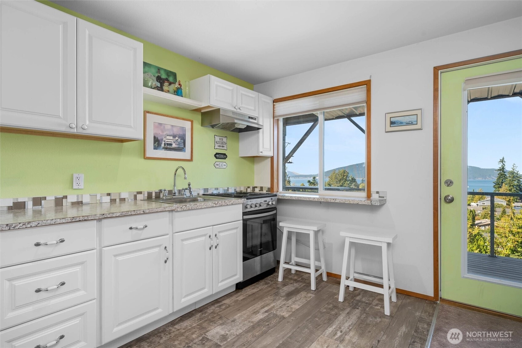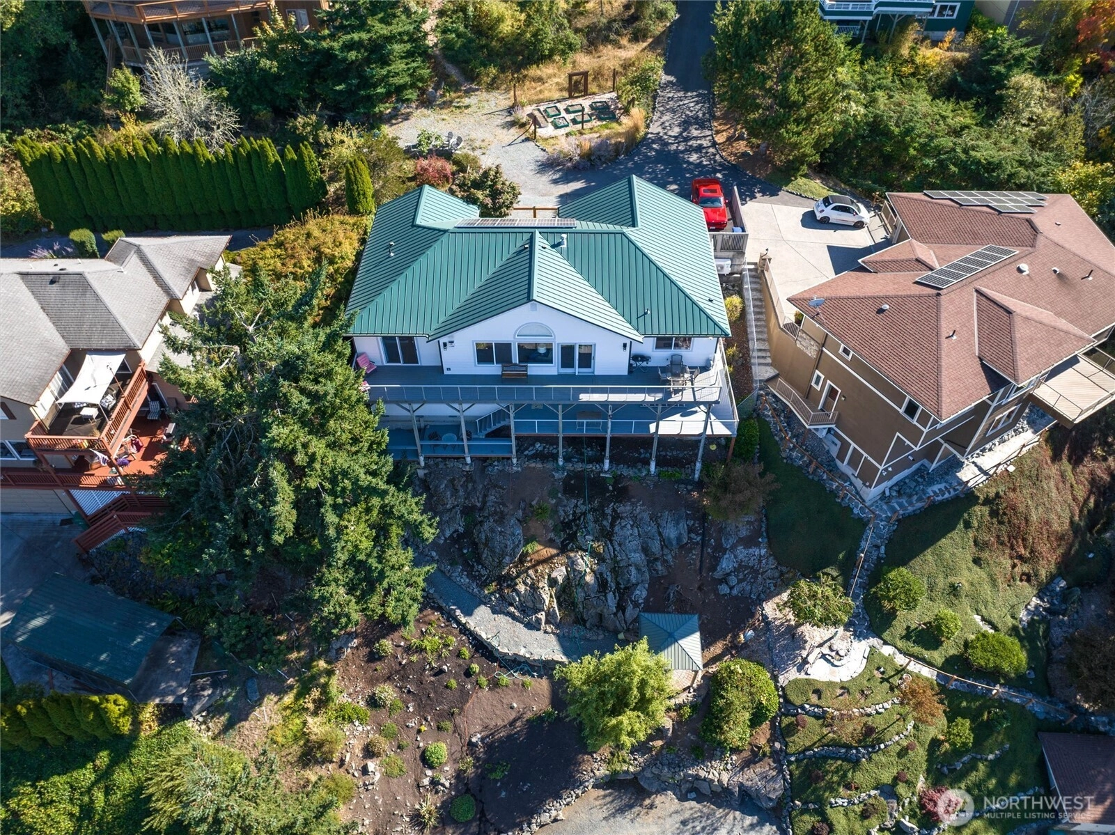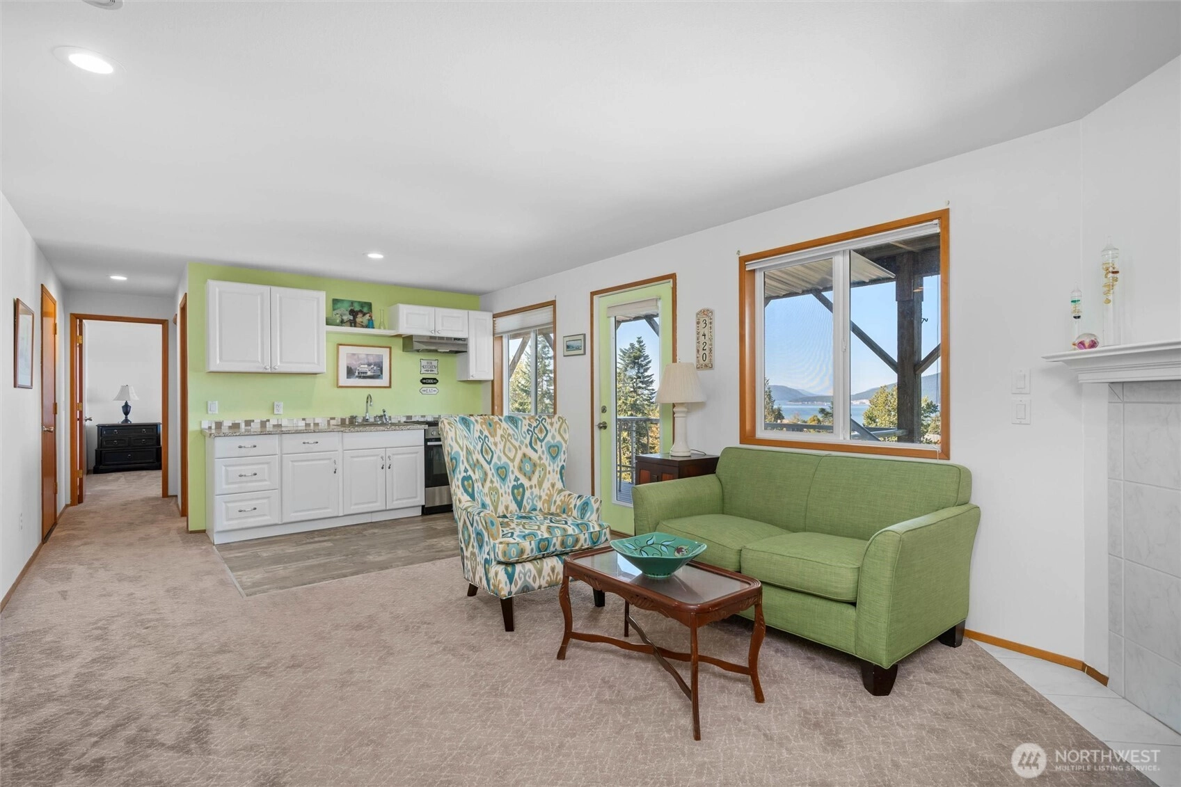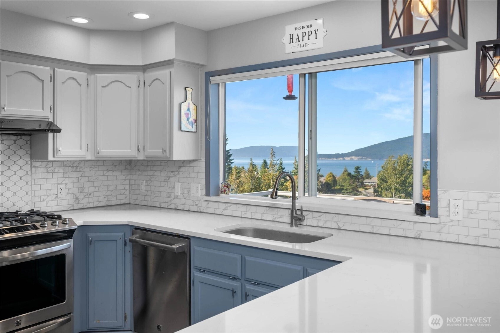Enjoy stunning, unobstructed water and island views from both levels of this incredible 4 BR home in the lower Rockridge area. The expansive decks on both levels offer the opportunity to take in morning light and spectacular sunsets. Main level living with fully refreshed kitchen, quartz counters, dining & living room w/stacked stone fireplace surround. Primary suite w/jetted tub embraces all the views! Lower level 2 BR apartment w/kitchenette & separate entry allow for multigenerational options. Metal roof with energy efficient solar panels, leaf guard gutters, new heat pump, and AC. Newer cement planked siding & fresh paint plus RV parking, all on large lot. Easy access to ACFL trails and Little Cranberry Lake!