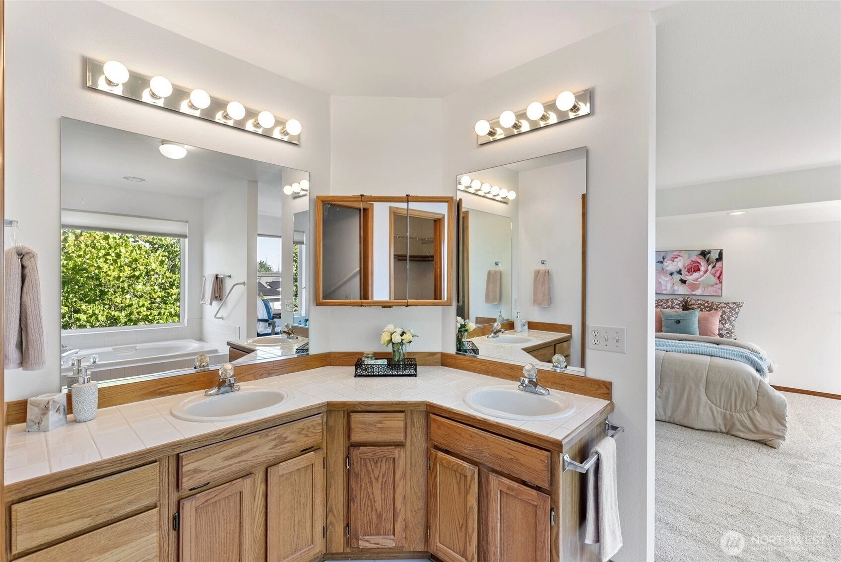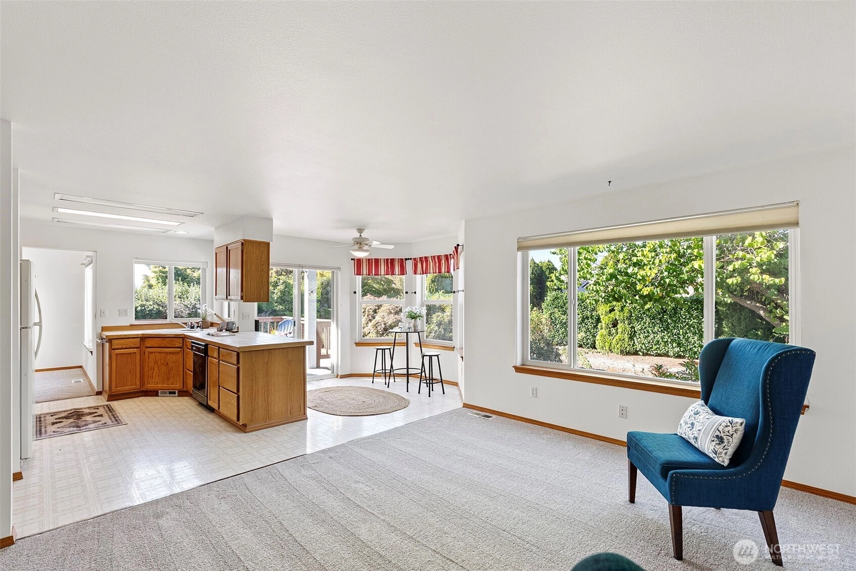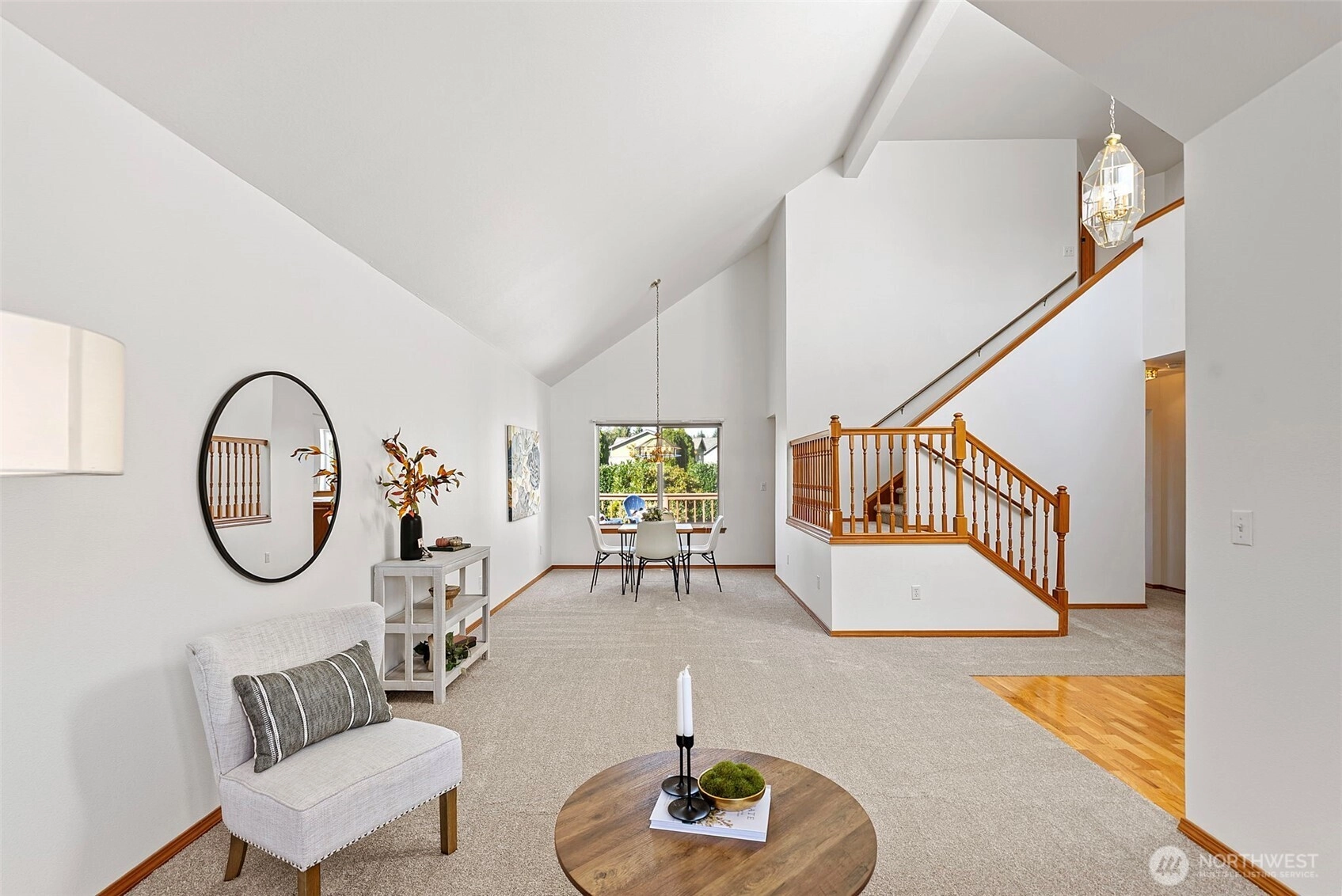 Price Improvement! Just the home you have been waiting for! This 3 bed, 2.5 bath home on a large lot with Olympic Mountain views is ready for you! With 2-story ceilings, a grand staircase, huge windows and tons of natural light, you'll feel like royalty. Fresh paint and carpet throughout. Formal sitting room and dining room off the open kitchen ready for you to put your special touches on, eat-in kitchen with sliders to the back deck and HUGE yard, and a warm gas fireplace rounds out the living room for the coming colder months. Upstairs is a large primary suite, walk-in closets, and the views for days! 2 bedrooms with jack-and-jill bathroom between the two completes the 2nd story. Perched above Poulsbo, shopping, dining and more. Come see!