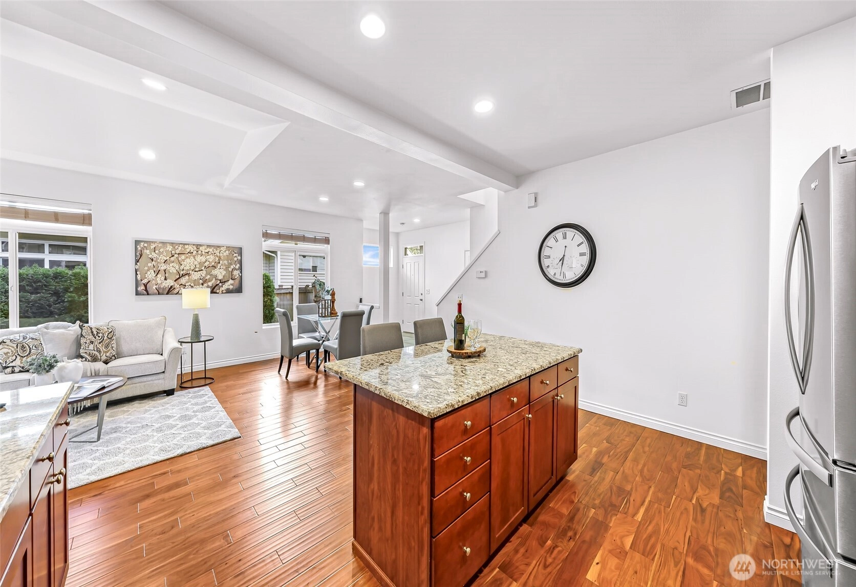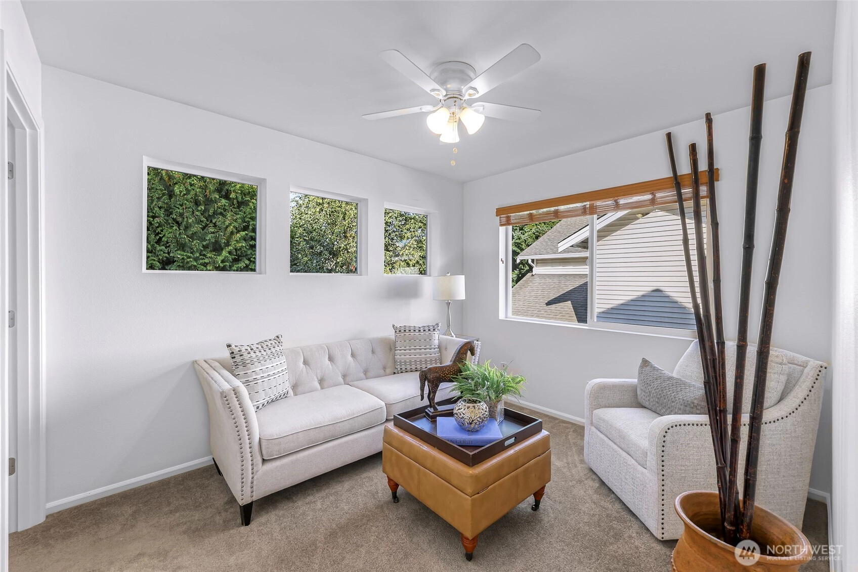 Charming & move-in ready, this attached 3 bed/2.5 bath home + a loft space for work, play, or hobbies. The sun-filled main floor has an open layout w/ a chef's kitchen that features slab granite countertops, modern finishes, stainless steel appliances & an easy flow to the living room with a cozy gas fireplace. Easy access to your low-maintenance, fully fenced back yard—perfect for relaxing or entertaining without the upkeep. Upstairs 3 spacious bedrooms, including the primary with a 5-piece en suite & walk in closet. Attached 2-car garage adds convenience & ample storage space. Located in the desirable Highland Court community with quick access to Hwy 524, shopping, dining, & more, this home is the perfect blend of comfort & practicality.