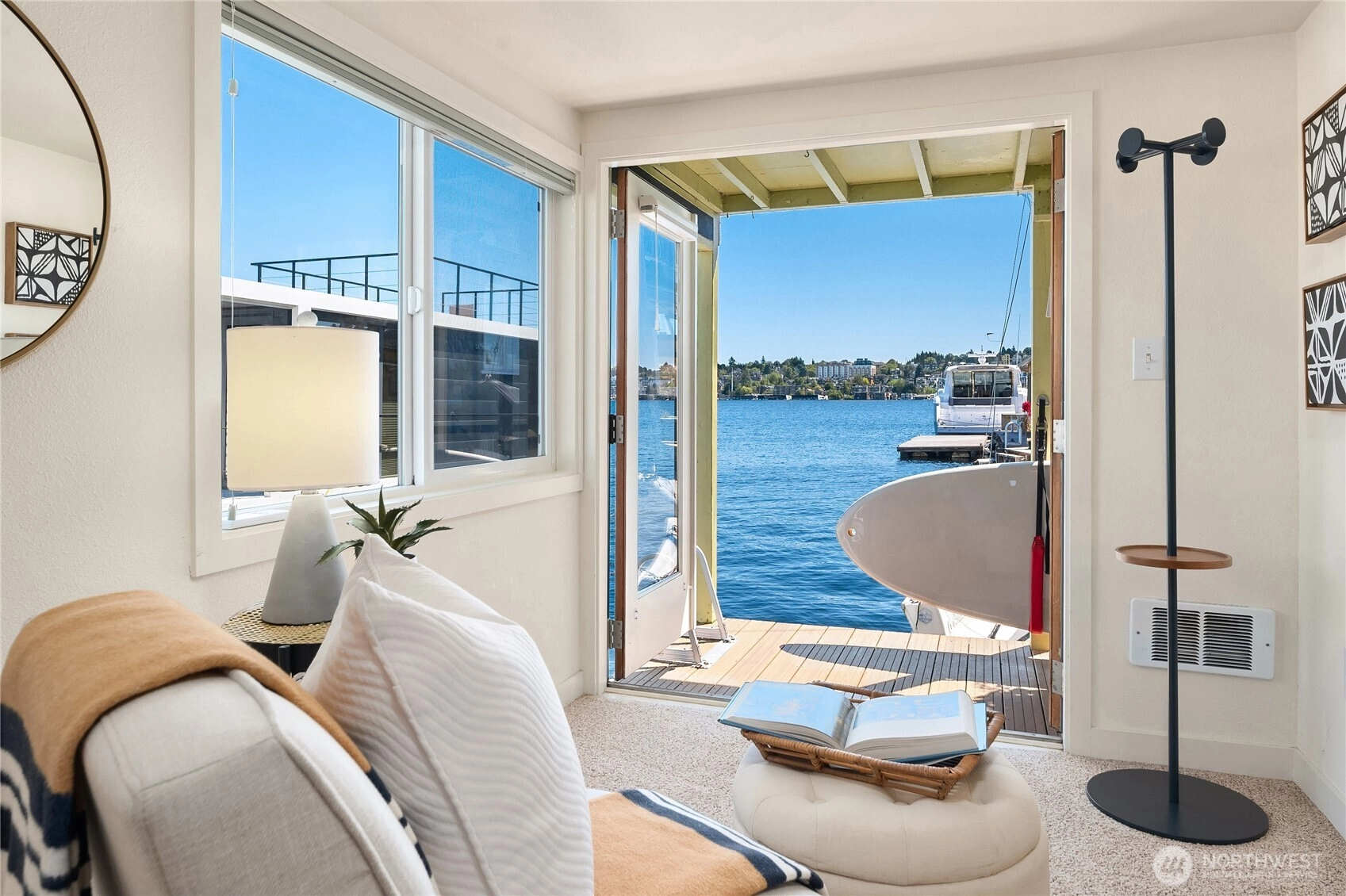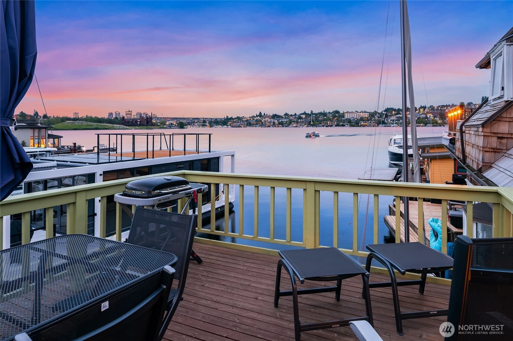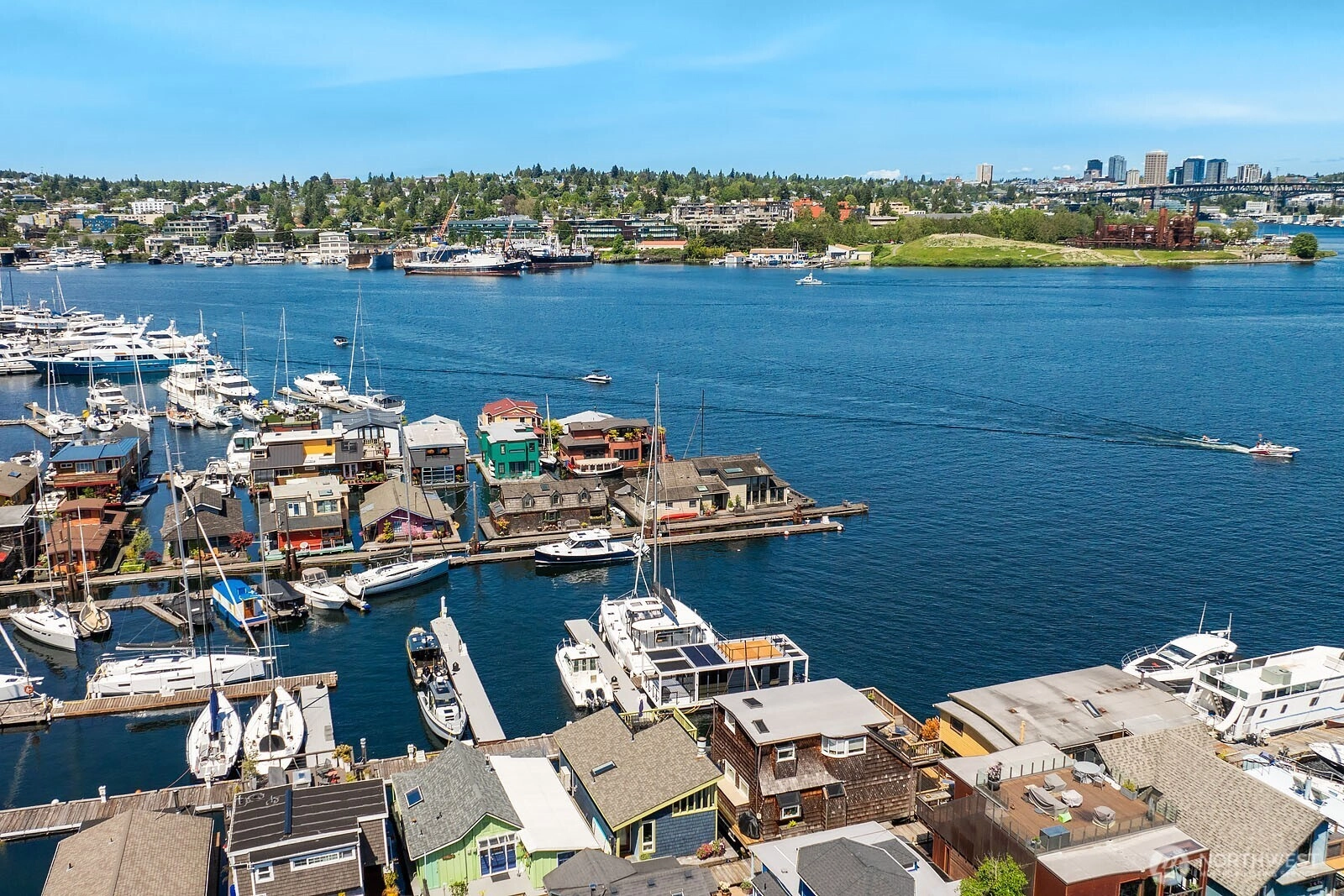 Beautiful Lake Union floating home with expansive views including Gas Works, Montlake cut and Eastlake. Wonderful spot to entertain! Fabulous upper deck for star gazing and Christmas ships viewing. Great room has outstanding natural light and high ceilings. Chef's kitchen, SubZero fridge, custom cabinets. Romantic primary with french doors opening to the lake. Mini-splits a/c keep it cool in the summer. Enjoy the Minutes to the restaurants, tech and UW. Life on the water is the best! Located on a gated dock with big views and that is very quiet and serene. Welcoming sense of community, Pet friendly, Furniture, appliances, Kitchen gear, deck furniture and paddleboards stay. Kenmore Air on Lake Union has float planes to the San Juans.