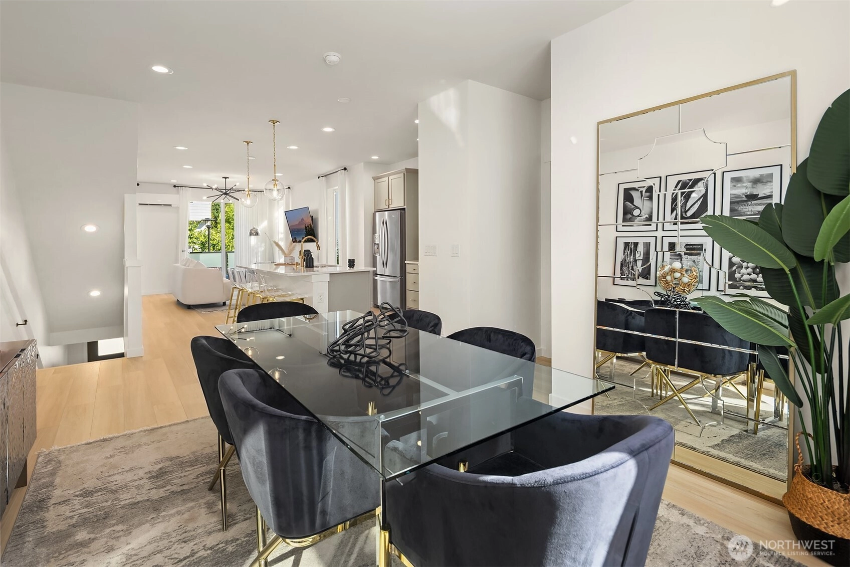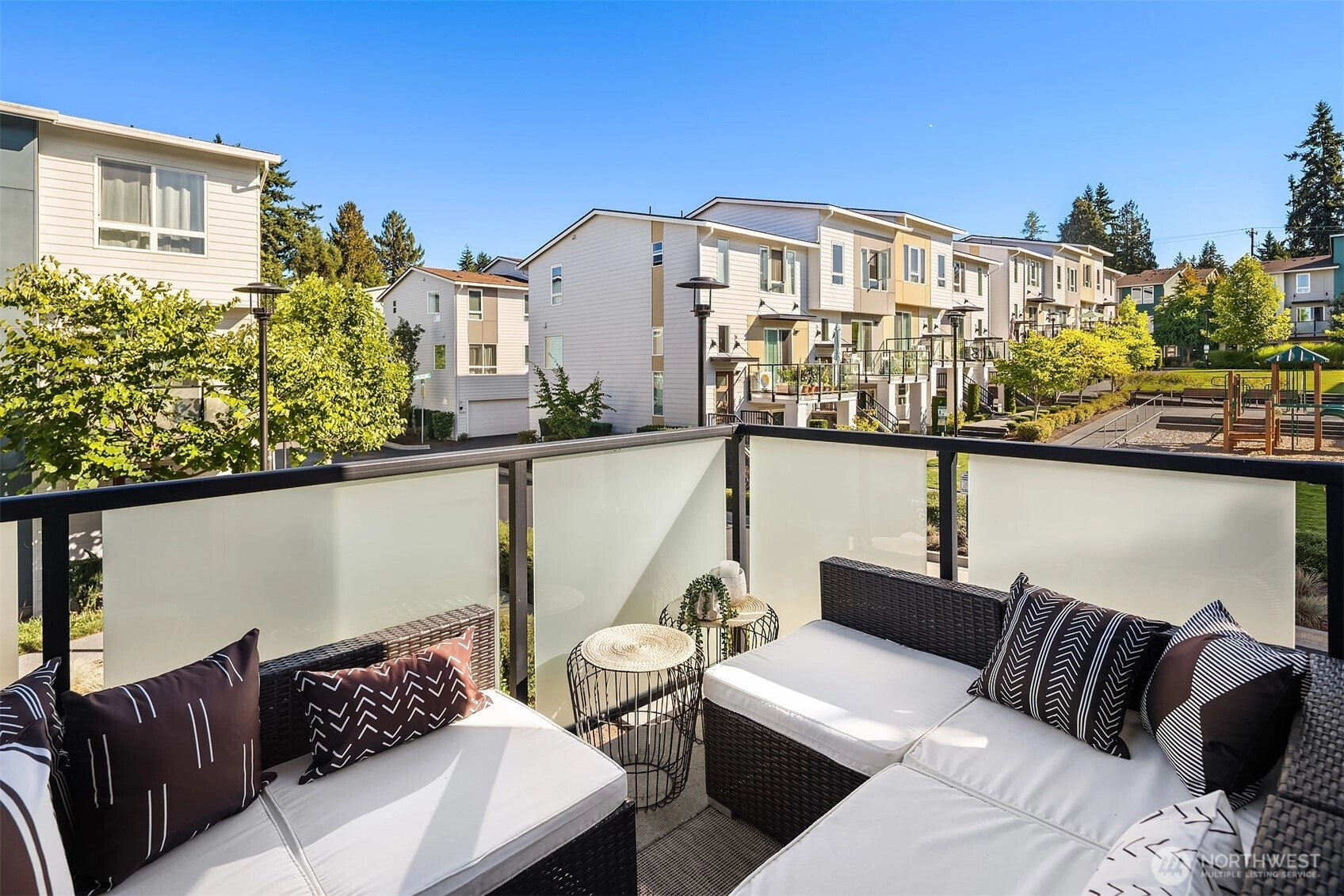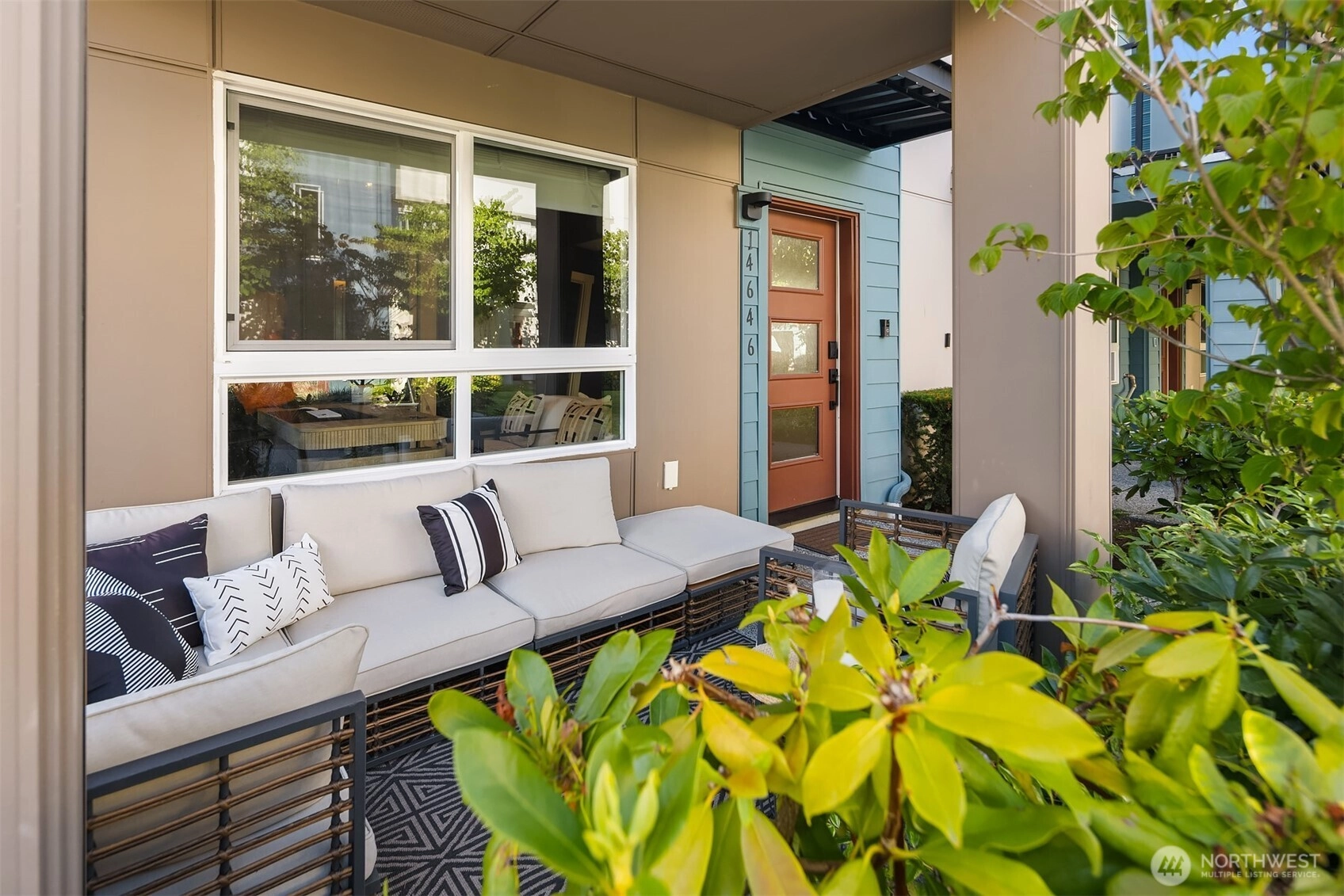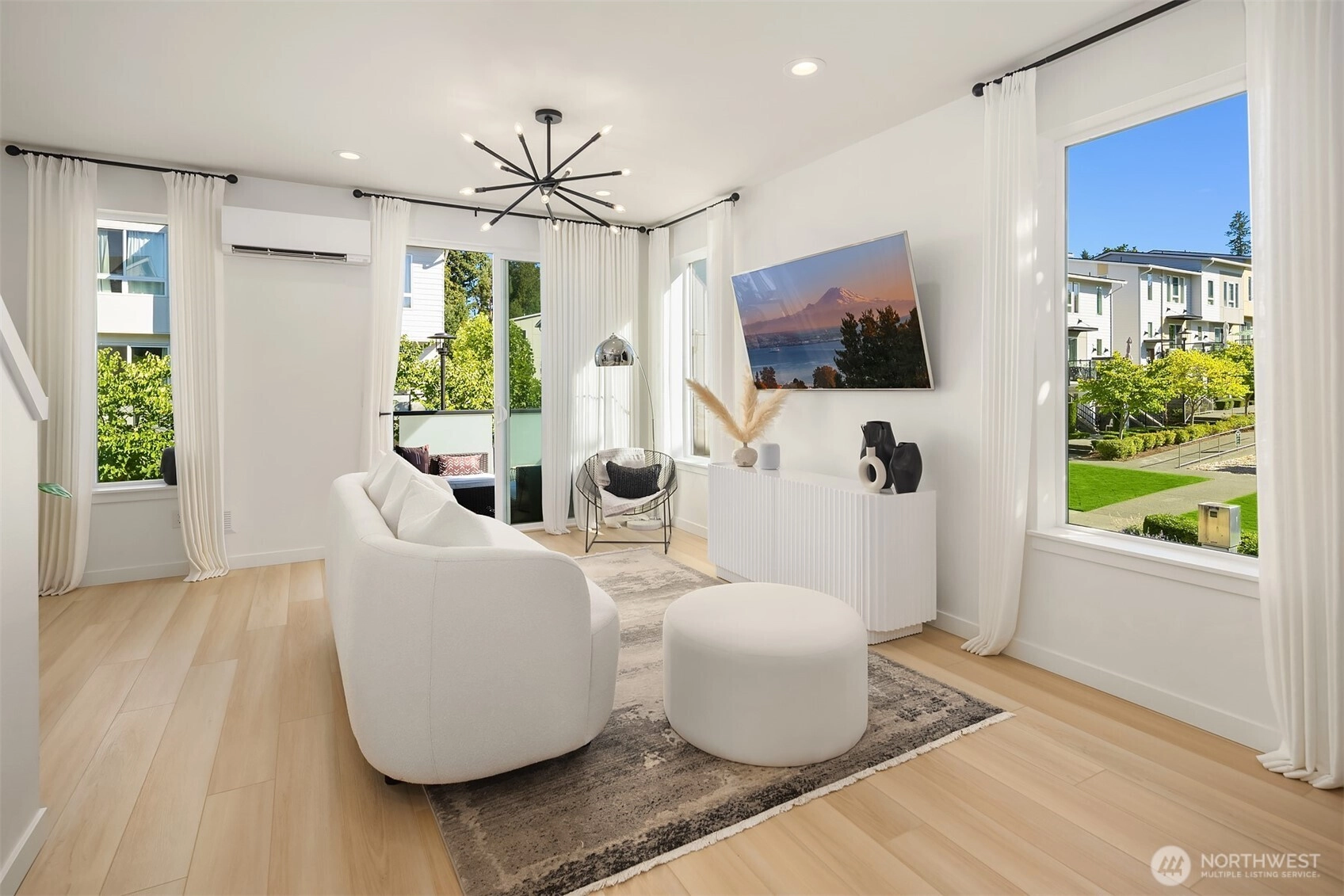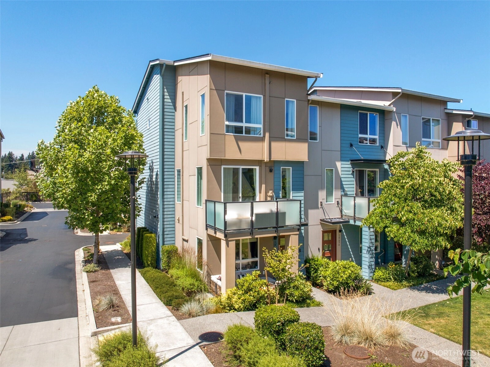 Stunningly renovated, sun-filled end-unit residence w/views of community park in desirable 12 Degrees North. High-end upgrades & designer finishes throughout. Over $50K in recent upgrades include central heating & cooling on upper level, along w/mini-splits on the main & lower levels, white oak laminate flooring, stylish hardware & modern lighting fixtures, refinished cabinetry, remodeled powder room, custom closet built-ins, glass/iron barn door & fresh paint. Open concept layout & thoughtful design w/each bedroom equipped w/own en-suite bath & a power room on the main. Enjoy private balcony & patio, 2-car garage & ample guest parking. Walkable to Burke-Gilman Trail, minutes to shopping & dining, & major commuting routes. No rental cap!