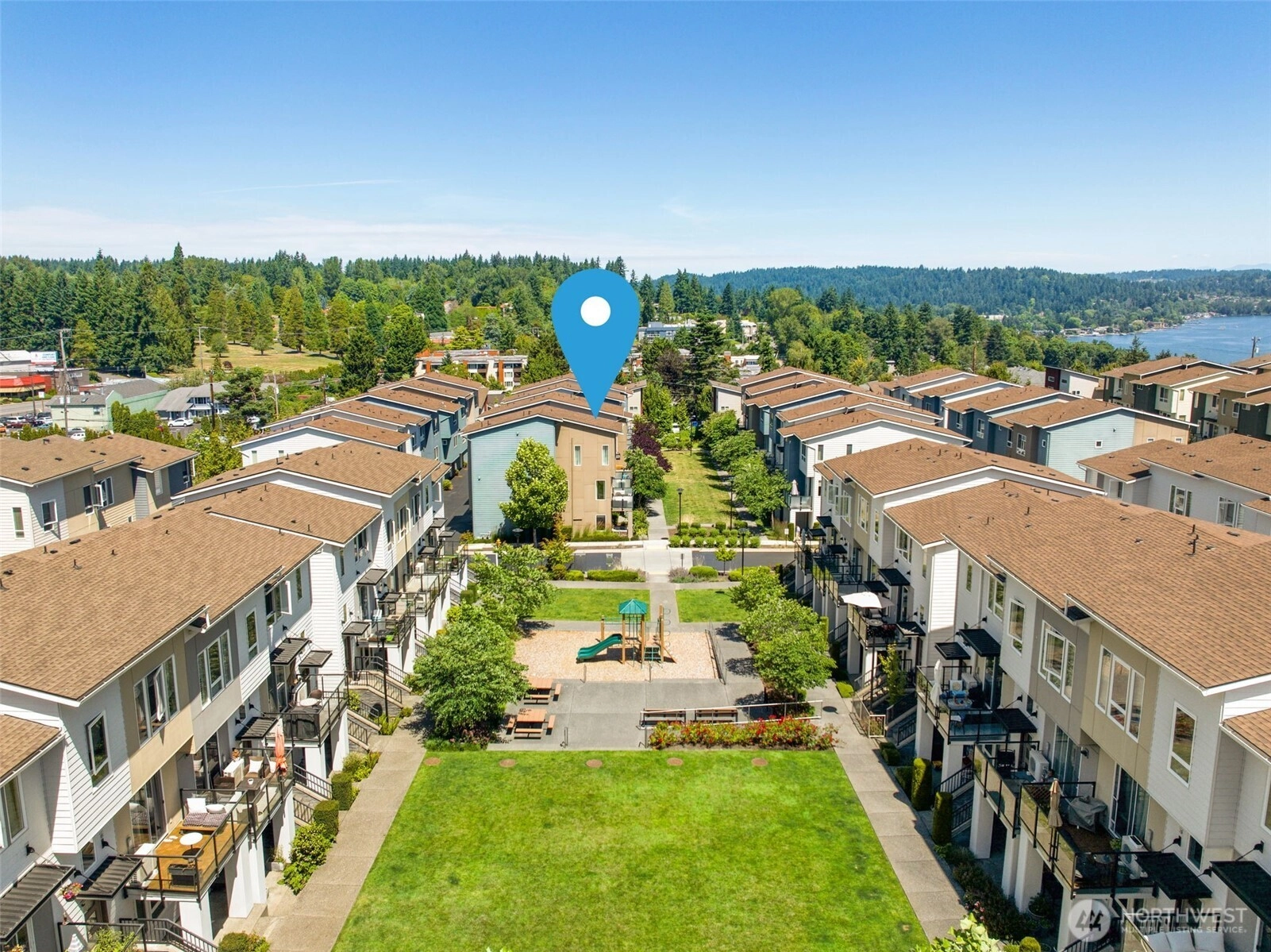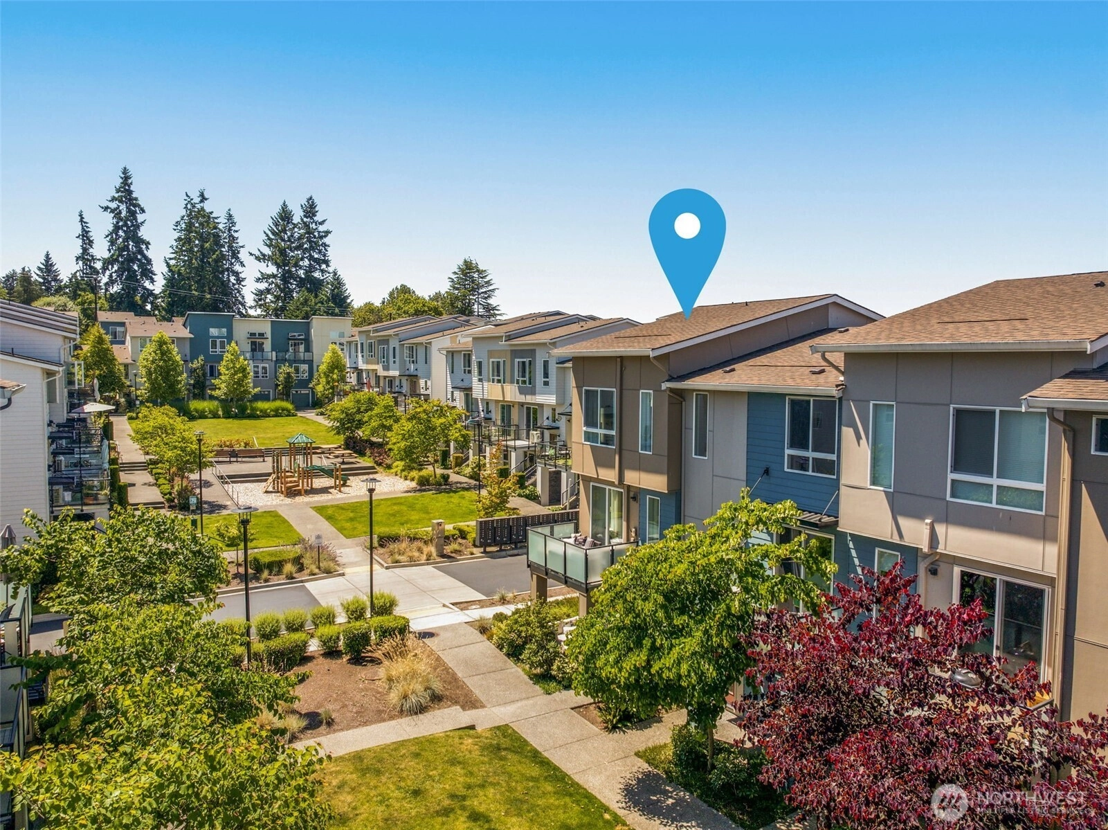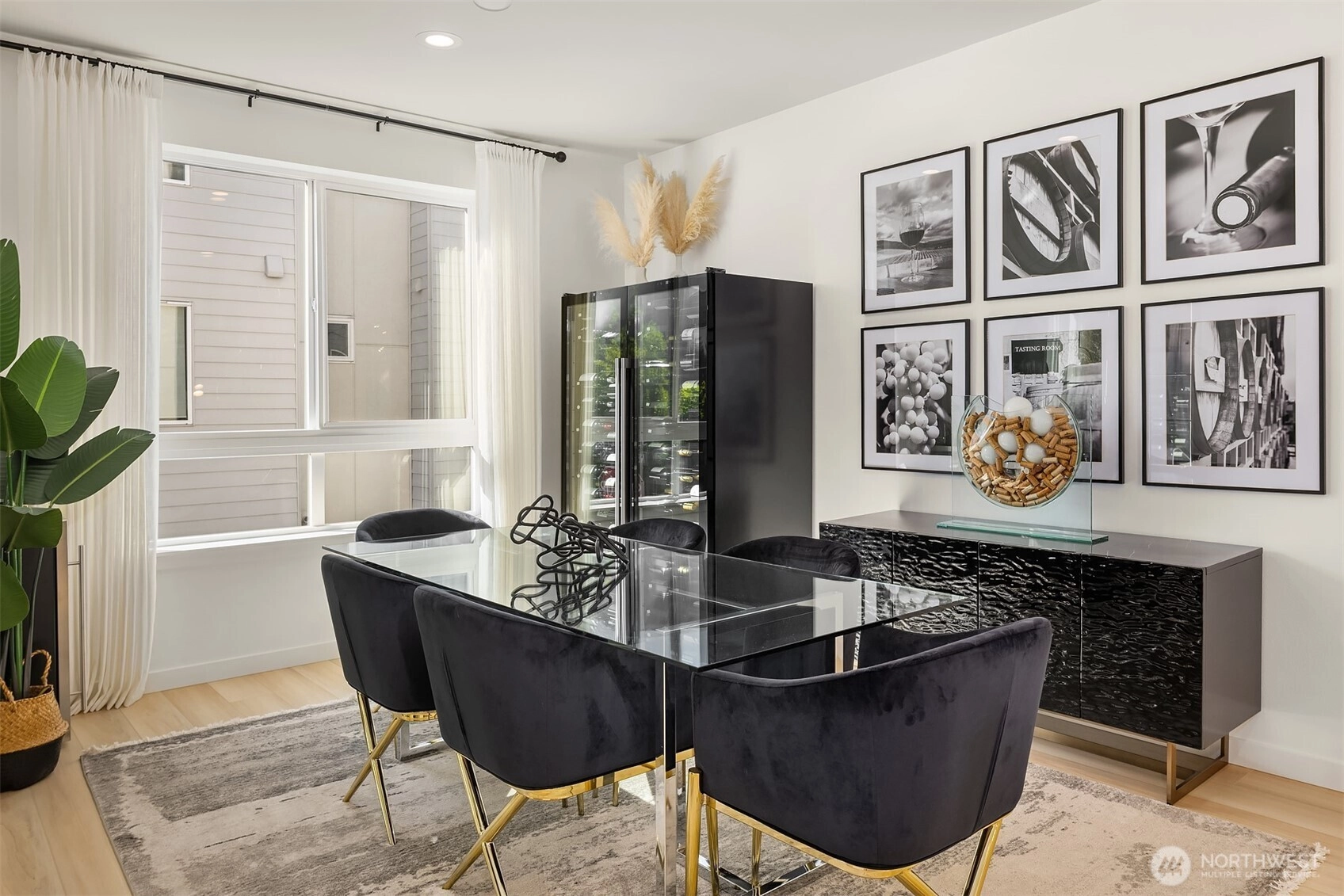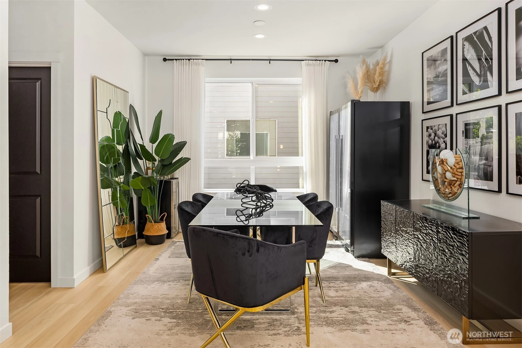 Stunningly renovated, sun-filled end-unit residence w/views of community park in desirable 12 Degrees North. High-end upgrades & designer finishes throughout. Over $50K in recent upgrades include central heating & cooling on upper level, along w/mini-splits on the main & lower levels, white oak laminate flooring, stylish hardware & modern lighting fixtures, refinished cabinetry, remodeled powder room, custom closet built-ins, glass/iron barn door & fresh paint. Open concept layout & thoughtful design w/each bedroom equipped w/own en-suite bath & a power room on the main. Enjoy private balcony & patio, 2-car garage & ample guest parking. Walkable to Burke-Gilman Trail, minutes to shopping & dining, & major commuting routes. No rental cap!