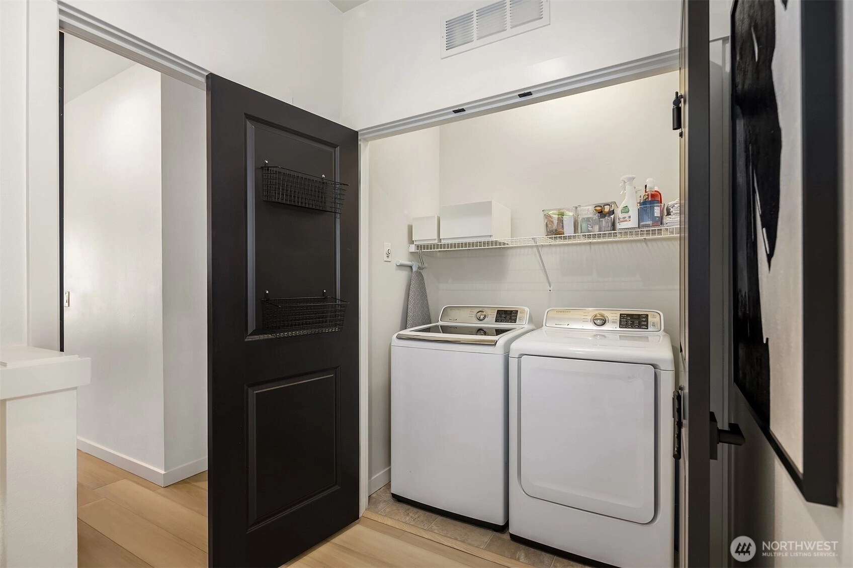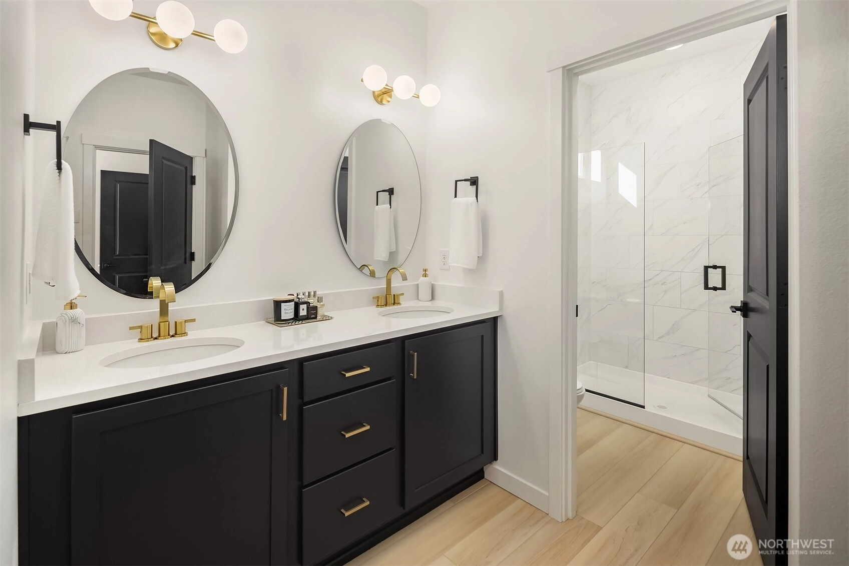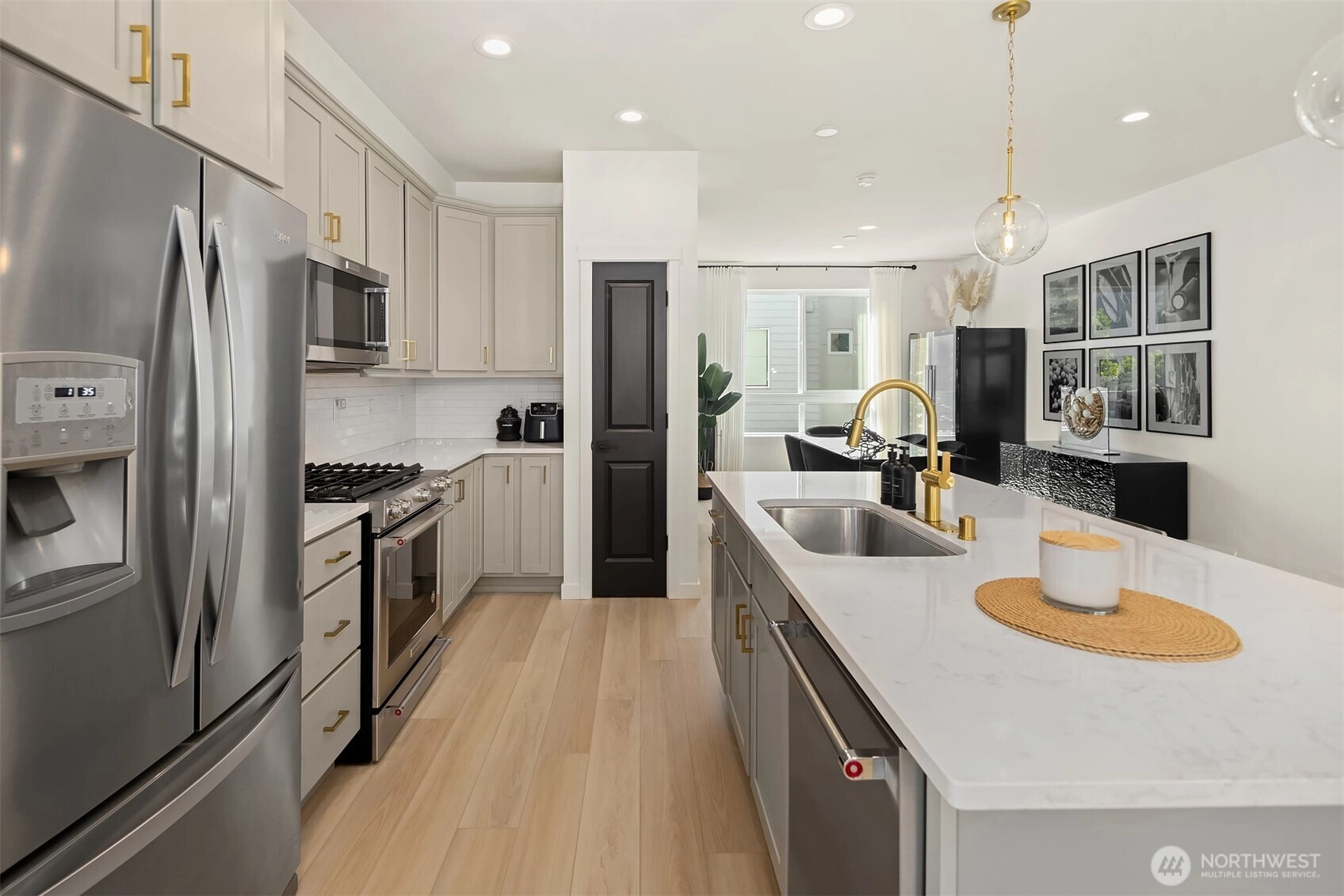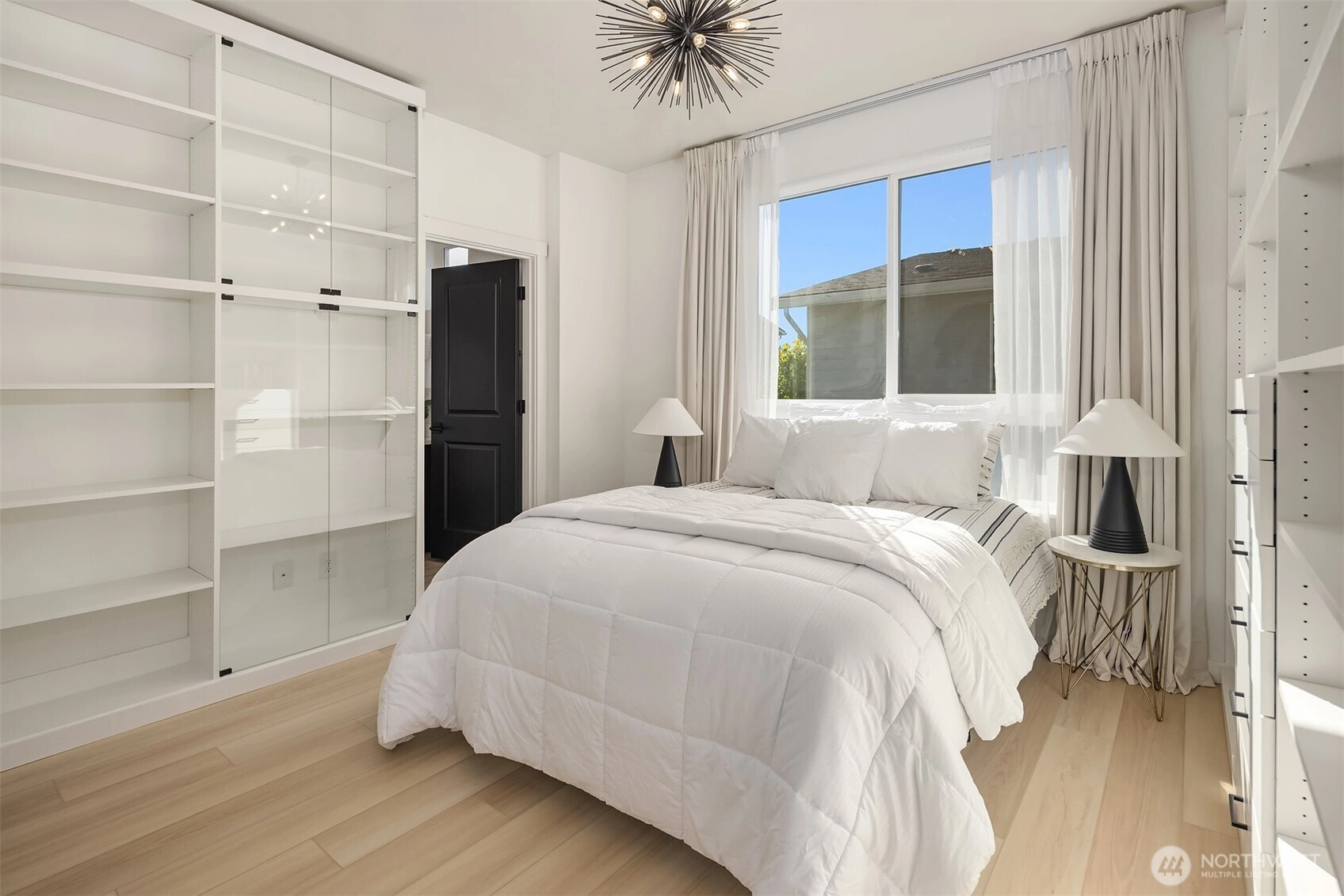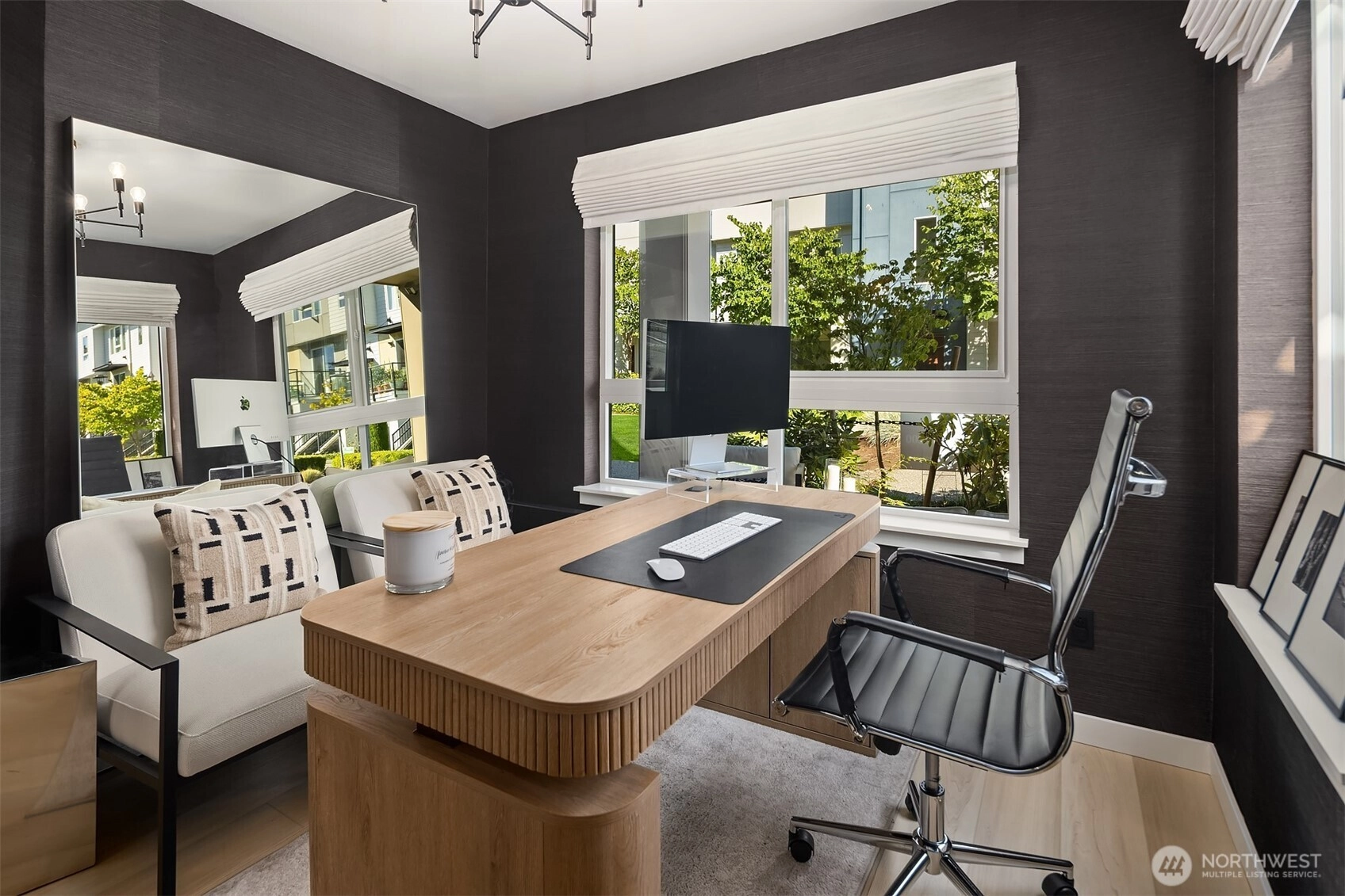 Stunningly renovated, sun-filled end-unit residence w/views of community park in desirable 12 Degrees North. High-end upgrades & designer finishes throughout. Over $50K in recent upgrades include central heating & cooling on upper level, along w/mini-splits on the main & lower levels, white oak laminate flooring, stylish hardware & modern lighting fixtures, refinished cabinetry, remodeled powder room, custom closet built-ins, glass/iron barn door & fresh paint. Open concept layout & thoughtful design w/each bedroom equipped w/own en-suite bath & a power room on the main. Enjoy private balcony & patio, 2-car garage & ample guest parking. Walkable to Burke-Gilman Trail, minutes to shopping & dining, & major commuting routes. No rental cap!