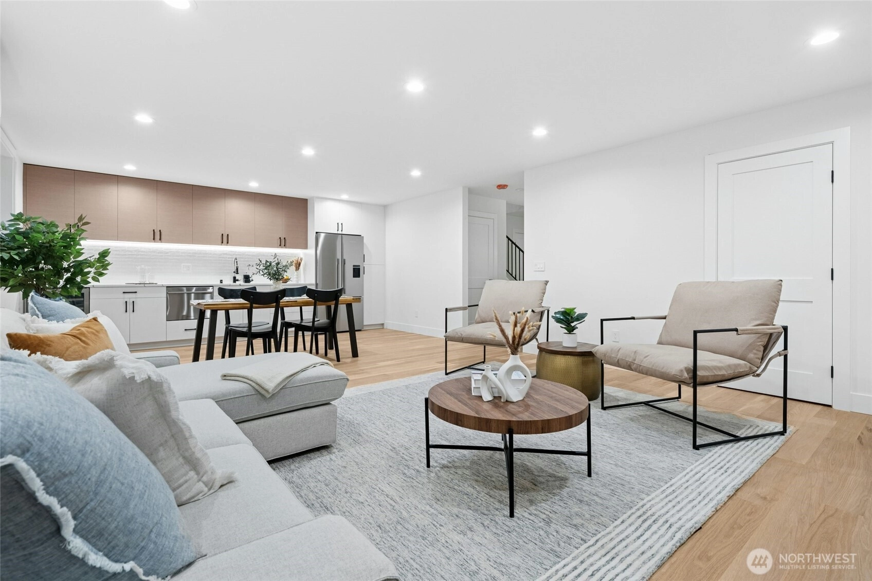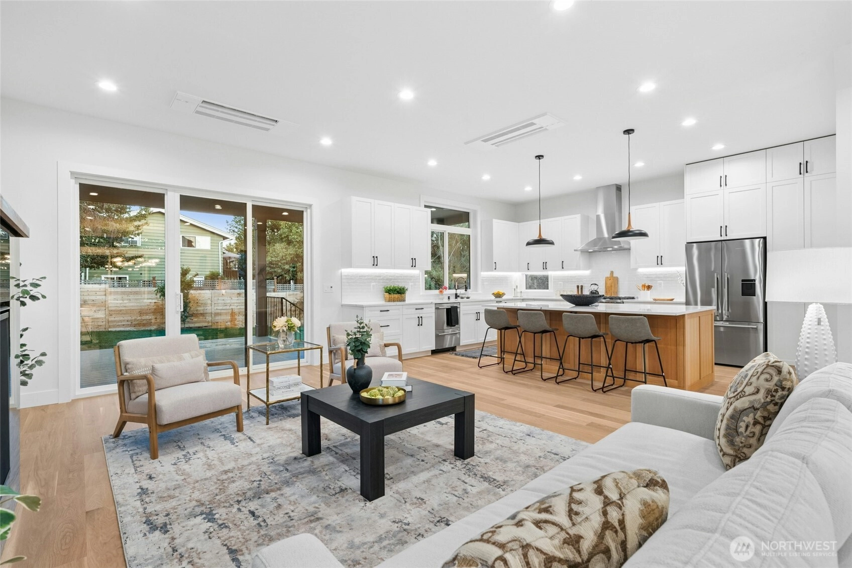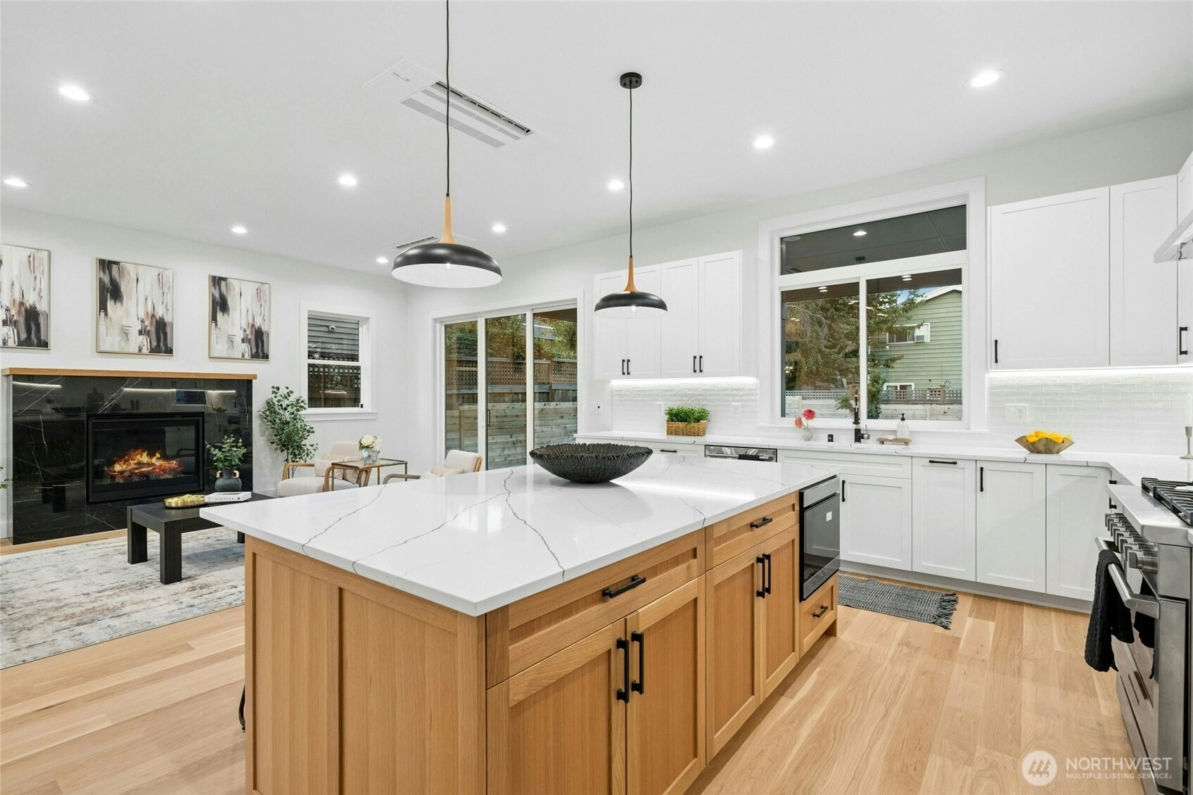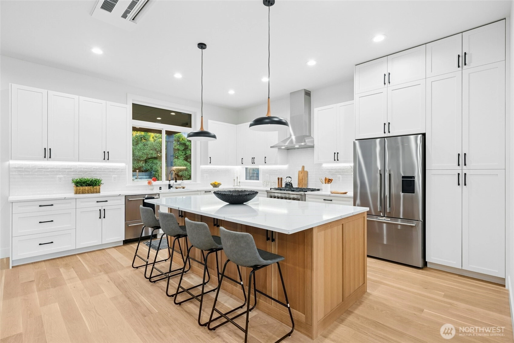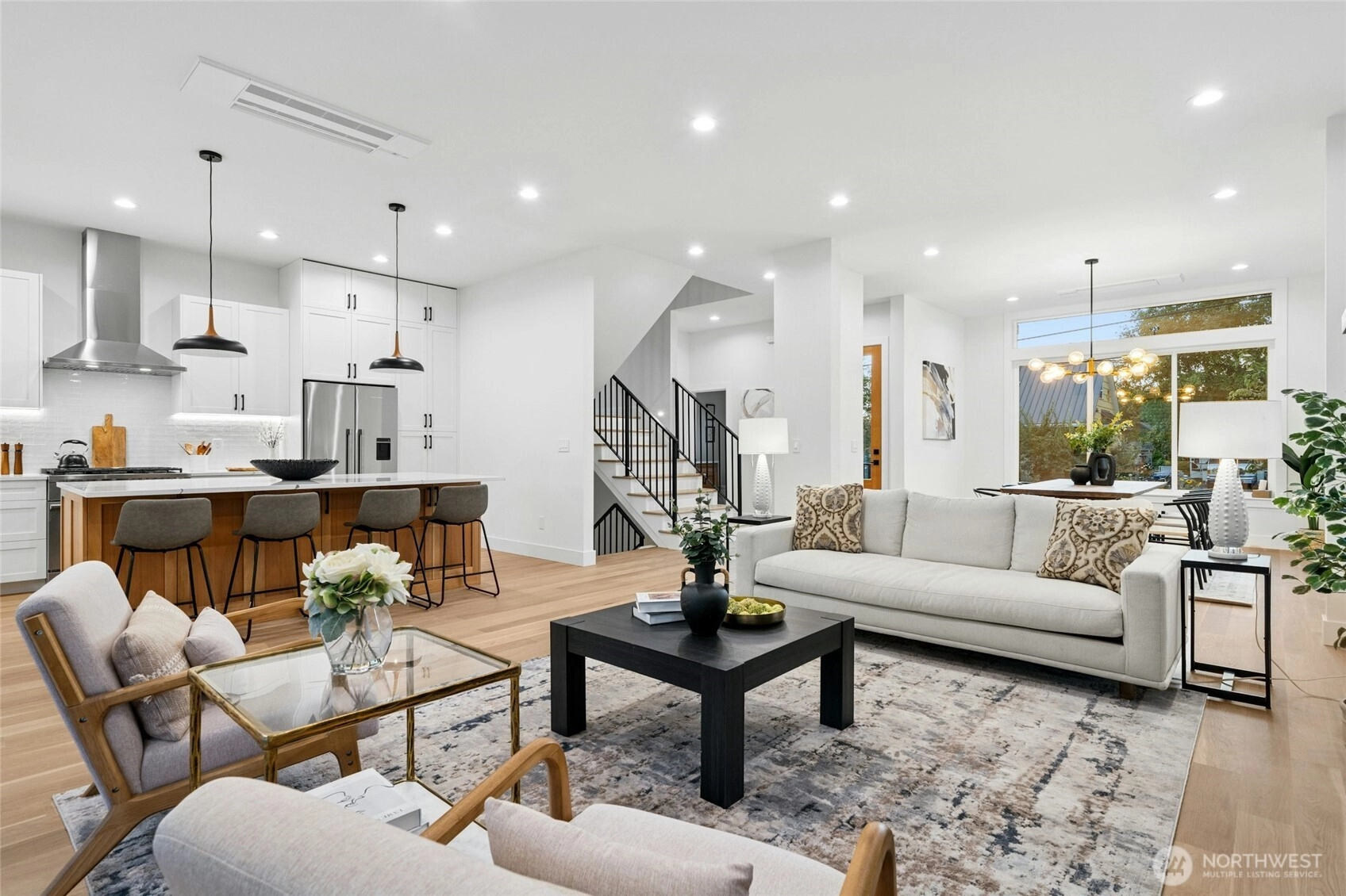 Luxury new construction in the heart of Ballard! This 3,708 sq ft home on a 5,100 sq ft lot offers 5 bedrooms, an open floor plan with 10 ft & cathedral ceilings, a central designer fireplace, and white oak hardwoods throughout. The chef’s kitchen features Fisher & Paykel appliances and a massive quartz island . Retreat to the primary suite with spa bath, walk-in closet, and private balcony. Flexible bonus loft that can be converted to a theater room or whatever your heart desires, 5 baths, dedicated office, and a full mother-in-law suite with kitchenette. Enjoy year-round entertaining on the covered deck. Minutes to Greenlake, Ballard Farmers Market, beaches, breweries, shops, Golden Gardens & downtown Seattle.