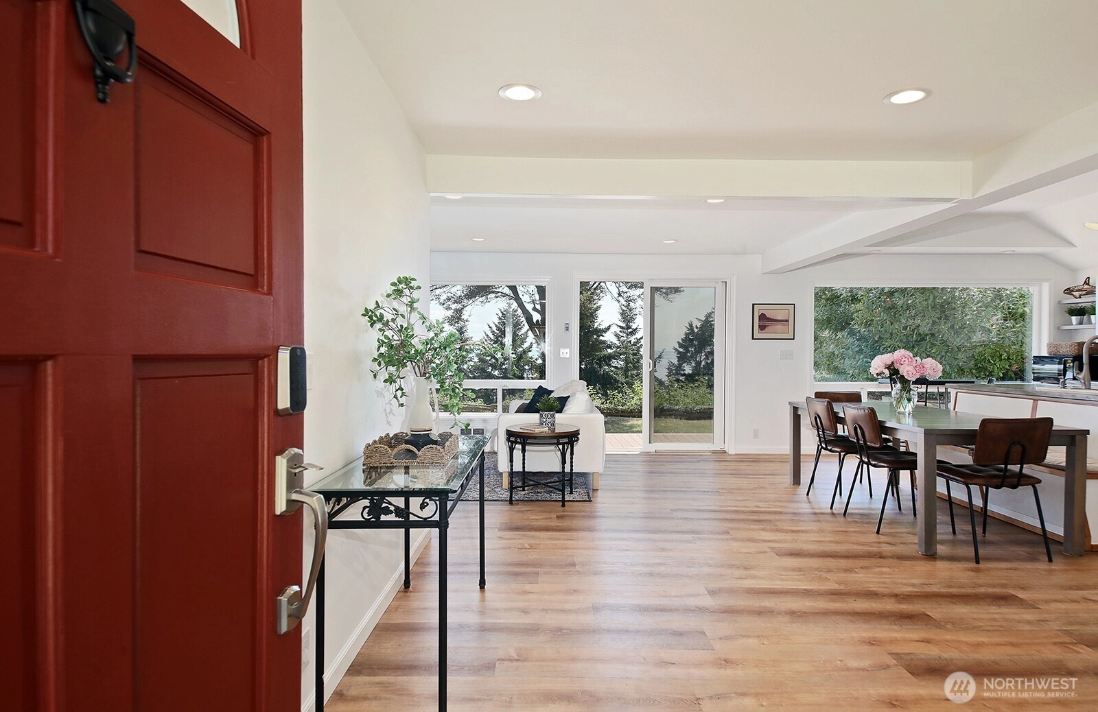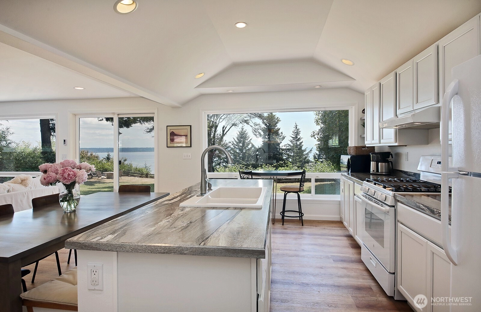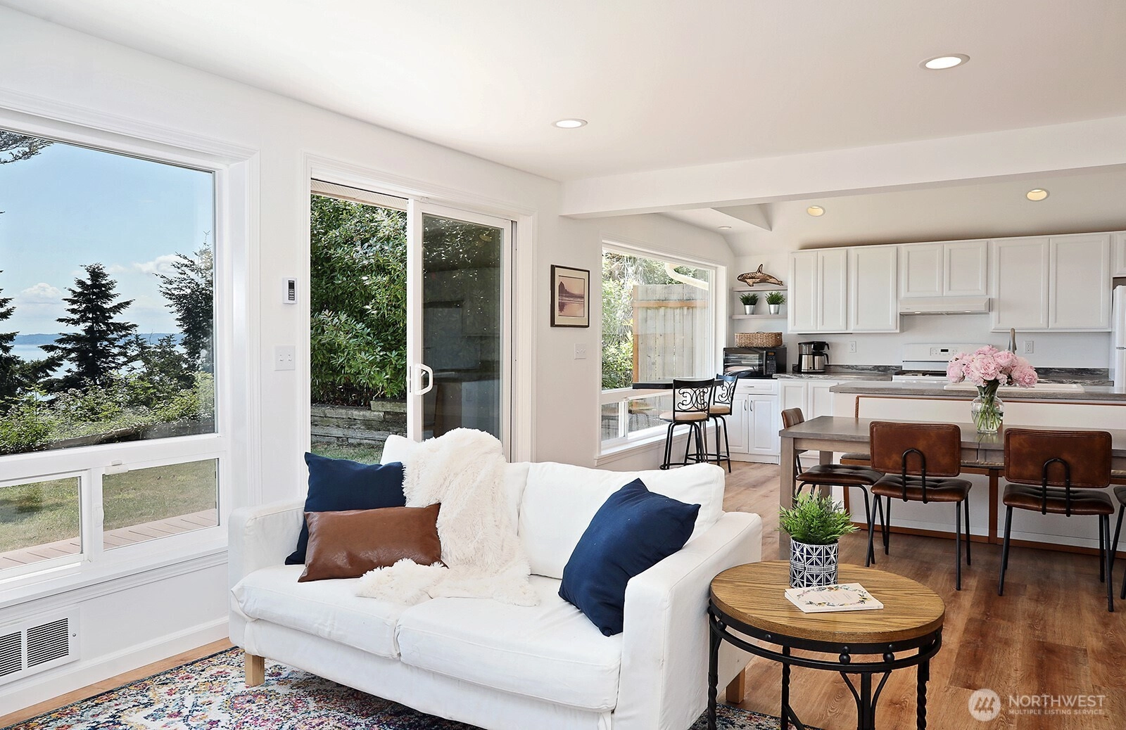 Expansive southern & western views of the Salish Sea, Rainier & the Olympics greet you from almost every room of this Island home. Freshly updated w/ new flooring & interior paint throughout, enjoy an open-concept kitchen/living area w/ a wood fireplace & sliding doors to an expansive patio & deck. A low-maintenance, partially fenced lot w/ front & back yards has plenty of space to lounge, play or plant a garden! Your Primary Suite has a flexible floor plan that includes a sunroom & remodeled bath. There is even a workshop & space for a home office! Community amenities incl. beach, boat launch, heated pool, clubhouse, tennis/basketball court & picnic pavilion. Summertime fun awaits you! Welcome to Whidbey, Welcome Home!
