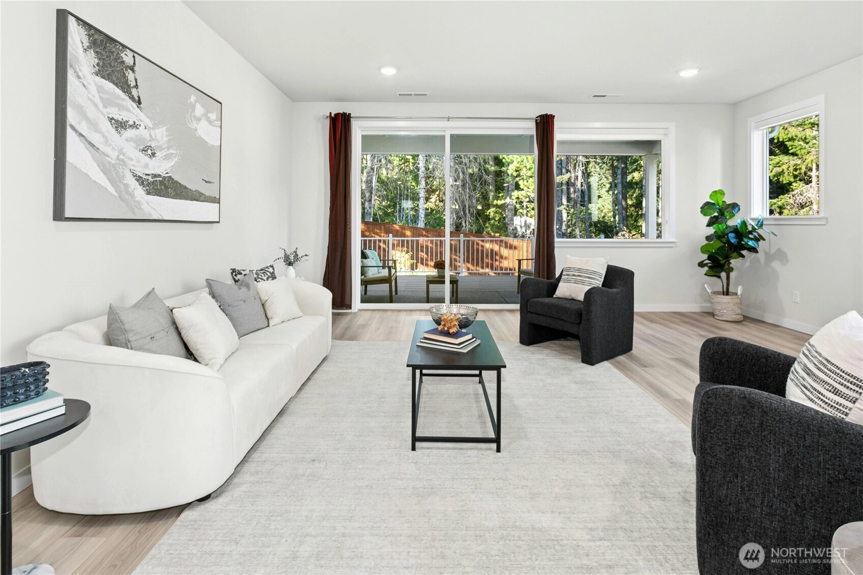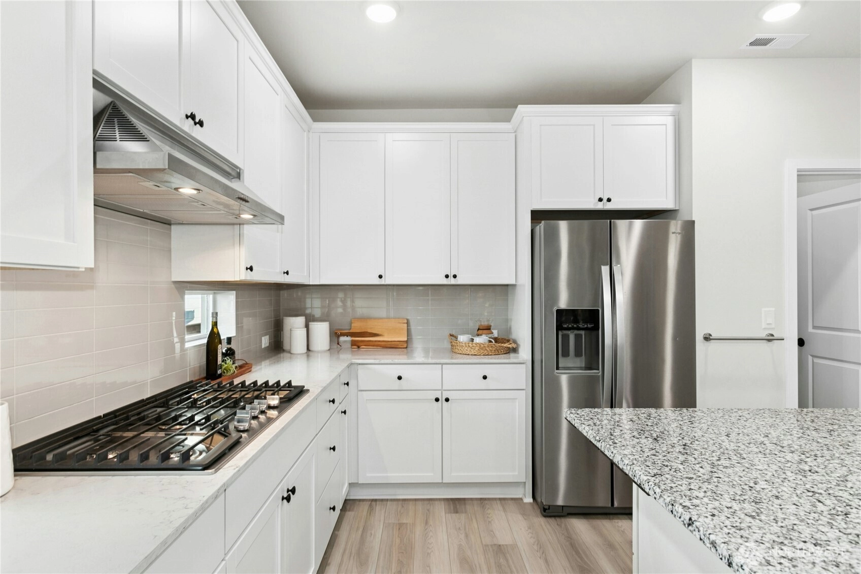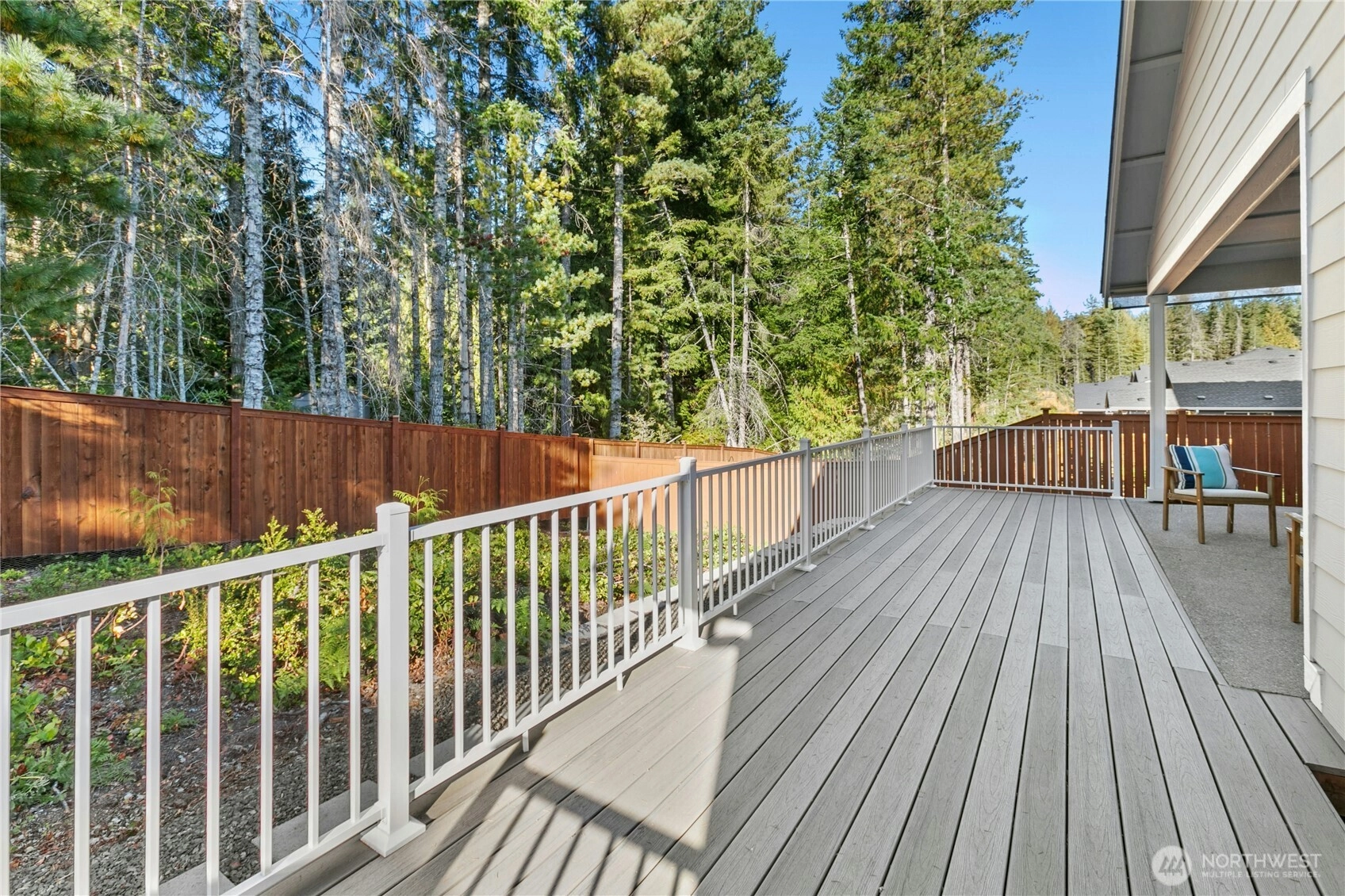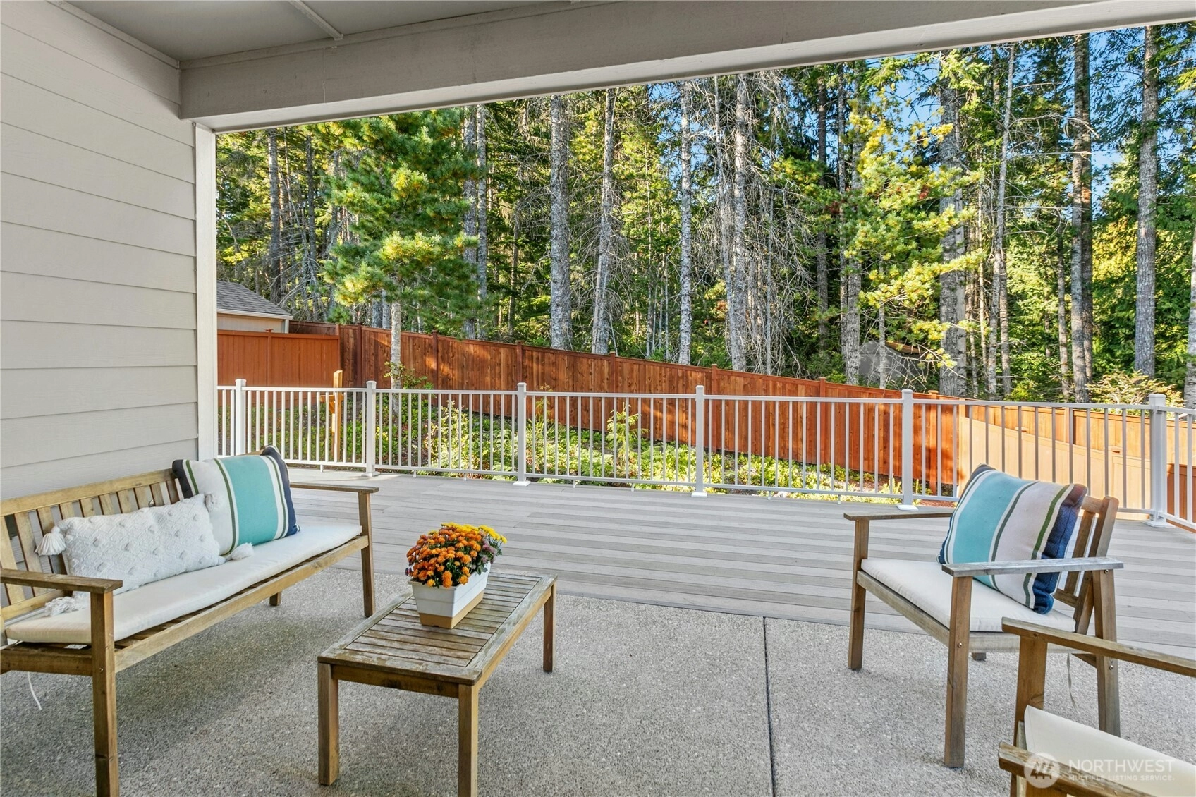 Enjoy impeccable single level living in this “better than new” 2023 home! Sited on a fenced greenbelt lot, this 2237SF 3BR/2BA “Smart” home boasts lofty 9’ ceilings & an open great room concept. Gourmet kitchen offers white maple soft close/dovetail cabinets, subway tile, gas cooktop w/hood, built-in wall oven/micro combo & walk-in pantry. Huge primary suite has tiled shower w/bench & frameless glass shower door, dual sink vanity & walk-in closet. Builder upgrades: wrapped windows, matte black fixtures, quartz countertops, plumbed for gas BBQ + 19' covered patio. Owner upgrades: slab granite island w/ extra storage, custom solar blinds, extended back patio + landscaping. Near schools with easy commutes to Bangor, Keyport, PSNS, & ferries!