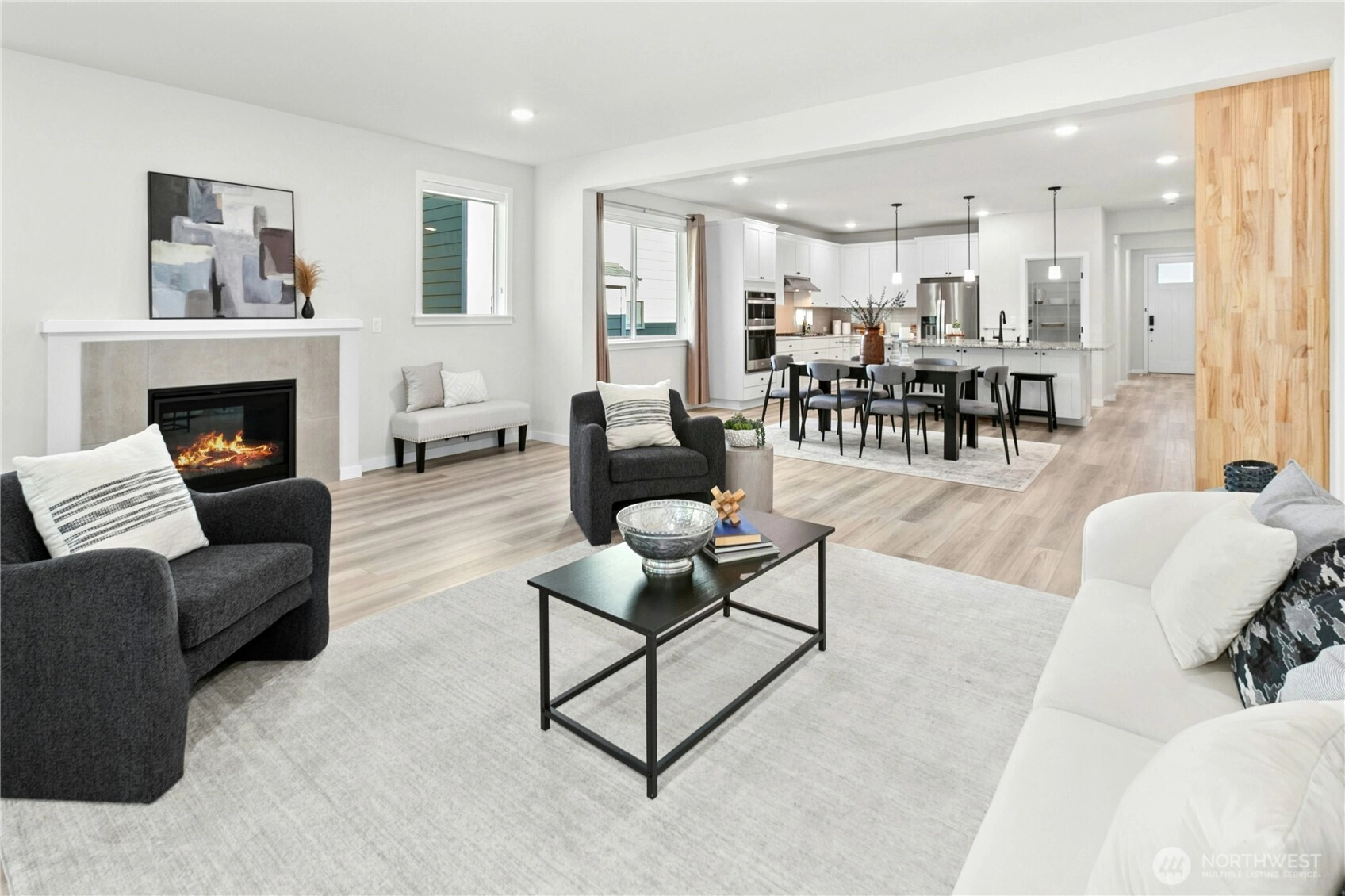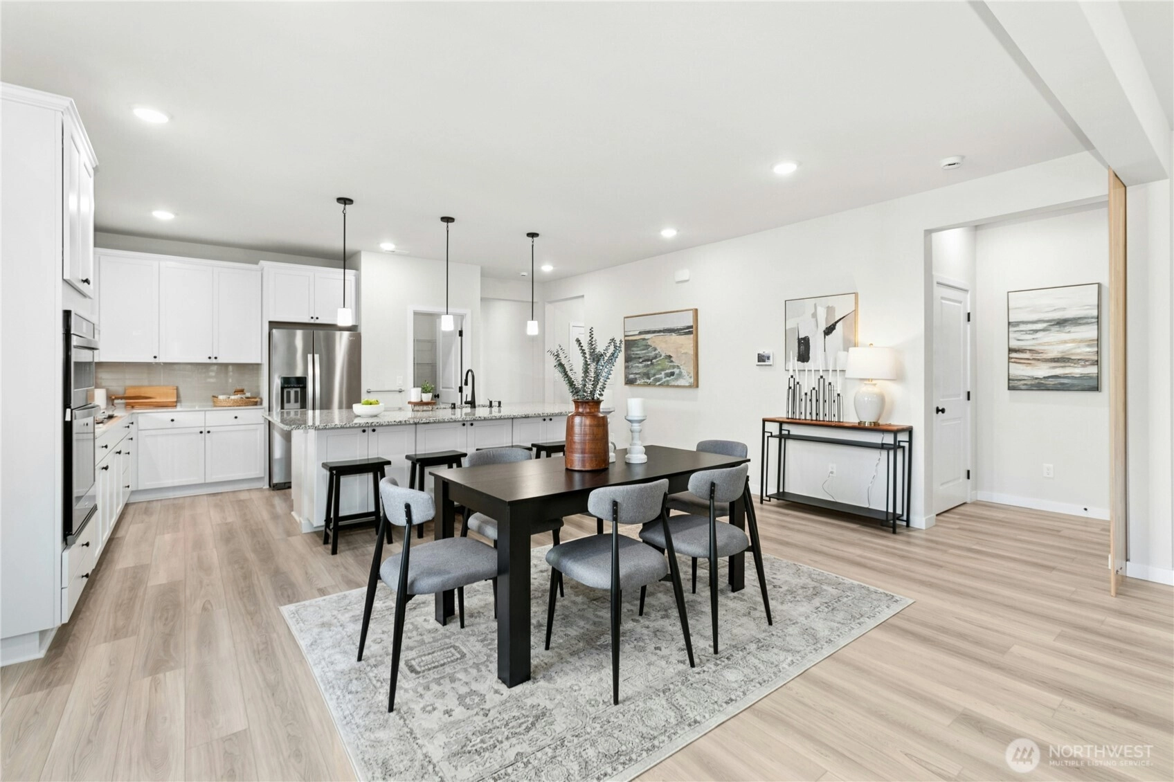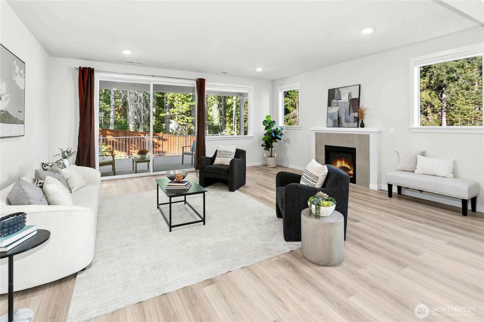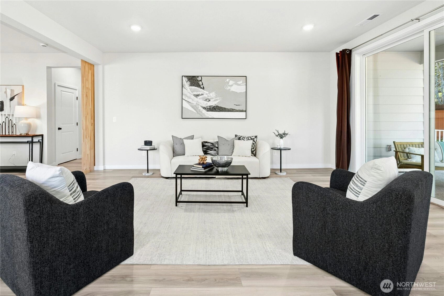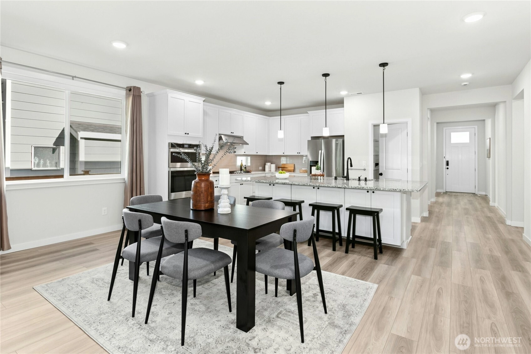 Enjoy impeccable single level living in this “better than new” 2023 home! Sited on a fenced greenbelt lot, this 2237SF 3BR/2BA “Smart” home boasts lofty 9’ ceilings & an open great room concept. Gourmet kitchen offers white maple soft close/dovetail cabinets, subway tile, gas cooktop w/hood, built-in wall oven/micro combo & walk-in pantry. Huge primary suite has tiled shower w/bench & frameless glass shower door, dual sink vanity & walk-in closet. Builder upgrades: wrapped windows, matte black fixtures, quartz countertops, plumbed for gas BBQ + 19' covered patio. Owner upgrades: slab granite island w/ extra storage, custom solar blinds, extended back patio + landscaping. Near schools with easy commutes to Bangor, Keyport, PSNS, & ferries!