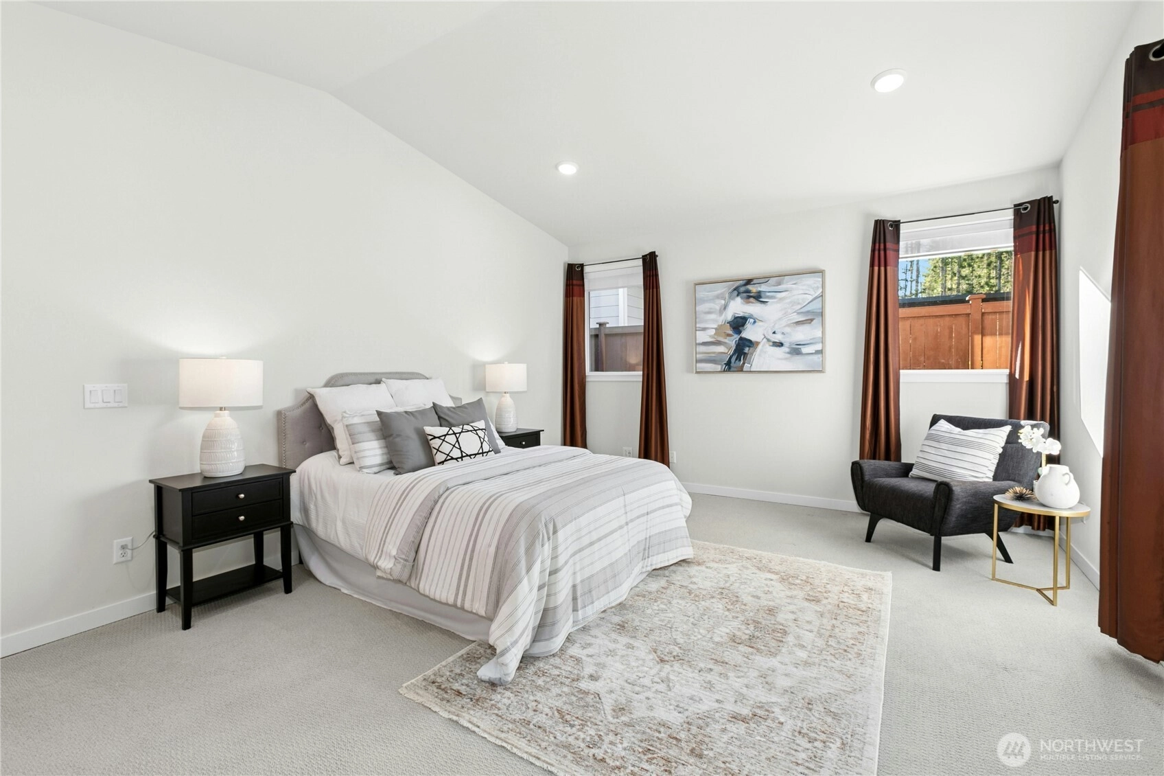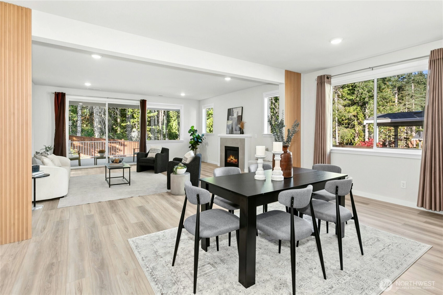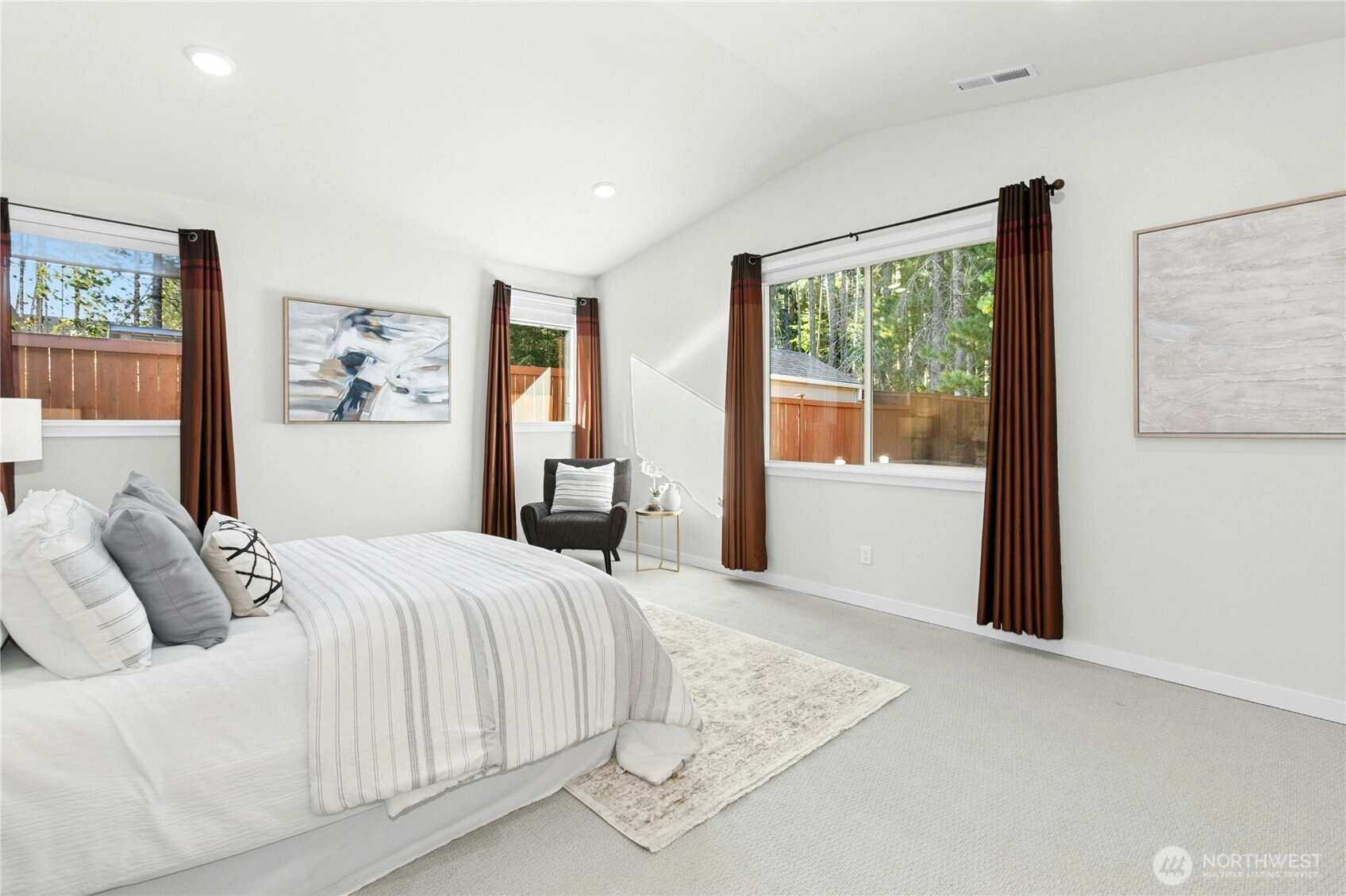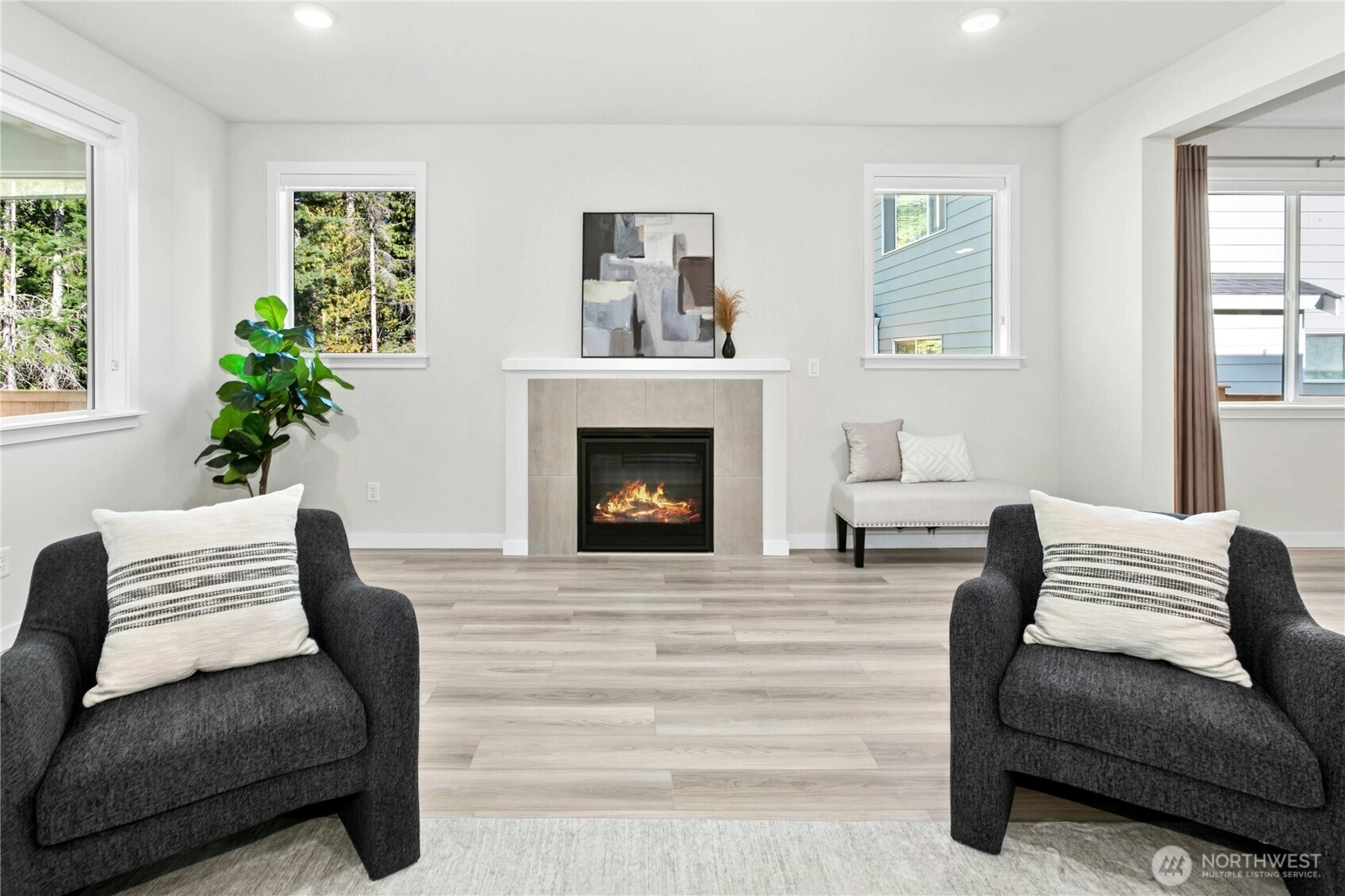 Enjoy impeccable single level living in this “better than new” 2023 home! Sited on a fenced greenbelt lot, this 2237SF 3BR/2BA “Smart” home boasts lofty 9’ ceilings & an open great room concept. Gourmet kitchen offers white maple soft close/dovetail cabinets, subway tile, gas cooktop w/hood, built-in wall oven/micro combo & walk-in pantry. Huge primary suite has tiled shower w/bench & frameless glass shower door, dual sink vanity & walk-in closet. Builder upgrades: wrapped windows, matte black fixtures, quartz countertops, plumbed for gas BBQ + 19' covered patio. Owner upgrades: slab granite island w/ extra storage, custom solar blinds, extended back patio + landscaping. Near schools with easy commutes to Bangor, Keyport, PSNS, & ferries!