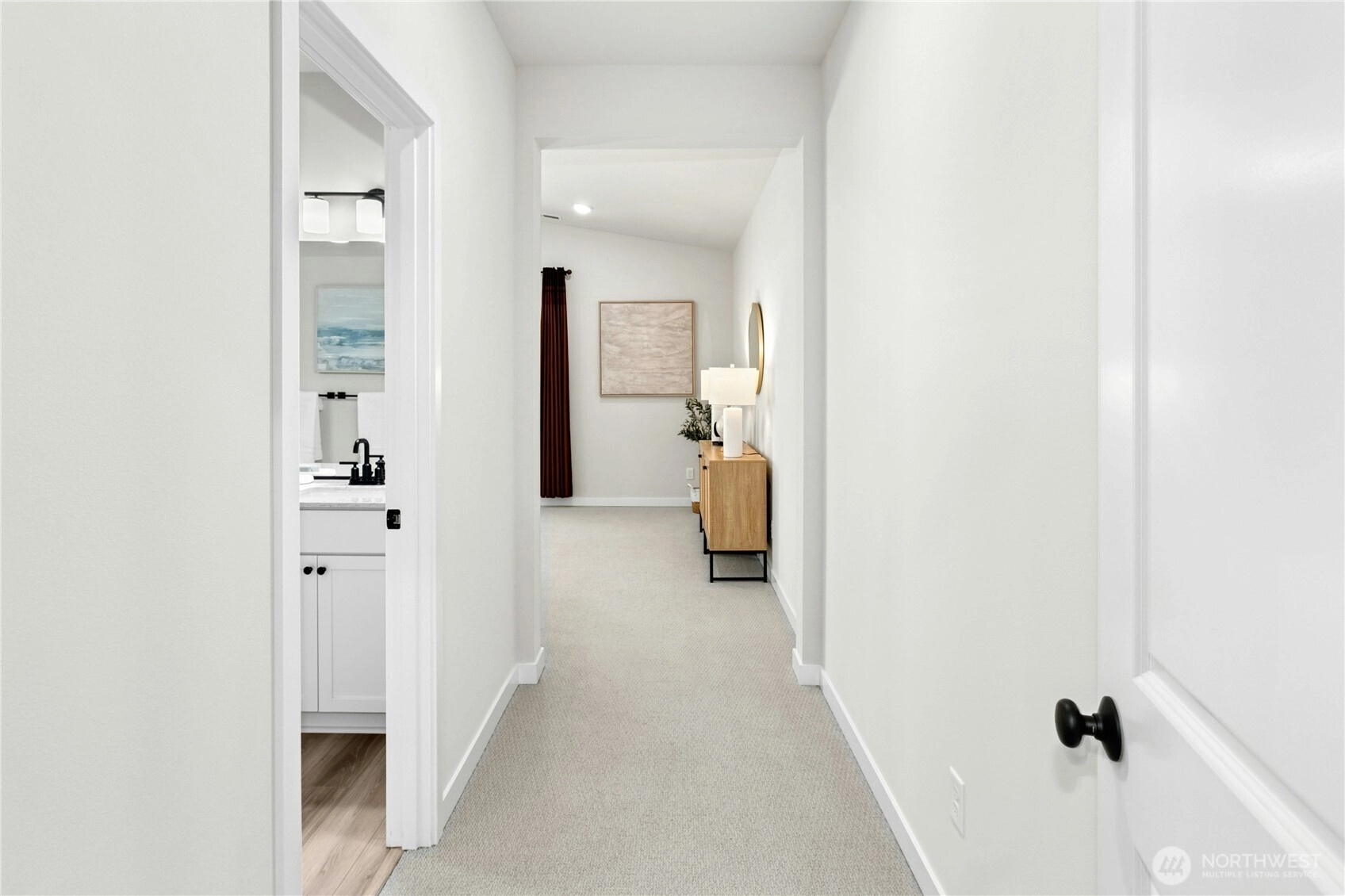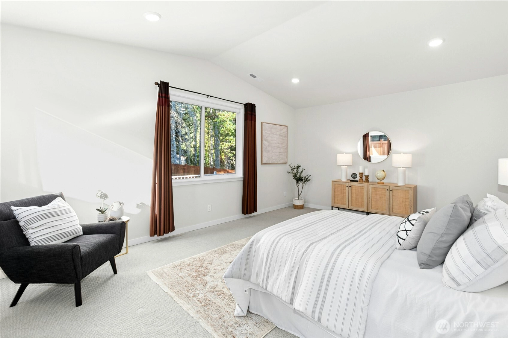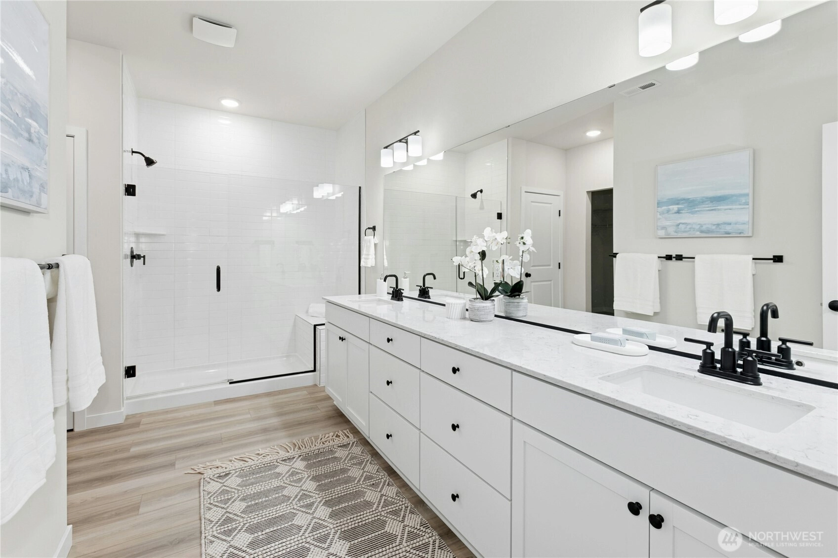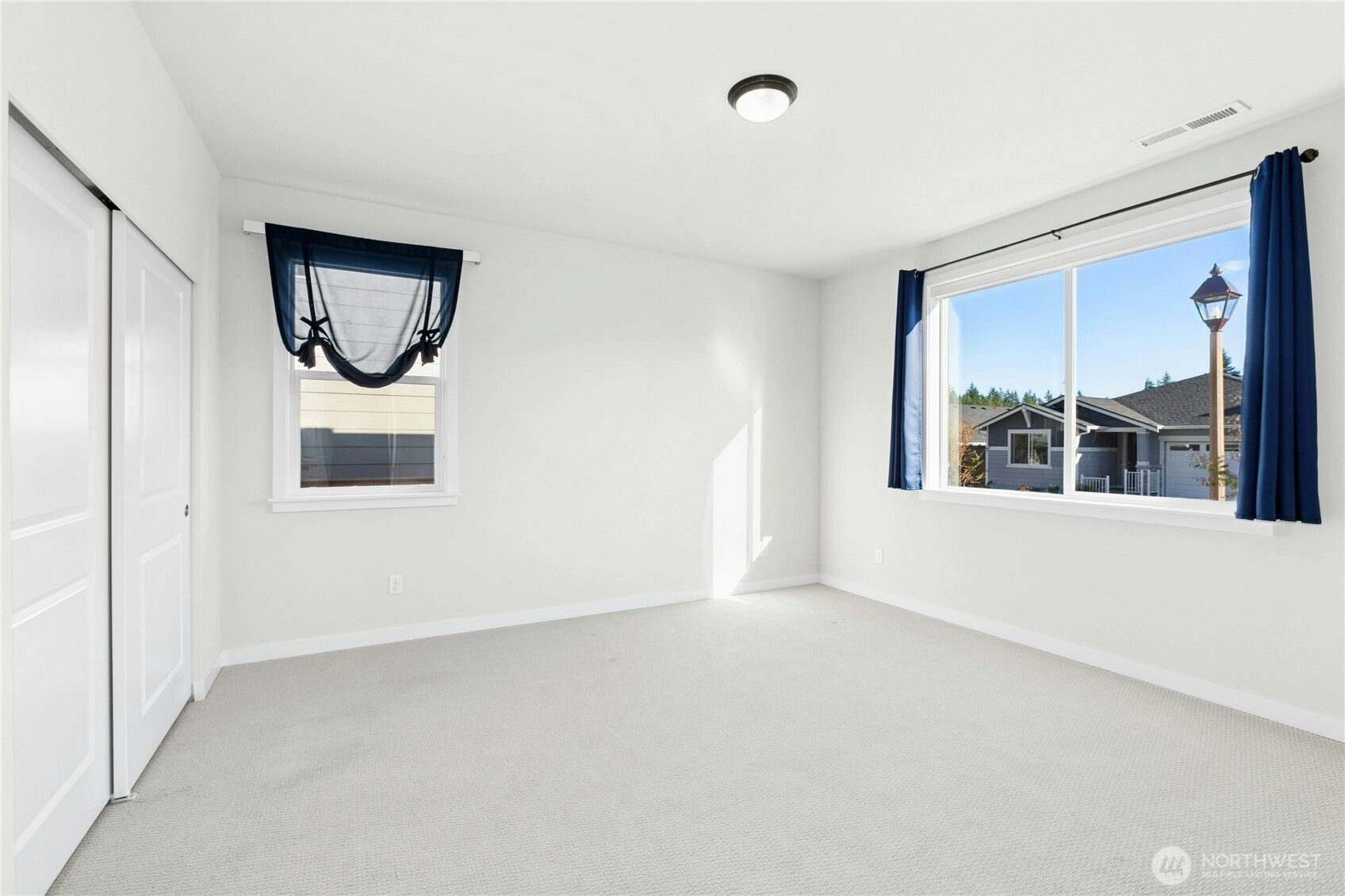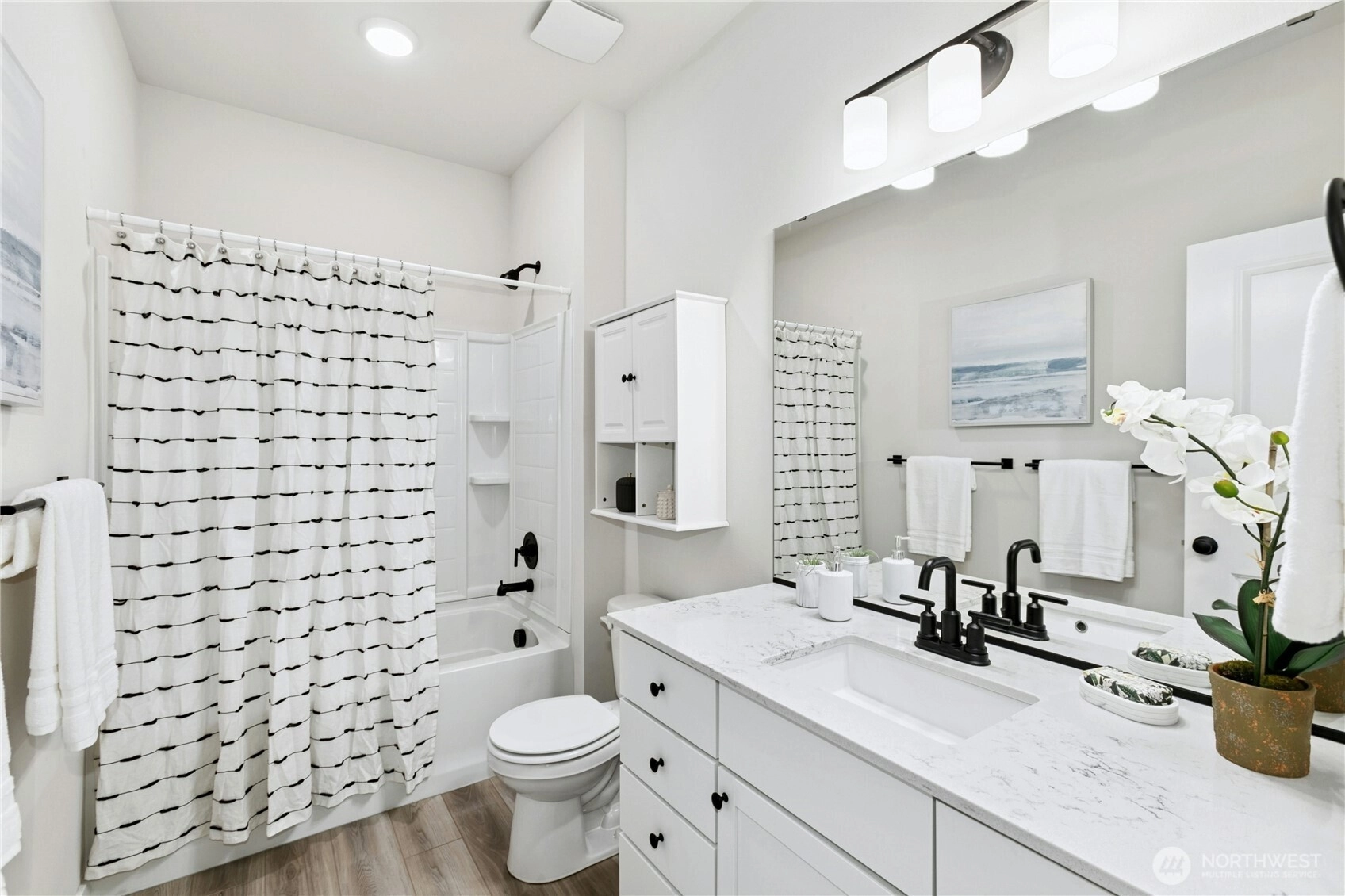 Enjoy impeccable single level living in this “better than new” 2023 home! Sited on a fenced greenbelt lot, this 2237SF 3BR/2BA “Smart” home boasts lofty 9’ ceilings & an open great room concept. Gourmet kitchen offers white maple soft close/dovetail cabinets, subway tile, gas cooktop w/hood, built-in wall oven/micro combo & walk-in pantry. Huge primary suite has tiled shower w/bench & frameless glass shower door, dual sink vanity & walk-in closet. Builder upgrades: wrapped windows, matte black fixtures, quartz countertops, plumbed for gas BBQ + 19' covered patio. Owner upgrades: slab granite island w/ extra storage, custom solar blinds, extended back patio + landscaping. Near schools with easy commutes to Bangor, Keyport, PSNS, & ferries!