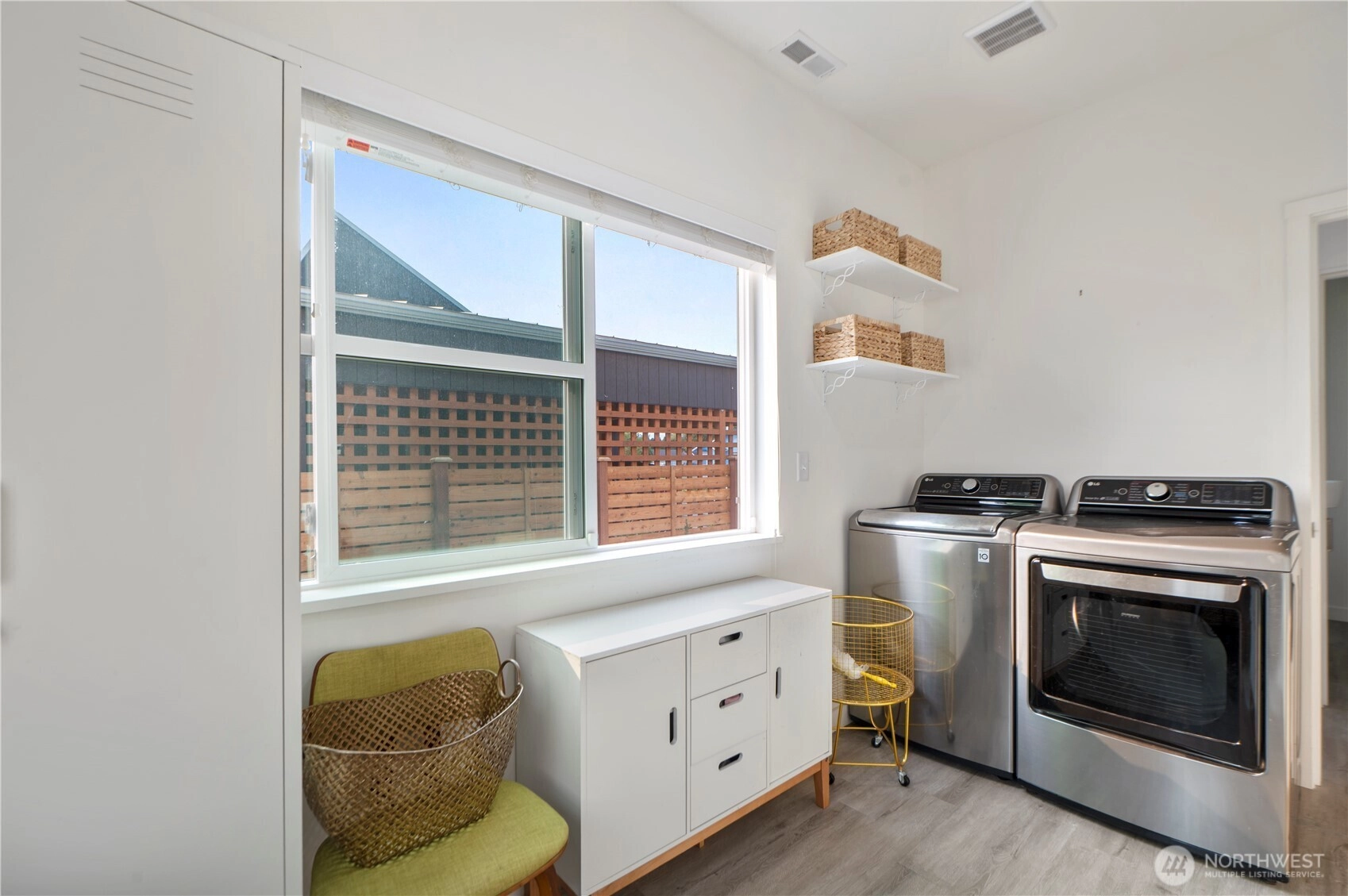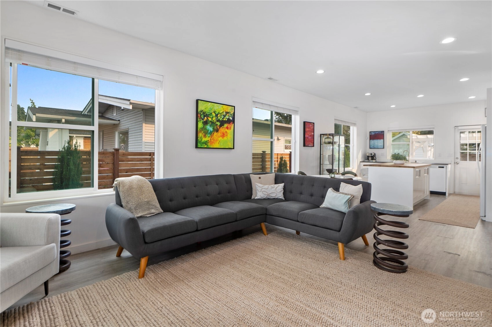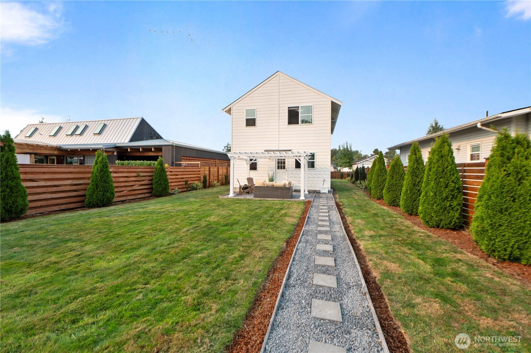 5 year old light & bright modern farmhouse in the heart of downtown Blaine is better than new & ready for you! The original design for this 3 bedroom/2.5 bathroom charmer includes high ceilings & the open concept kitchen/living/dining design sought after by today's buyer. Recent upgrades include central air conditioning, delightful fully landscaped + fenced yard with metal pergola that creates the perfect area to relax or entertain. Huge laundry room/flex space...so many options for this space! Fantastic in-town walkable location to the schools, shopping, dining, saltwater marina & parks + easy access to the US/Canada borders & I-5. *BONUS* - single car garage with ADU potential...buyer to verify all details with the City of Blaine.