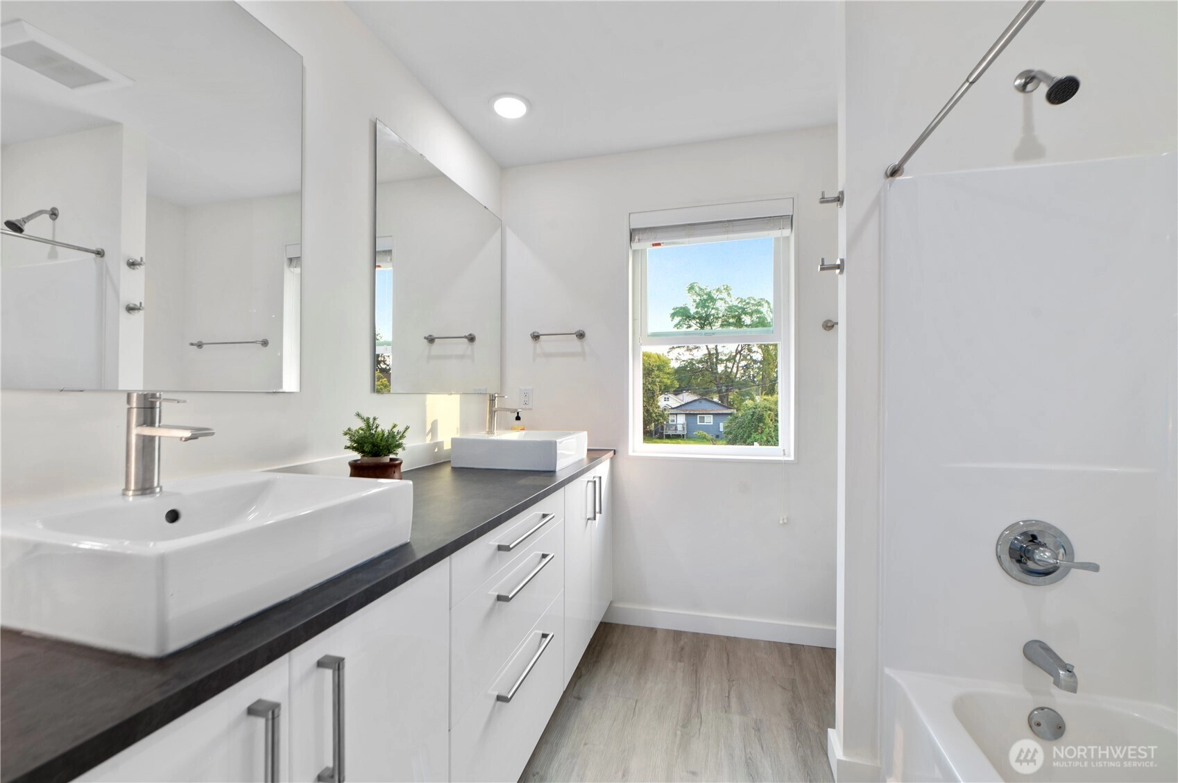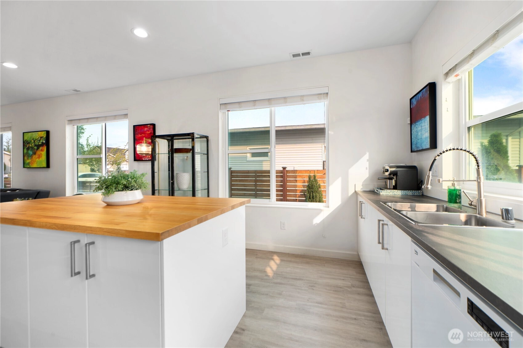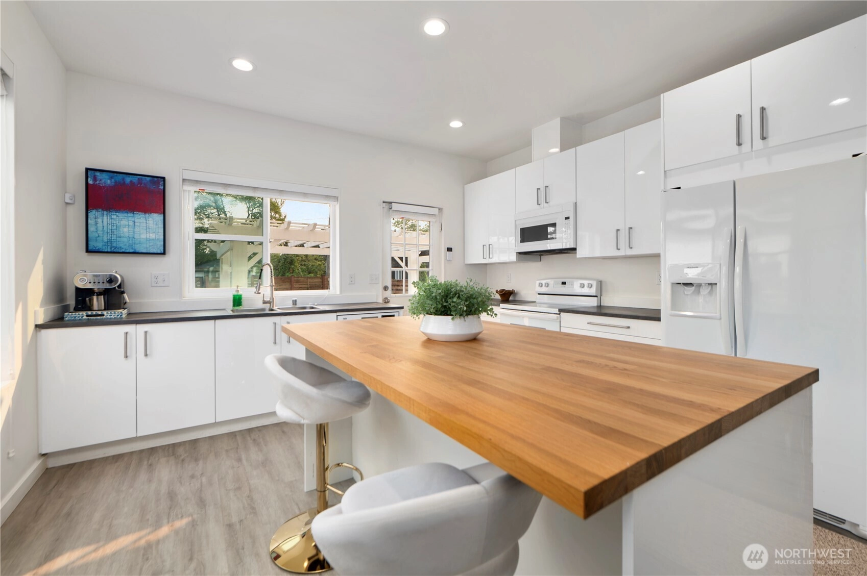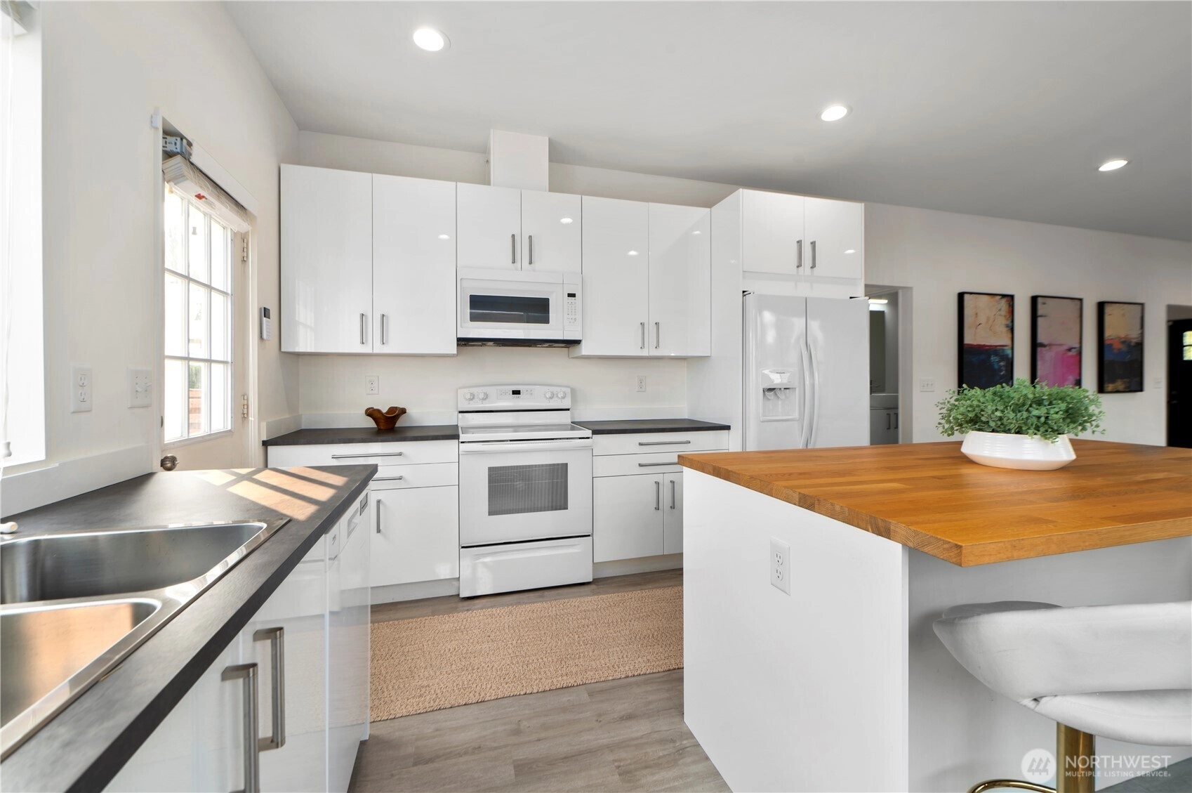 5 year old light & bright modern farmhouse in the heart of downtown Blaine is better than new & ready for you! The original design for this 3 bedroom/2.5 bathroom charmer includes high ceilings & the open concept kitchen/living/dining design sought after by today's buyer. Recent upgrades include central air conditioning, delightful fully landscaped + fenced yard with metal pergola that creates the perfect area to relax or entertain. Huge laundry room/flex space...so many options for this space! Fantastic in-town walkable location to the schools, shopping, dining, saltwater marina & parks + easy access to the US/Canada borders & I-5. *BONUS* - single car garage with ADU potential...buyer to verify all details with the City of Blaine.