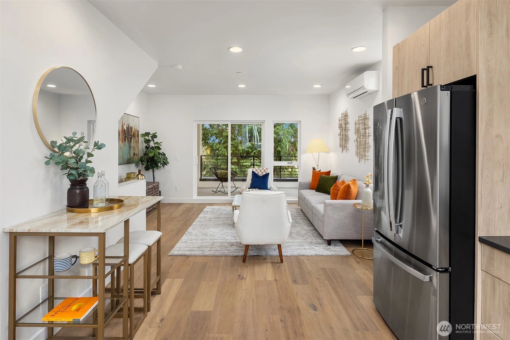 From Ashworth Homes, a modern new cottage in Northeast Seattle. Ultimate hosting or work from home set up with main level family room with French doors to fenced & landscaped yard, plus bedroom and full bath. Upper floor features open concept living space and kitchen offering premium appliances and thoughtful storage, plus balcony for al fresco dining. Upstairs, find your private oasis in the primary suite with vaulted ceilings. Extend your relaxation to the outdoors with expansive heated and covered deck for all-season outdoor enjoyment. EV-ready off-street parking included. Near to the Burke-Gilman Trail and quick access to 522 and I-5 for a simple commute.